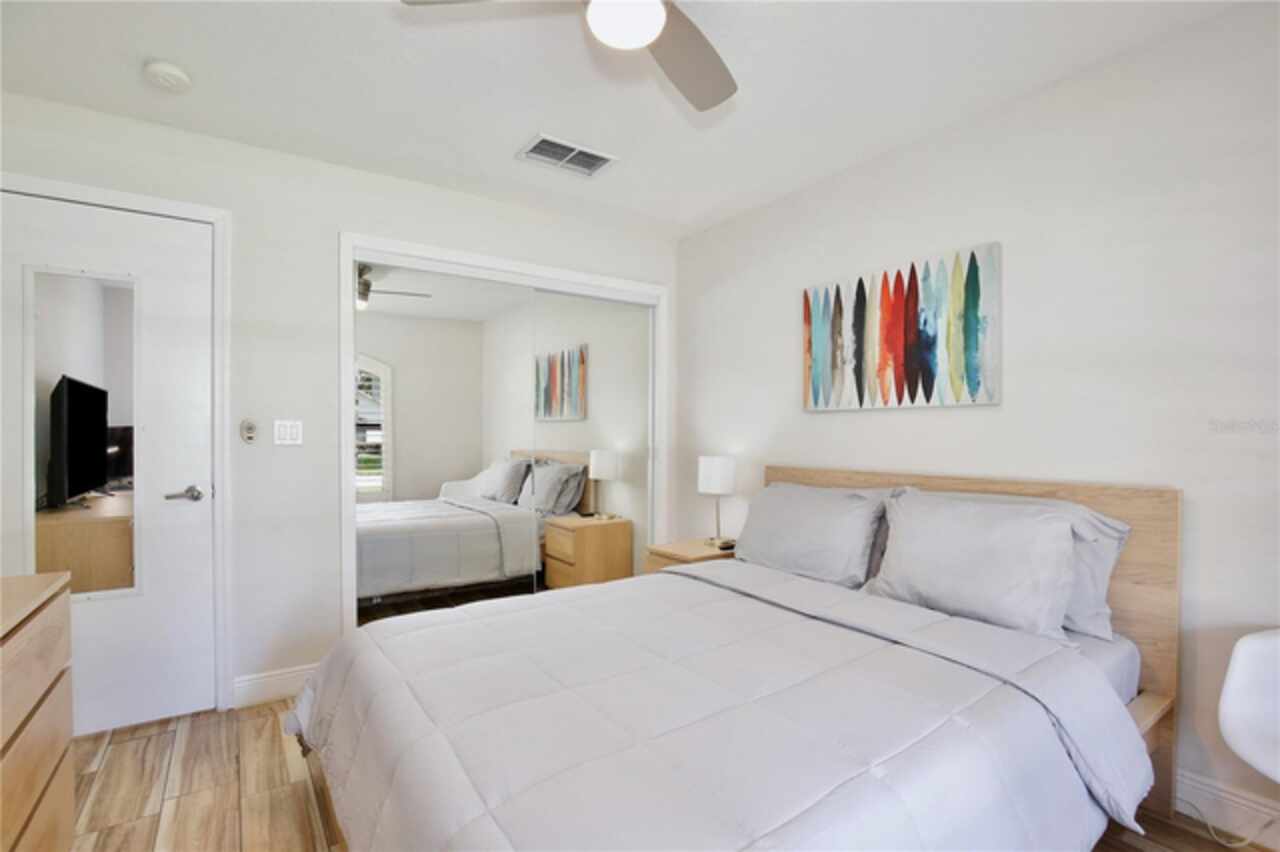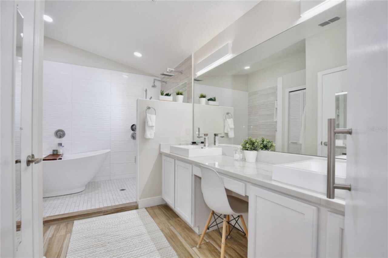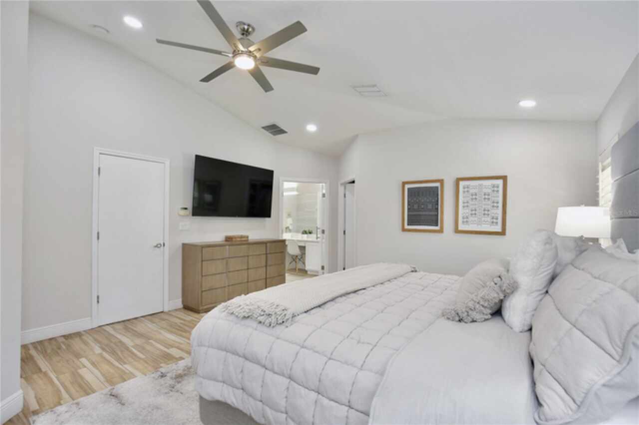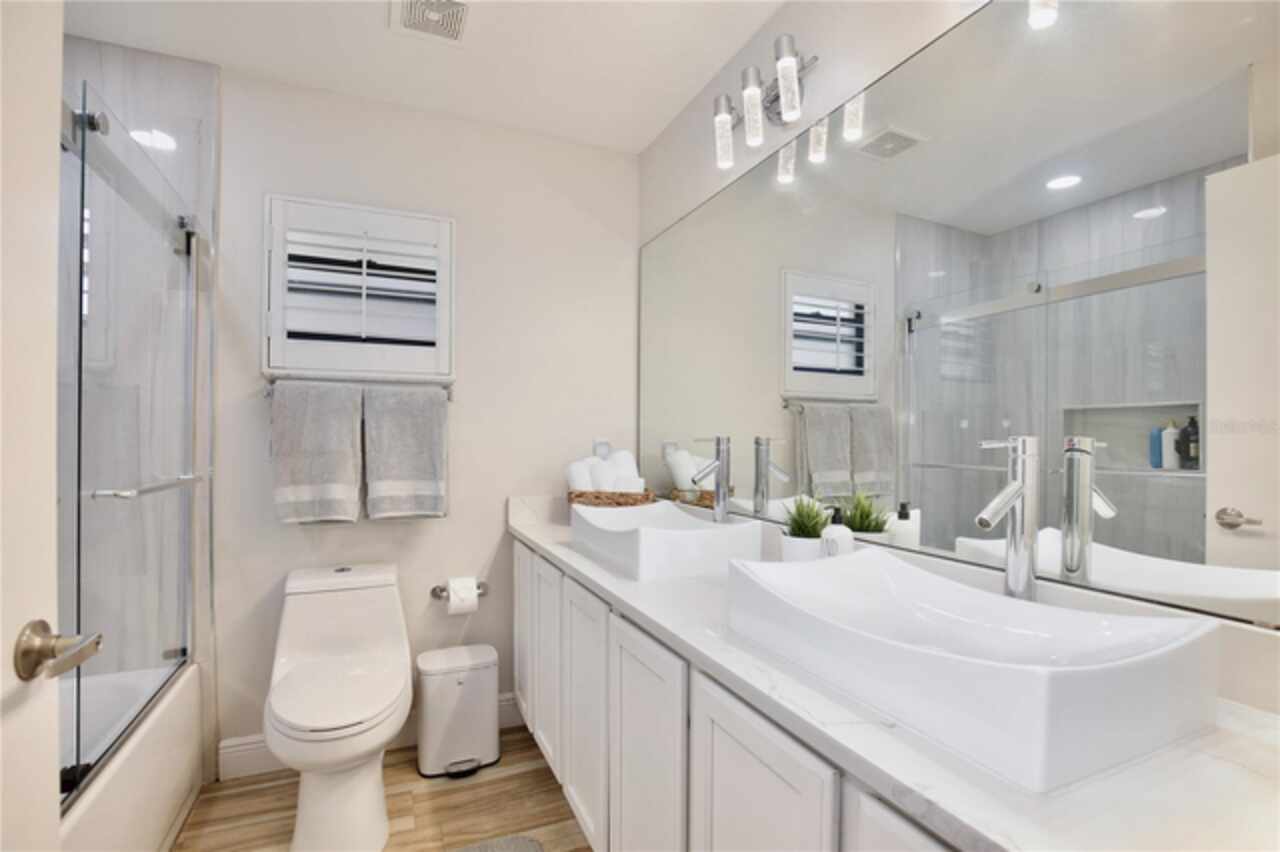 Under contract-accepting backup offers. Discover the epitome of Floridian luxury living in this stunning fully remodeled waterfront home. Nestled in the gated community of East Lake Reserve, this property offers a serene oasis with its captivating curb appeal, meticulous landscaping, and breathtaking water views. Step inside to an open and airy interior boasting neutral colors, soaring ceilings, and stylish accent lighting. New wood style flooring flows throughout the home, leading you to a spacious living room that transitions seamlessly into an enclosed sunroom, perfect for soaking in the tranquil waterscape. The heart of the home is the newly remodeled kitchen, featuring stainless steel appliances, sleek modern cabinets, and bar top seating under elegant pendant lighting. Accentuated with decorative tile and recessed lighting, the space includes a convenient pantry and a cozy breakfast nook illuminated by a modern chandelier. Beyond the kitchen, the home offers versatility with formal living and dining spaces, currently utilized as a relaxing sitting room and a home office with plantation shutters and a chic glass door entry. The grand primary suite is a private retreat, with a walk in closet offering custom built ins and a hidden storage behind the mirror, perfect for storing shoes. The adjoining updated modern bath is a sanctuary complete with dual vanities and a colossal shower housing a freestanding tub amid exquisite tiling. Guests will enjoy the three additional bedrooms, complete with mirrored closets and plantation shutters. Updated guest baths feature glass door showers and beautiful tile work. A functional laundry room boasts storage cabinets, a sink, and a large folding station. Step outside to a beautifully landscaped outdoor space with a partially covered paver patio and water views, ideal for entertaining or unwinding with nature's soundtrack. Or walk across the street to the community’s boat dock and fishing pier to reel in a fresh catch for dinner. You’ll be a short drive from Orlando International Airport, Lake Nona Medical City, and 417. Spend the weekends browsing the quaint downtown streets of St Cloud, savoring the food trucks of Boxi Park, or go skating at the Ice Factory. There’s endless things to do in this amazing location! Immerse yourself in the 3D tour and schedule a showing to experience this dream home today.