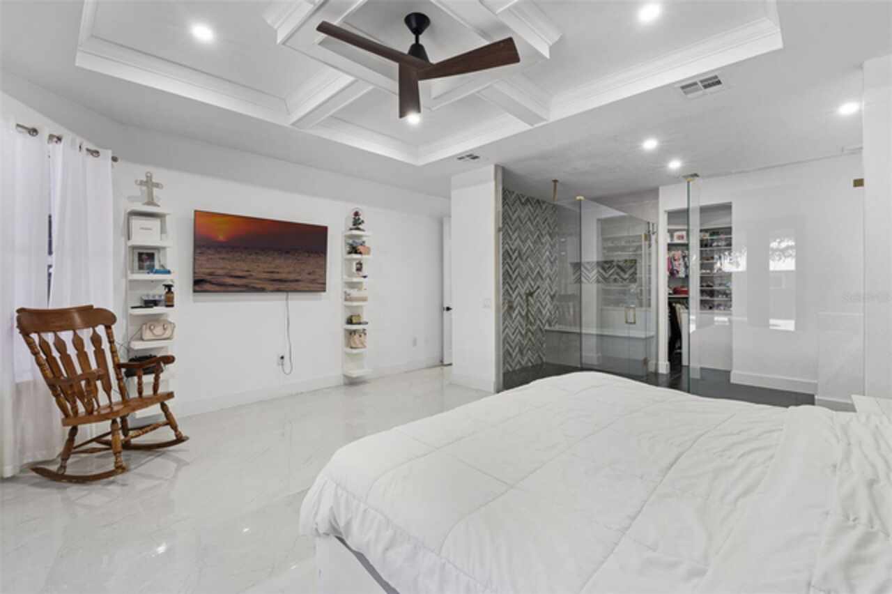 Built-in Features, Ceiling Fans(s), Coffered Ceiling(s), Eat-in Kitchen, High Ceilings, Open Floorplan, Split Bedroom, Stone Counters, Thermostat, Walk-In Closet(s)