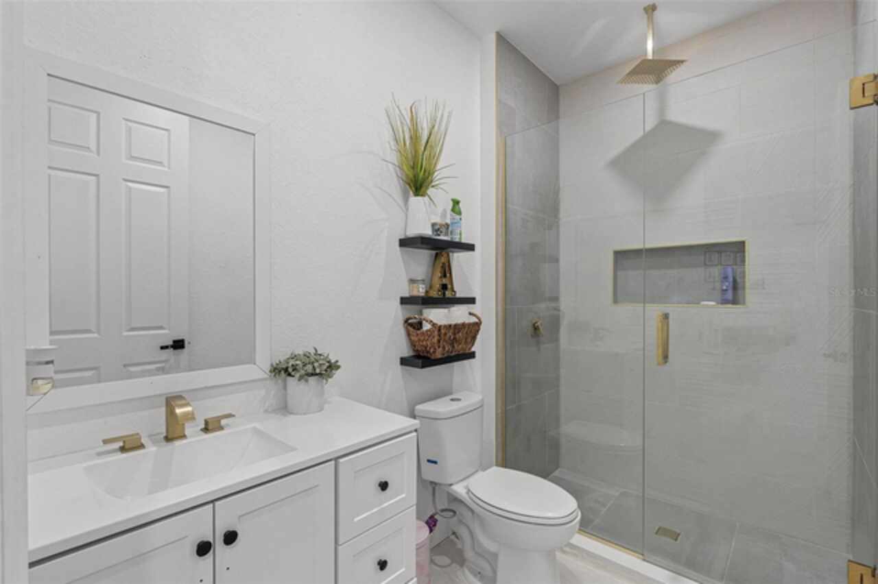 Make no compromises on this fully renovated home, ideally situated in a quiet neighborhood, minutes away from all general conveniences. Built in 2014, and fully renovated in 2023, the seller spared no expenses, creating a open concept masterpiece with designer touches and elevated materials. With large upgraded tile throughout and an abundance of natural light this home blends contemporary finishes with the welcoming comforts of a home. In the heart of the home, an open kitchen, with sleek dual tone cabinets, designer tile backsplash, stylish appliances and natural stone counter, make entertaining friends as well as cozy meals with the family a breeze. In the primary suite is a true retreat, with a wet room in the center, dual sinks and a generous walk-in closet. Two of the guest bedrooms are connected through a spacious Jack & Jill bathroom, while the third guest bedroom offers your guest privacy and comfort. The covered patio creates a perfect space for the indoor/outdoor living, overlooking the pool and water feature. Located just down the street from Chisholm Regional Park and East Lake Toho, with NO HOA and an oversized lot, this home is perfect for all your “toys”. All of this is still only minutes away from the airport, shopping, restaurants and top rated schools.