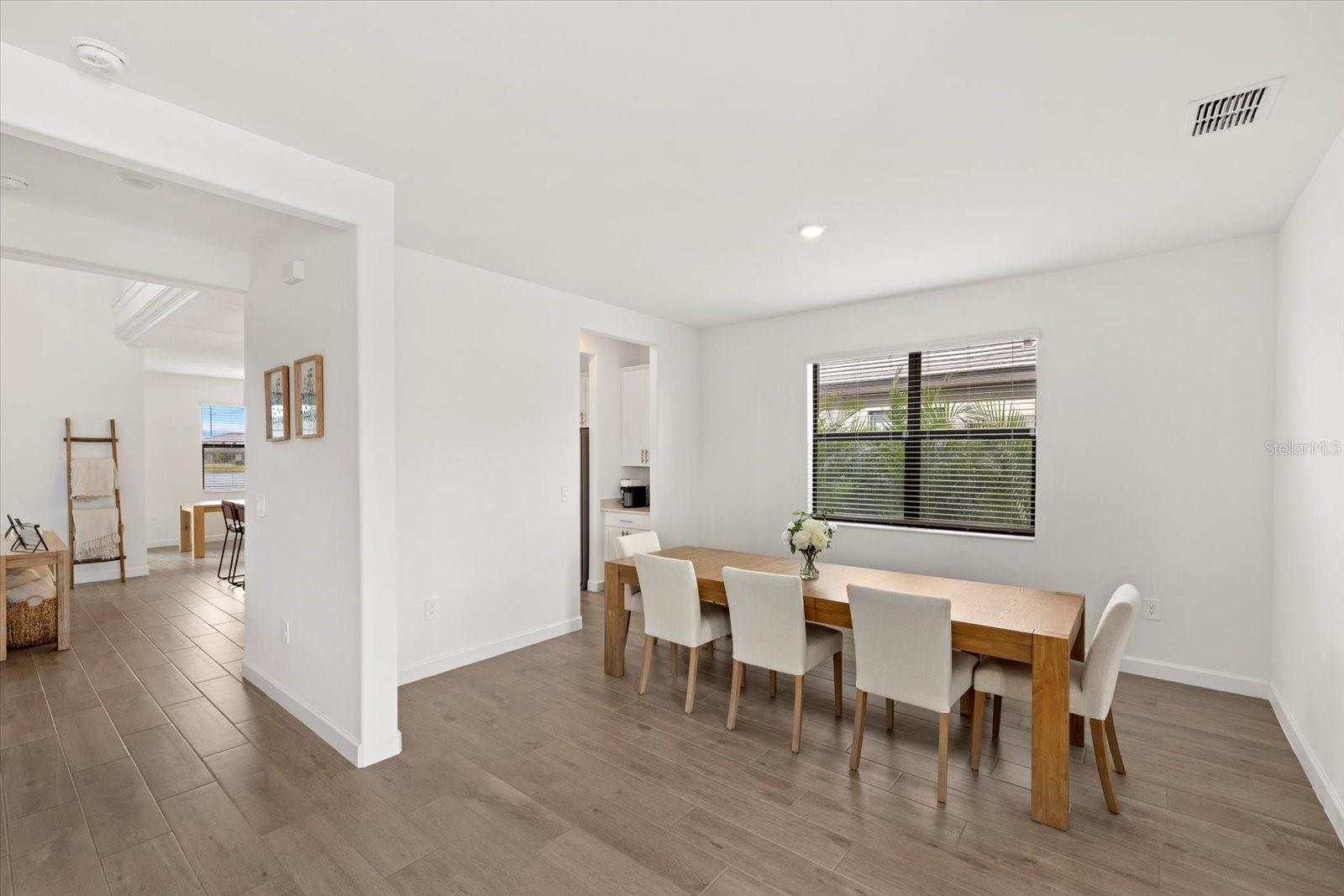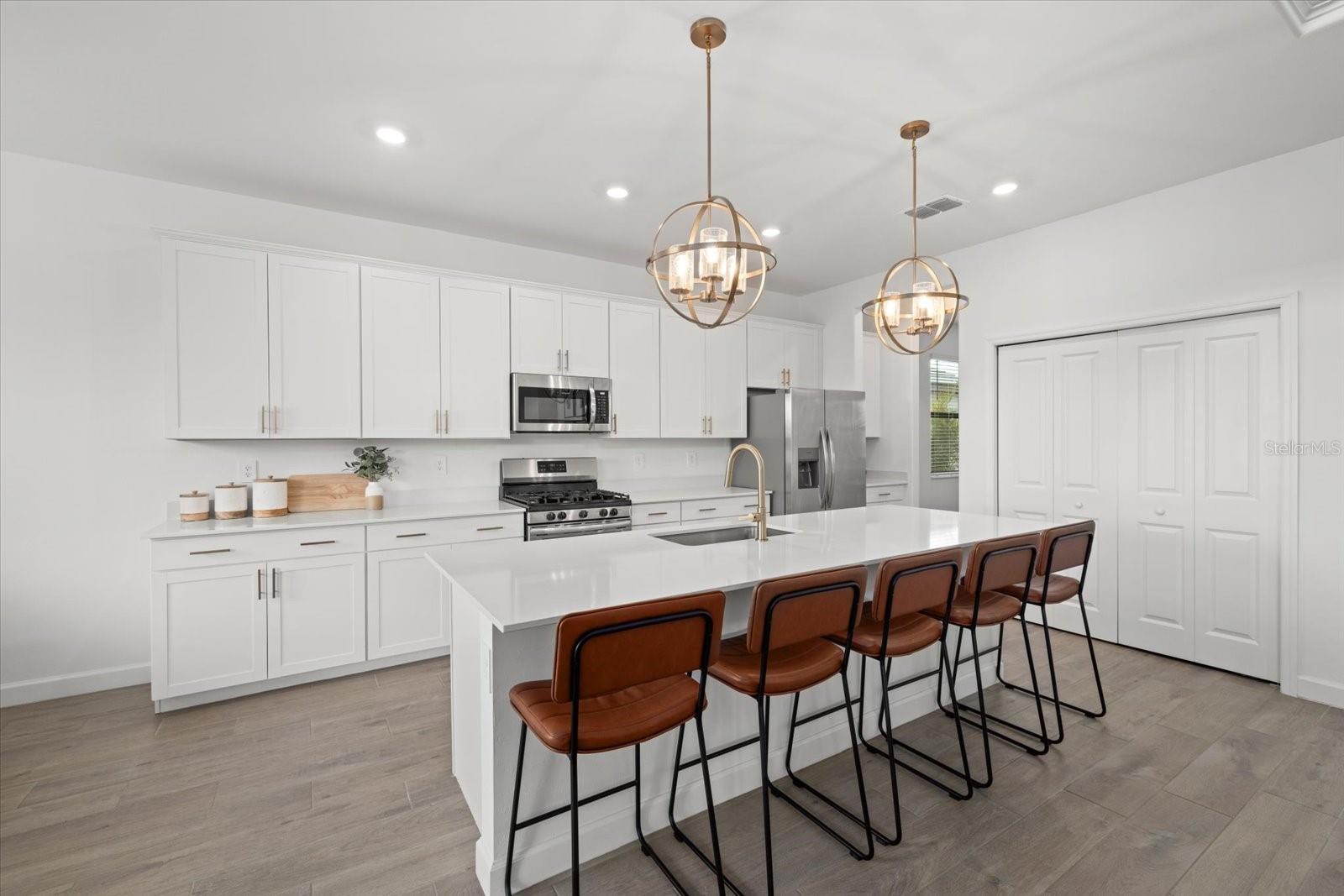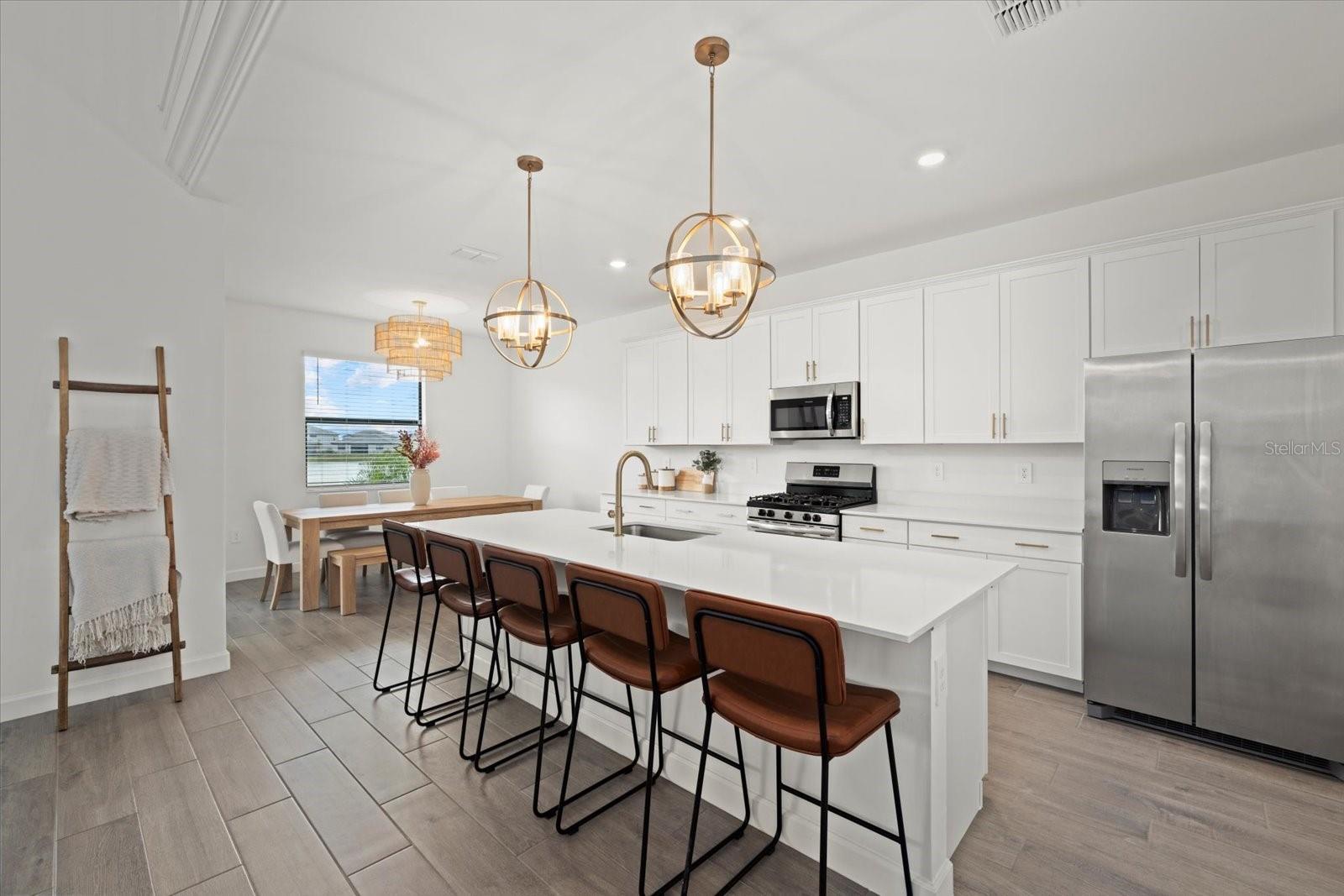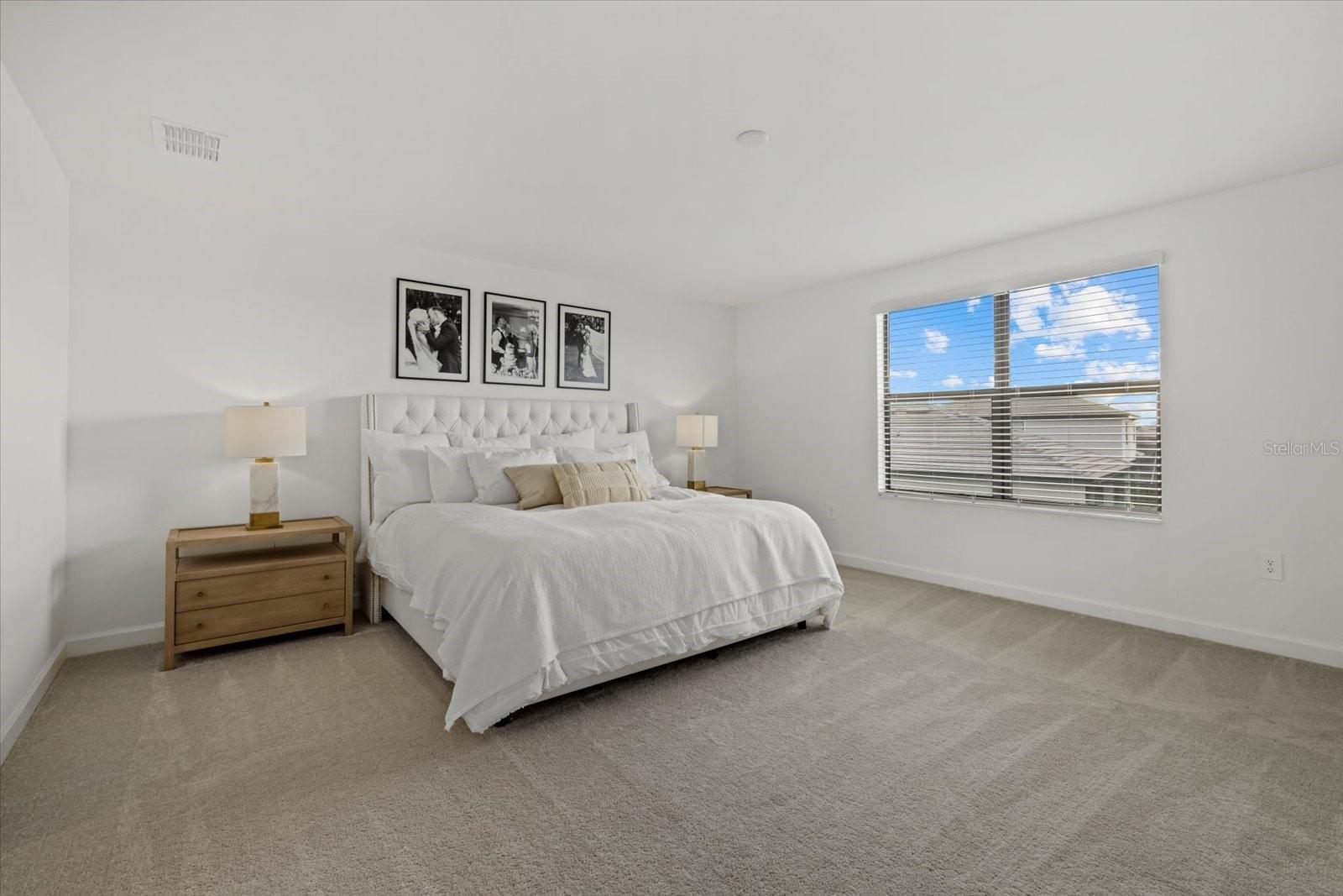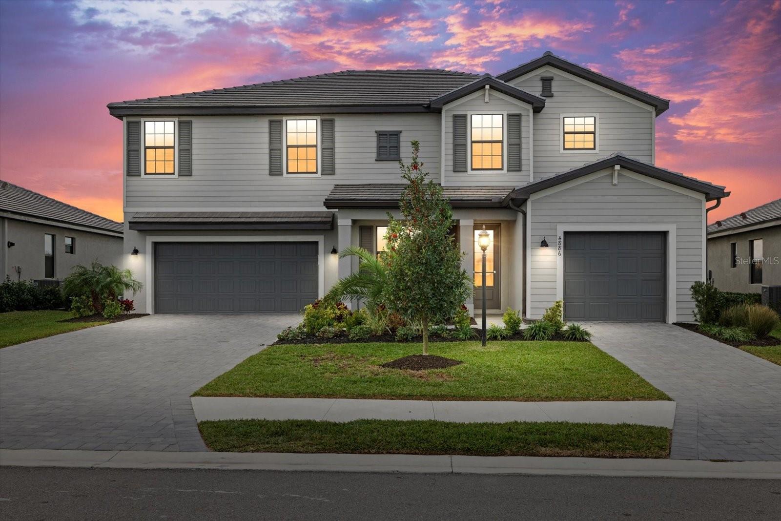 Impressive five-bedroom, five-bathroom residence in the heart of Lakewood Ranch within a picturesque resort community. Positioned on a lot that offers beautiful water views, the home is enhanced by lush privacy palms lining the backyard and perfect southwestern lighting with sunset vistas. The property includes a split three car garage and dual driveways with winding paver walkways leading to the glass front door. Upon entering, you are welcomed by an abundance of natural light that fills the home, creating a warm glow throughout. The first floor is finished with stunning, professionally sealed plank tile floors. To the right, a formal dining room with a butler’s pantry provides an ideal space for special occasions and holiday gatherings with family and friends. The kitchen showcases sparkling quartz countertops and stainless steel appliances complemented by champagne bronze hardware and designer lighting. Adjacent to the kitchen, the open concept breakfast nook offers a comfortable spot for casual dining with lovely views of the water. A focal point of this stunning residence is the impressive two-story great room, which enhances the sense of spaciousness and grandeur within the home. The design incorporates two sets of glass sliding doors that invite natural light and provide a seamless transition between indoor and outdoor spaces. Relax on the covered, screened lanai watching the sun set over the water. On the first floor, there is also a generously sized bedroom that offers versatility, easily functioning as a home office or guest room. This bedroom features an attached full bathroom that serves as a convenient pool bath, adding to the home's functionality. Back inside, as you ascend the open grand staircase, you’ll find the spacious primary bedroom, which features, not one, but two walk-in closets. The primary bathroom features split vanities, quartz countertops, and a large walk-in shower. Additionally, there are three large bedrooms upstairs, one of which includes its own ensuite full bathroom. A third full bathroom with double sinks is also conveniently located on this floor. Completing the upper level is a versatile bonus room, ideal for use as a playroom, movie room, or game room. Lorraine Lakes boasts attractive features such as paver driveways, tile roofs, and a guard gate for added security. The HOA covers cable and internet, lawn maintenance, irrigation water, and offers a full range of resort-style amenities. Residents can enjoy an outdoor bar, a restaurant for poolside dining, a resort pool with separate lap pool, a hot tub, a splash playground, and facilities for tennis, pickleball, and basketball, including both indoor and outdoor courts. Additional amenities include a full fitness center, an arcade, an indoor playroom, a playground, a fishing dock, and a coffee bar. Schedule a showing to see this beautiful five-bedroom, five-bathroom home complete with a three car garage in Lakewood Ranch before it’s no longer available. The home has ample backyard space to design and customize your dream pool.