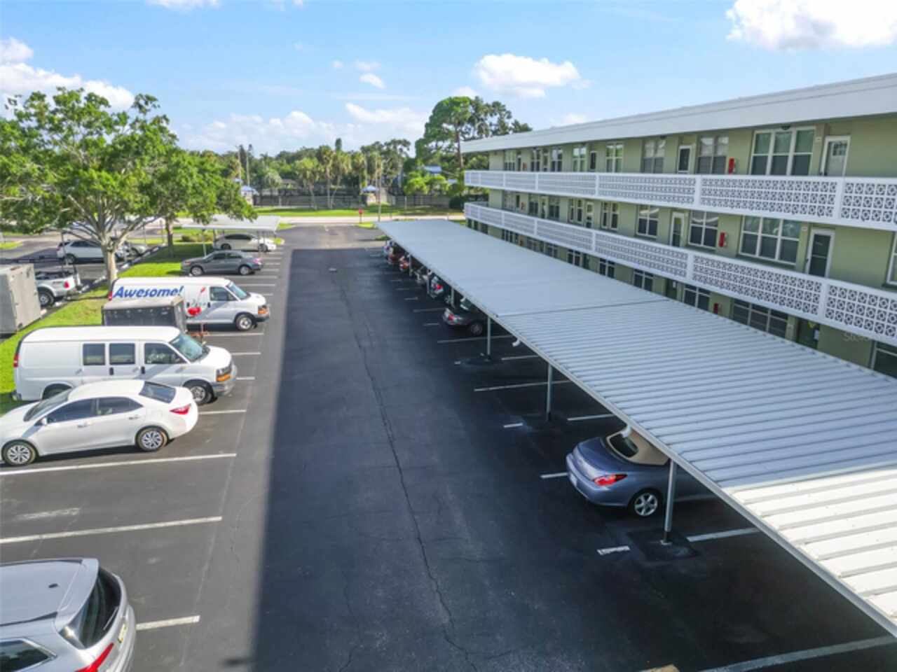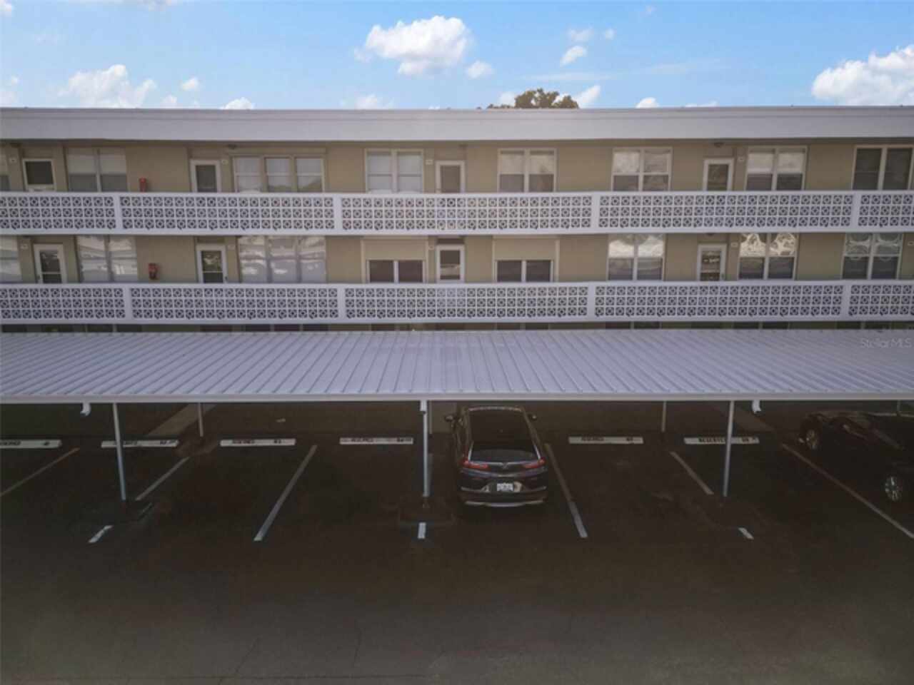 Welcome to Winston Park Northeast, a 55+ community offering maintenance-free living in the heart of St. Petersburg. This 2-bedroom, 2-bath condo is ready for your personal touch. Recent updates include new windows and motorized hurricane shutters (both installed within the last 2 years), a remote-controlled master walk-in Jacuzzi tub (2 years old), a new electric panel and tankless water heater (6 months old), and an A/C system that's only 5 years old. Enjoy the oversized kitchen with ample cabinet space and the potential to raise the ceiling lighting for a more modern feel. The primary suite features a large walk-in closet and spa-style bath. The second bedroom includes a convenient Murphy bed, offering flexibility for guests or home office use. This unit comes with one covered parking space, shared laundry and private storage on each floor, and access to a clubhouse, heated community pool, and shuffleboard courts. The HOA fee covers nearly everything: cable TV, high-speed internet, water, sewer, trash, exterior maintenance, insurance, pest control, pool, and grounds care. Cats and other small pets - up to 2. Centrally located near shopping, dining, and recreation, Winston Park is also just minutes from the St. Pete Racquet Club, Northeast Park Shopping Center, and beautiful local golf courses. Start enjoying the Florida lifestyle you deserve - schedule your private showing today!