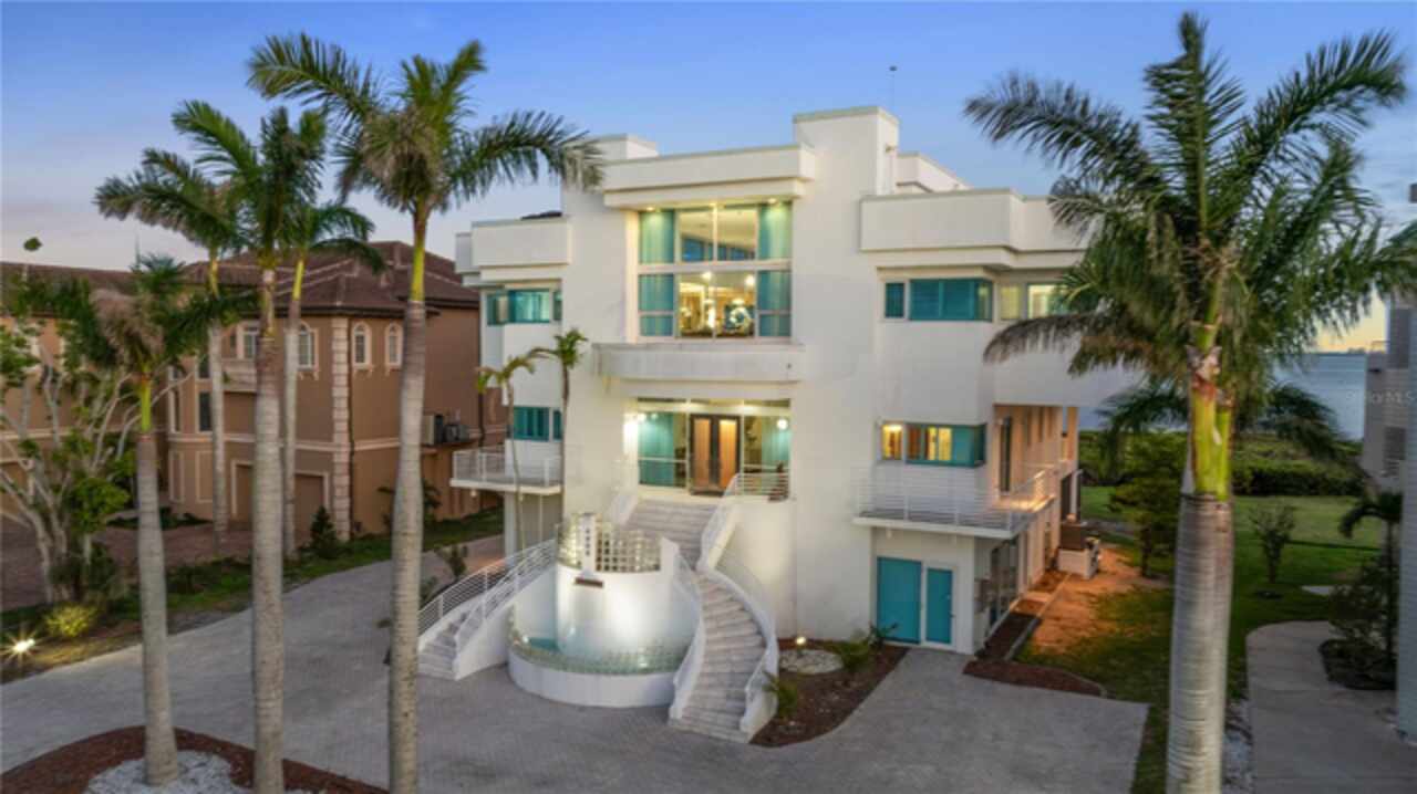 Located in the private, gated enclave of Esplanade on the Bay, this one of a kind contemporary bay front home has been masterfully designed. Every room is an experience in luxury living, featuring a seamless blend of indoor and outdoor spaces with endless water views. Spanning over 6728 Sq. Ft., exquisite stone floors and curated lighting adorn this 4 bedroom, 5 1/2 bath residence. The stately great room with it's soaring ceilings and wall to wall glass windows is the focal point of the main level, accompanied by an elegant formal dining room, gourmet chief's kitchen with top tiered appliances and oversized island. The spacious owners suite features a fireplace and spa-like bathroom retreat. The second floor has a large family room, study, home theater, guest room and two additional bedrooms with en-suite baths. Outdoors, enjoy the sparkling pool and spa, and expansive terraces offering multiple seating areas, alfresco dining, and stunning panoramic views of Sarasota Bay. Additional features include solar energy, oversiized 4 car garage, catering kitchen, billiard room, elevator, meditation room and so much more. This extrodinary home offers unmatched sophisticaion and comfort for luxury living, all within easy access to downtown Sarasota, fine dining and barrier islands and only 1 Mile to IMG Academy and 10 Minutes to Sarasota-Bradenton Airport.