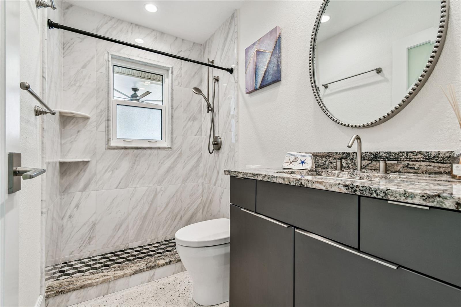 Saltwater Canal with direct access to the gulf and many restaurants, no fixed bridges. Waterfront, Boaters Delight and Gourmet Kitchen. Includes 15, 000 lb private lift & covered, and double jet ski lift on 93' of seawall. Did not suffer any hurricane damage. In 2017 a full remodeled was started as a complete renovation, completely gutted down to studs with new drywall & ceilings. Home is furnished and can be bought separately. This coastal ranch invites you to experience the ultimate Florida lifestyle on a saltwater canal with quick Gulf access—just minutes from Anna Maria Island and Longboat Key. This stunning retreat offers effortless boating, dolphin watching, fishing, and sunset cruising from your private backyard oasis. Home features unique international exotic stones, mature palms, and a full irrigation system welcomes you home. Step into the backyard on a elevated terrace finished in RARE ONYX and reinforced block walls with rebar construction for lasting strength. Originally a three-bedroom home, it was reimagined into a spacious two-bedroom layout with an enlarged primary suite and open flow; a third bedroom could be added. Since 2018, the residence has been redesigned top to bottom, featuring a glazed ceramic tile roof, steel beam reinforcement, and all-new systems throughout. Interiors are a showcase of luxury and artistry, highlighted by crystal-accented granite, Azurite slabs and seamless terrazzo floors creating a sleek. Every detail reflects sophistication, from Minka remote-control fans and LED lighting to propane gas conversion for high-end cooking performance. The gourmet kitchen is a true centerpiece—adorned with Azurite stone counters in deep ocean hues, waterfall island, full-height backsplash, wine bar, and Wolf hood vented through the roof. Prepare your fresh catch without lingering odors and entertain with ease. Four hurricane-rated sliders open to the screened and heated saltwater pool and spa for seamless indoor-outdoor living. The self-cleaning pool and propane heater warm the spa in minutes, while underwater lighting sets the mood for relaxing evenings. The primary suite captures the morning light, featuring porcelain wood-look floors, a custom walk-in closet, and a spa-inspired bath clad in striking Patagonia Quartzite with rain shower, three body jets, and handheld sprayer. Graber designer shades add privacy and elegance. Built for durability and low-maintenance living, this home includes a wind mitigation report qualifying for low insurance rates, impact glass, new electrical and plumbing, Rinnai tankless water heater, generator, and updated systems throughout. A Hardie plank shed, vinyl fencing with double gates, and ample outdoor storage enhance function and value. The home appraised above list price and was unaffected by the 2024 hurricanes. Enjoy direct boating access to the Intracoastal and Sarasota Bay with nearby waterfront restaurants, sandbars, golf, beaches, and world-class fishing. Play pickleball at GT Bray Park, shop local markets, or bike through Robinson Preserve and the historic Cortez village. Ideally located in Bradenton, just 12 miles to downtown Sarasota and 5 miles to SRQ Airport, this home combines elegant coastal design with everyday convenience. Live where dolphins and manatees greet you at your dock, and sunsets paint the sky over the Gulf. 4911 Bimini Drive isn’t just a home—it’s your slice of paradise. See video & 3D tour.