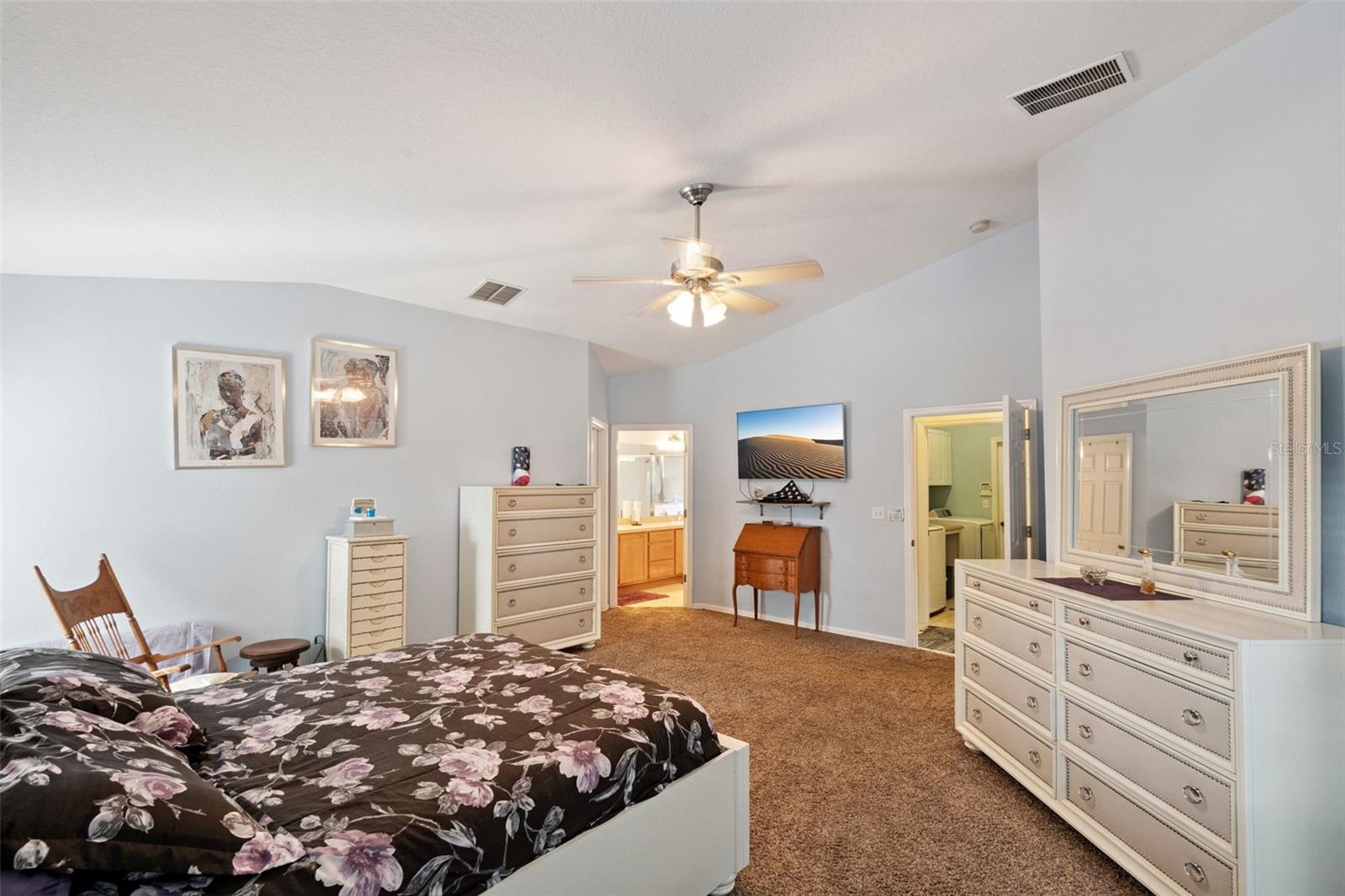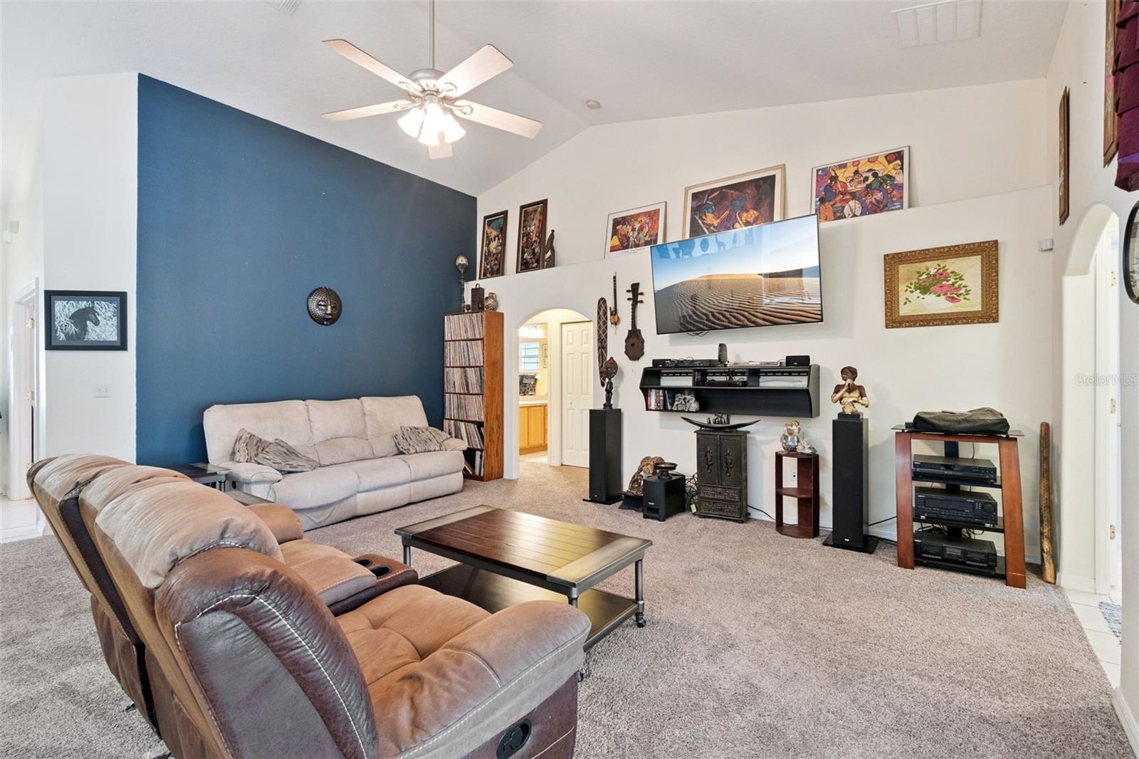 Cathedral Ceiling(s), Ceiling Fans(s), Eat-in Kitchen, Kitchen/Family Room Combo, Solid Surface Counters, Vaulted Ceiling(s), Walk-In Closet(s)