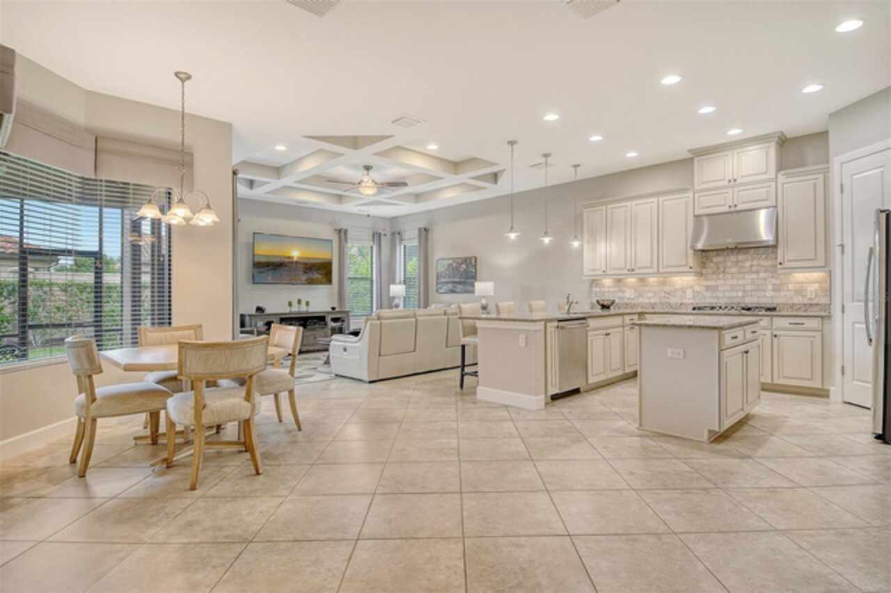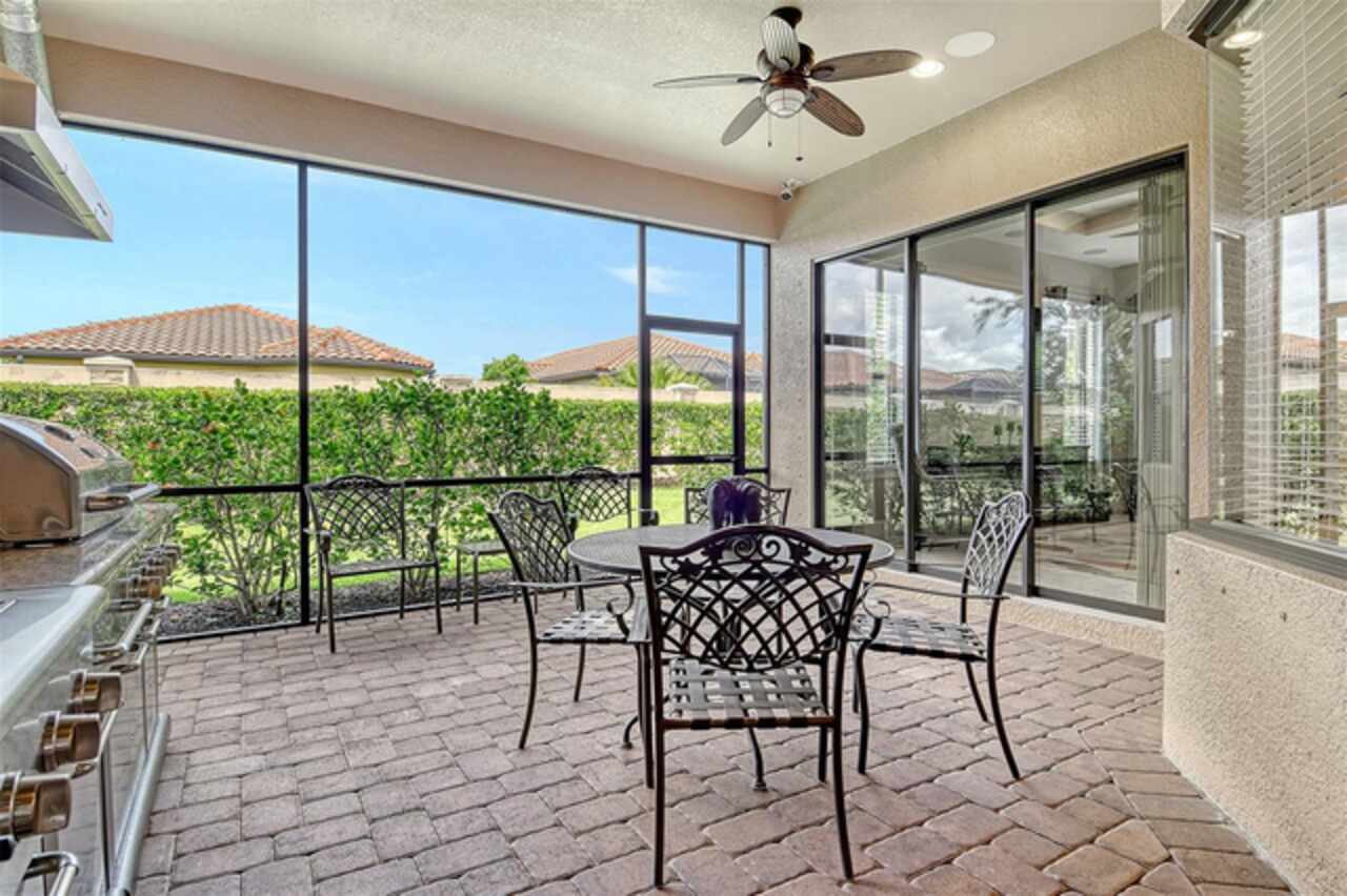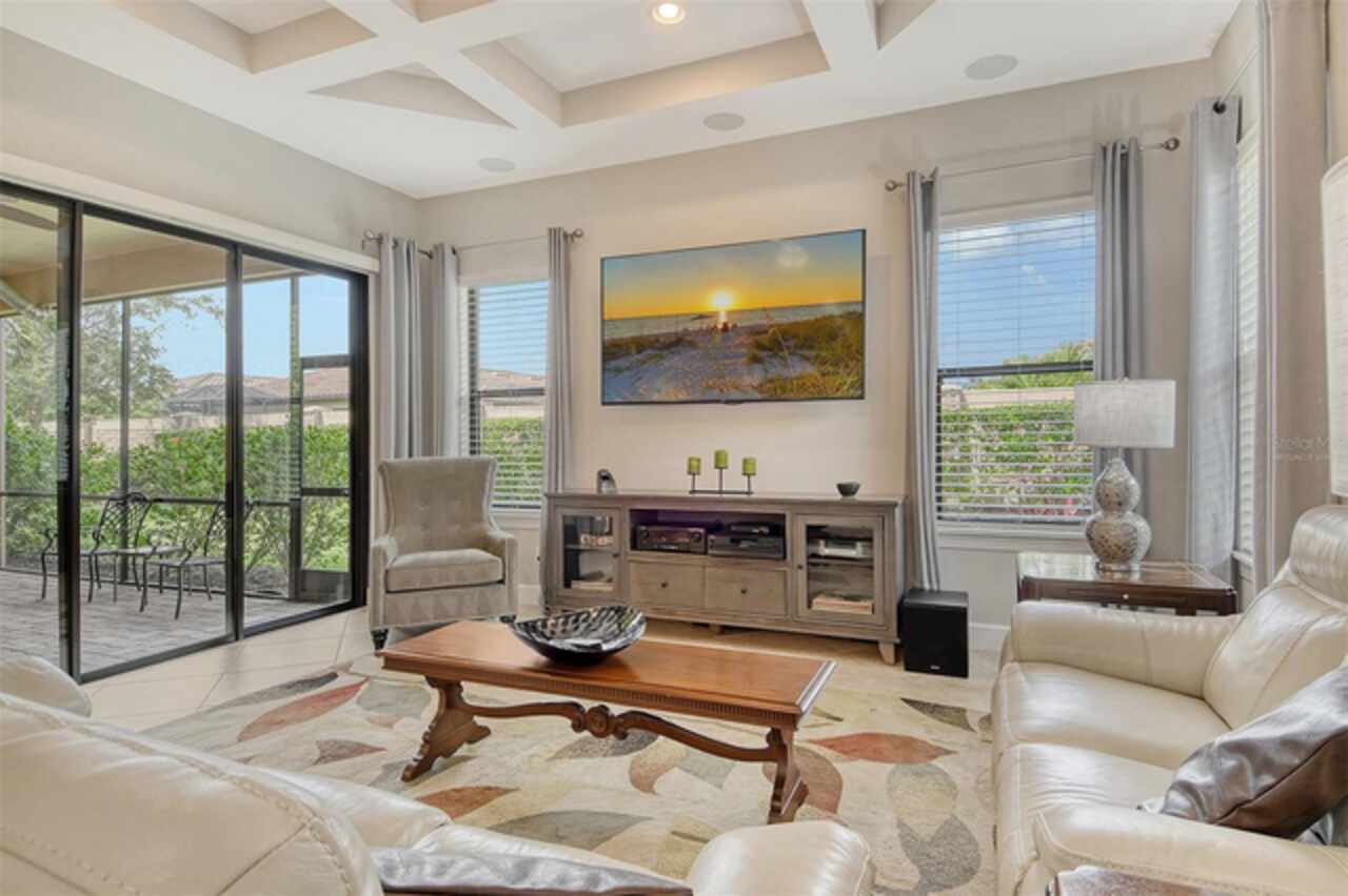 WELCOME HOME to your BELLA CASA VII Floorplan. Very few of this floorplan were built and even fewer become available! Open and airy, this floorplan provides nearly 3000 sq ft of under air living space while delivering the spaciousness desired in a great floorplan with a uniqueness all its own. Offering three bedrooms all on suites with an additional powder room and den! Tray ceiling in the family room brings that special touch to the family room area while keeping the other ceilings in the home transitional in design. The home's neutral color palette makes it a decorator's delight. A large quartz island with pendant lighting along with GE stainless steel appliances including a gas cooktop with built in oven and microwave makes this kitchen highly functional and very attractive. Surround sound throughout. The tandem garage is currently a built-out area which can function in a variety of ways with air condition for a wine room or the current owner would be happy to remove convert it back to open extra garage space. The Full-Home Kohler Generator provides added peace of mind. Home Warranty Included. GOLF MEMBERSHIP IS INCLUDED in the HOA fees. Enjoy playing on your 18-hole championship course as you enjoy all the resort-style amenities provided. Enjoy the onsite world class culinary center. Enjoy all the wonderful dining options for dining out within leaving your private gated community. The Tiki Bar, The Bahama Bar, The Barrel House. Numerous ways to get your steps in -pickle ball courts, tennis, bocce ball then you can cool down on of the two pools and spa. Wellness programs, fitness center with full time activities director on site! Let's not forget the playground and dog park! The home is one block away from all these neighborhood activities. Esplanade Golf and Country Clubs is one of Lakewood Ranch's premier Golf and Country Club Communities and Lakewood Ranch is one of the top ranked Master Planned Community in America! Yes, it is all about the Floorplan and the Location.