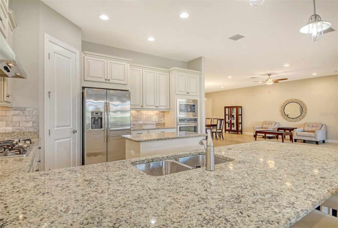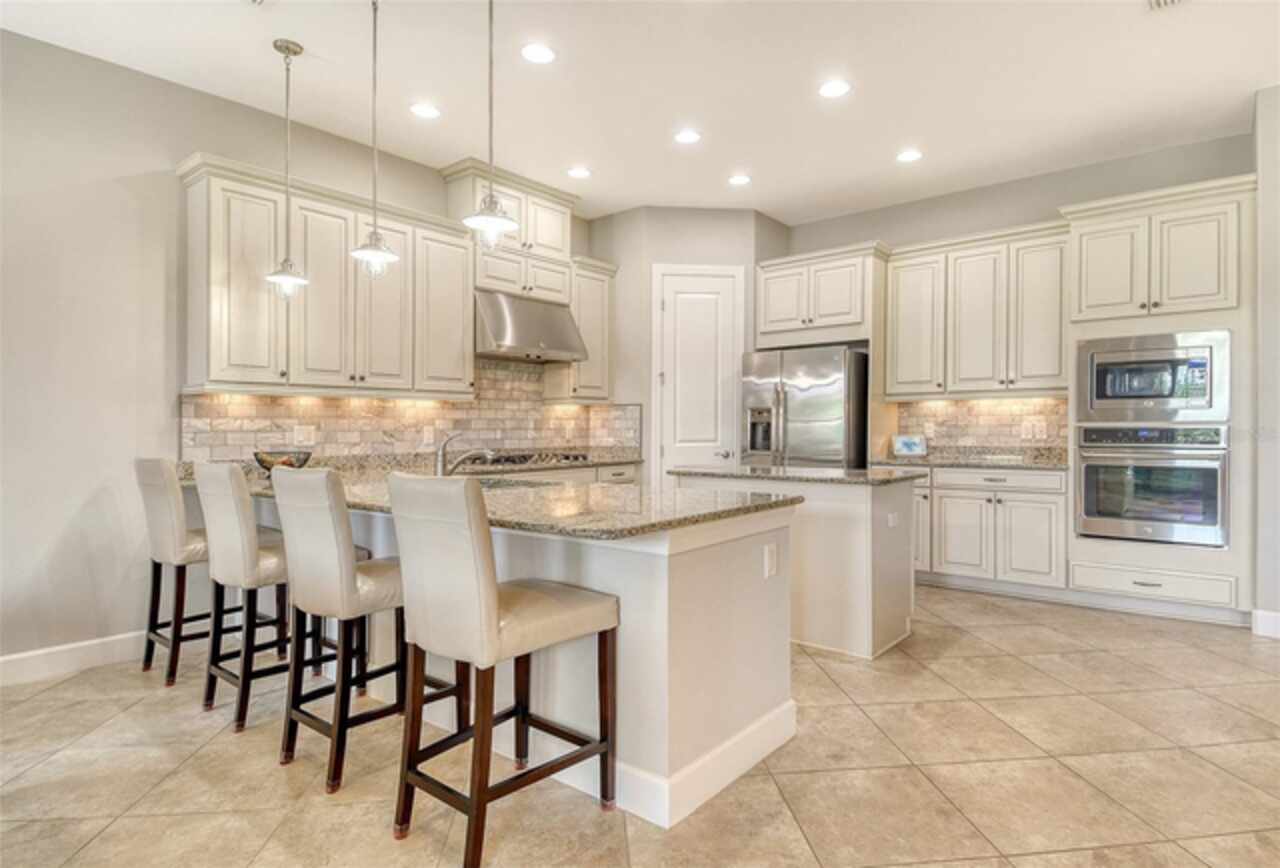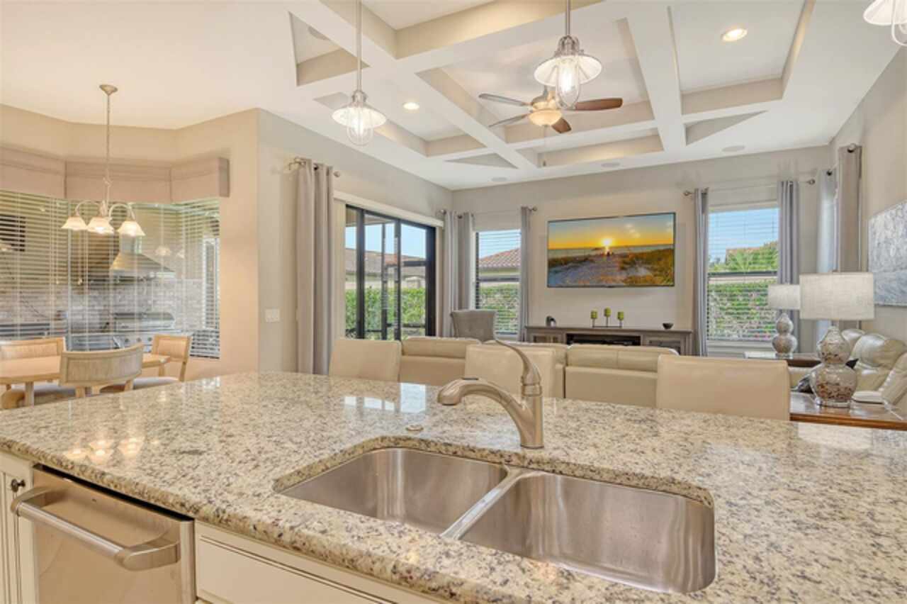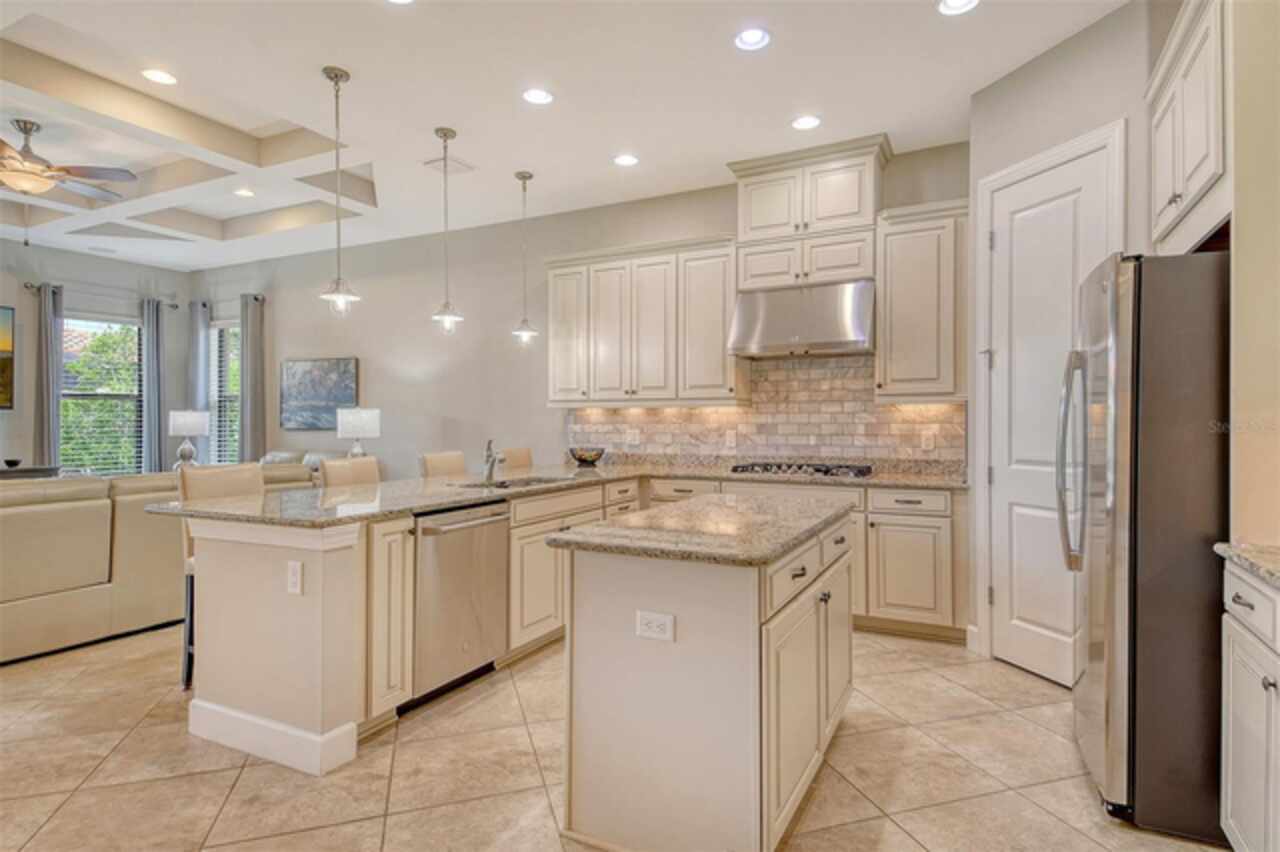 WELCOME HOME to your BELLA CASA VII Floorplan. Very few of this floorplan were built and even fewer become available! Open and airy, this floorplan provides nearly 3000 sq ft of under air living space while delivering the spaciousness desired in a great floorplan with a uniqueness all its own. Offering three bedrooms all on suites with an additional powder room and den! Tray ceiling in the family room brings that special touch to the family room area while keeping the other ceilings in the home transitional in design. The home's neutral color palette makes it a decorator's delight. A large quartz island with pendant lighting along with GE stainless steel appliances including a gas cooktop with built in oven and microwave makes this kitchen highly functional and very attractive. Surround sound throughout. The tandem garage is currently a built-out area which can function in a variety of ways with air condition for a wine room or the current owner would be happy to remove convert it back to open extra garage space. The Full-Home Kohler Generator provides added peace of mind. Home Warranty Included. GOLF MEMBERSHIP IS INCLUDED in the HOA fees. Enjoy playing on your 18-hole championship course as you enjoy all the resort-style amenities provided. Enjoy the onsite world class culinary center. Enjoy all the wonderful dining options for dining out within leaving your private gated community. The Tiki Bar, The Bahama Bar, The Barrel House. Numerous ways to get your steps in -pickle ball courts, tennis, bocce ball then you can cool down on of the two pools and spa. Wellness programs, fitness center with full time activities director on site! Let's not forget the playground and dog park! The home is one block away from all these neighborhood activities. Esplanade Golf and Country Clubs is one of Lakewood Ranch's premier Golf and Country Club Communities and Lakewood Ranch is one of the top ranked Master Planned Community in America! Yes, it is all about the Floorplan and the Location.