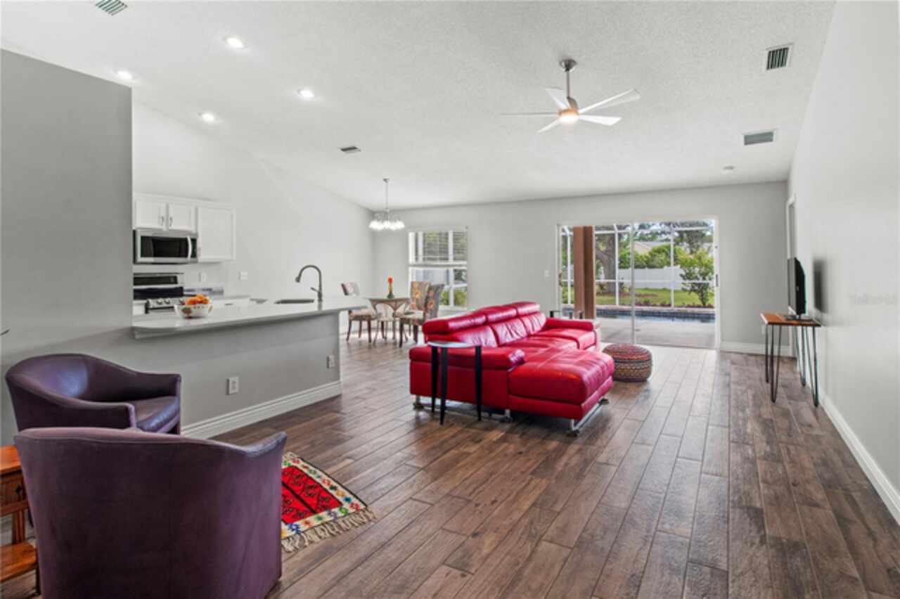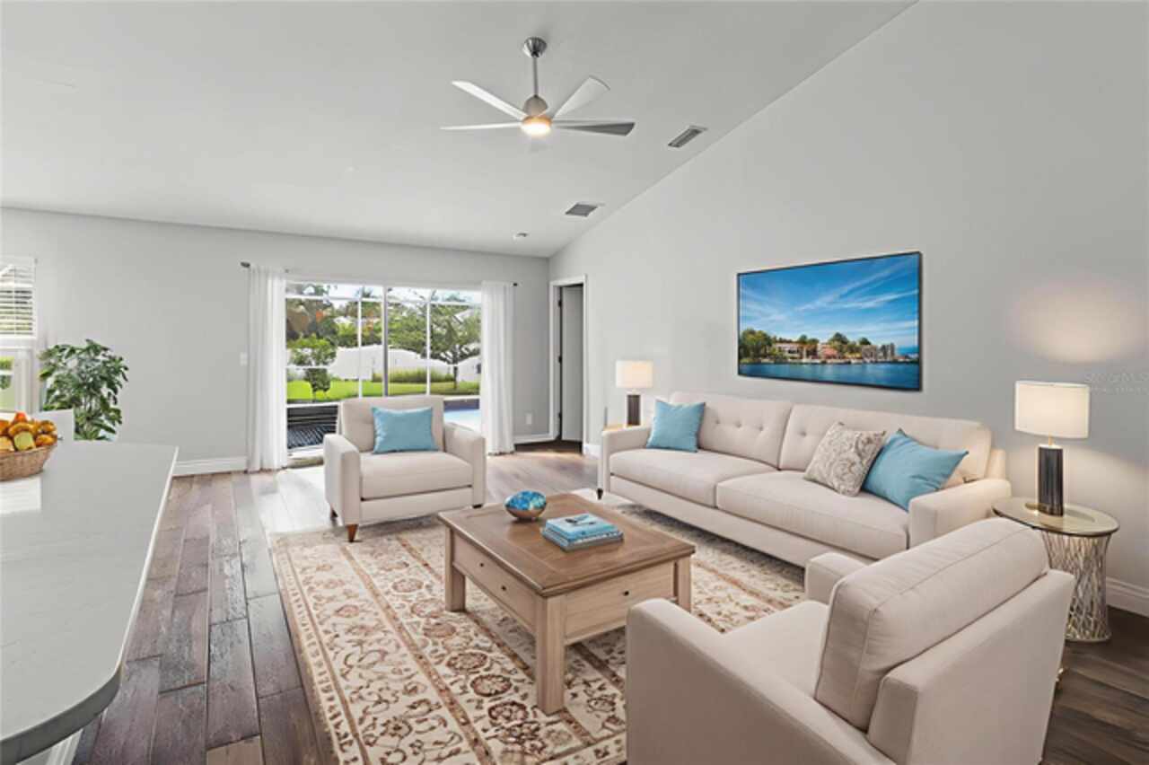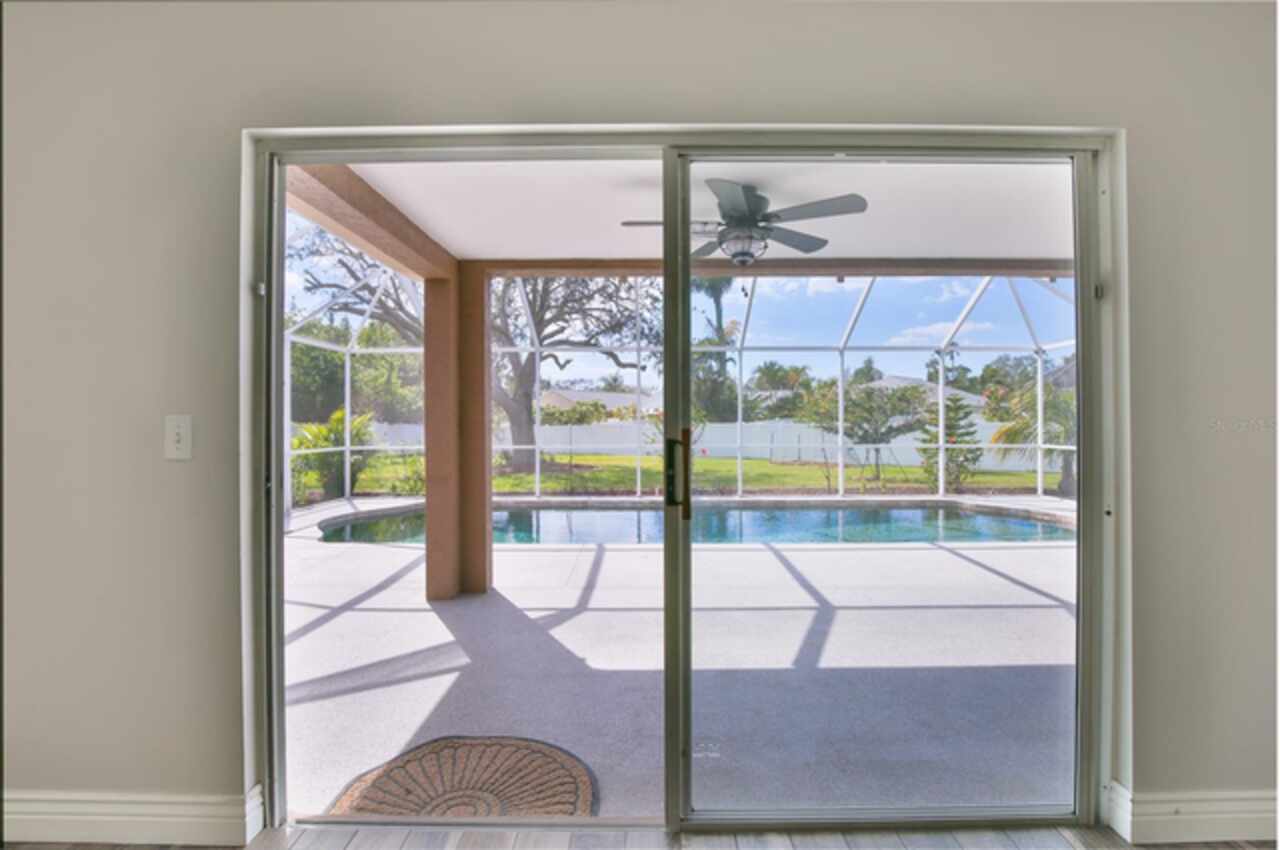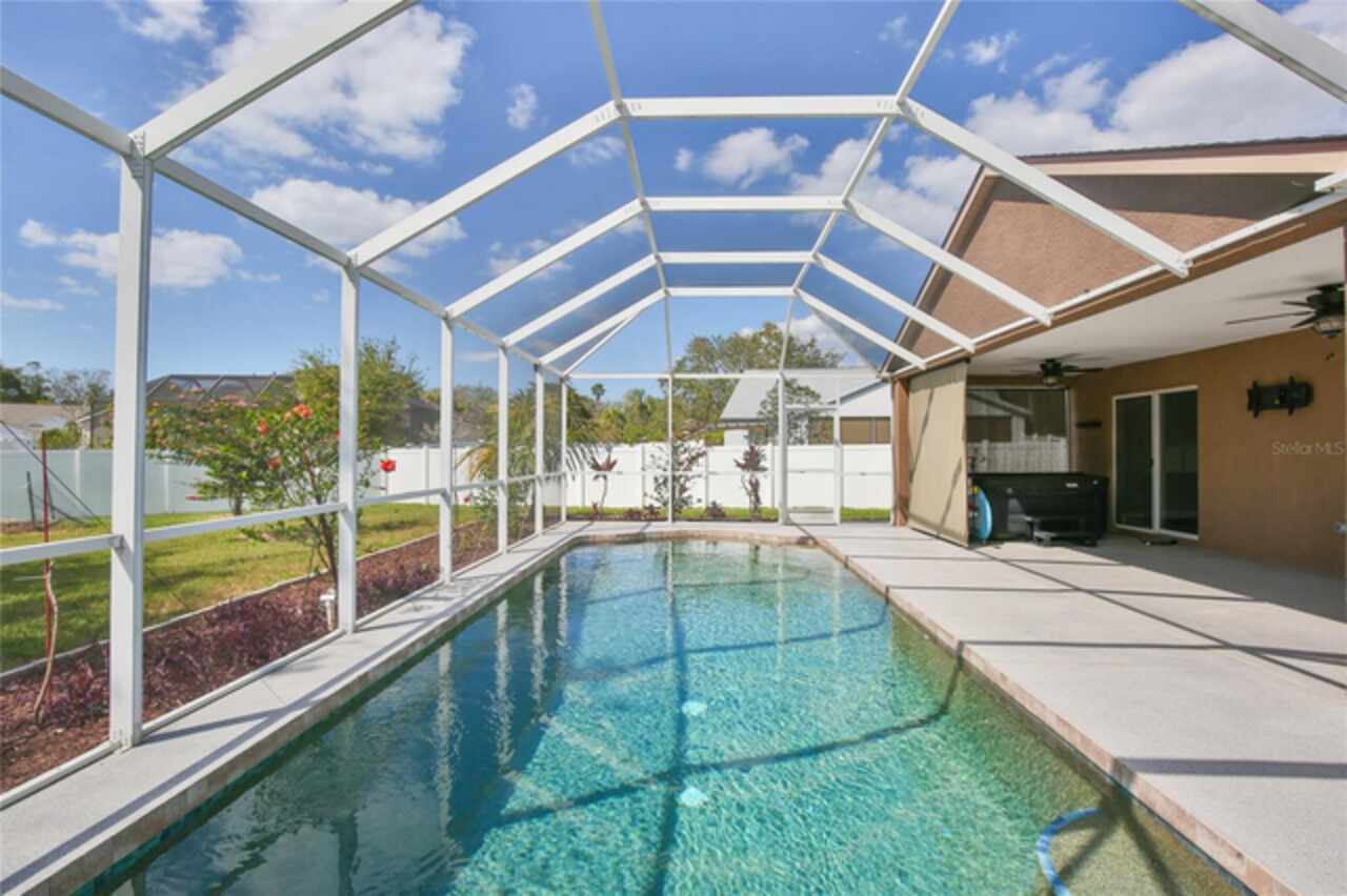 One or more photo(s) has been virtually staged. Back on market due to no fault of the seller. Welcome to this delightful pool home in the well-established community of Sabal Harbour. This is a one of a kind property with an expansive fenced yard for your fur babies and own enjoyment. Featuring high ceilings (some 12’), an abundance of windows, and sliding doors, you are sure to enjoy the natural light this home offers. From the foyer, the guest wing with two bedrooms and full bath give a distinct separation offering privacy from the primary bedroom. The primary bedroom with en suite bath offers dual sinks, walk-in shower, water closet and sizeable walk-in closet which has been tastefully remodeled. Ther is plenty of room for entertaining and cooking with the open kitchen and capacious great room. The roomy kitchen with breakfast bar, dinette area, stainless appliances (refrigerator, microwave and oven new in 2022) and pantry open to the two-car garage equipped with an EV240 outlet and the laundry. Beyond the great room sliders, your private oasis awaits you complete with screened lanai, 12’ x 30’ salt-water pebble tech pool (new system), Jacuzzi hot tub (2022) overlooking your enormous sweeping backyard. For your peace of mind, the home has a 2021 roof and 2021 HVAC. This home is located steps from the community center offering tennis, pickleball, basketball, community pool, playground, and recreational facilities. Fabulous shopping, dining, and nearly any kind of store you can imagine within a mile. Enjoy the world-class beaches with crystal sand and turquoise waters of Lido Key, Siesta Key and Longboat Key. Sarasota offers many cultural offerings including the Ringling Museum, Asolo Repertory Theatre, Sarasota Opera House, Sarasota Ballet, The Van Wezel Performing Arts and more. Sarasota has an international airport, excellent hospitals, golf courses, Selby Botanical Gardens and the like. Shopping areas include the UTC Mall, Whole Foods, Fresh Market, etc.