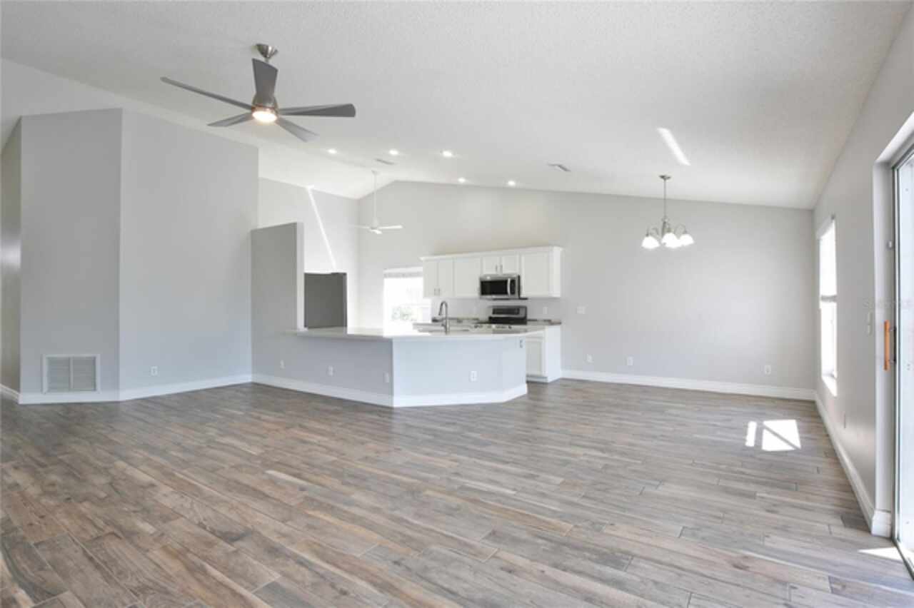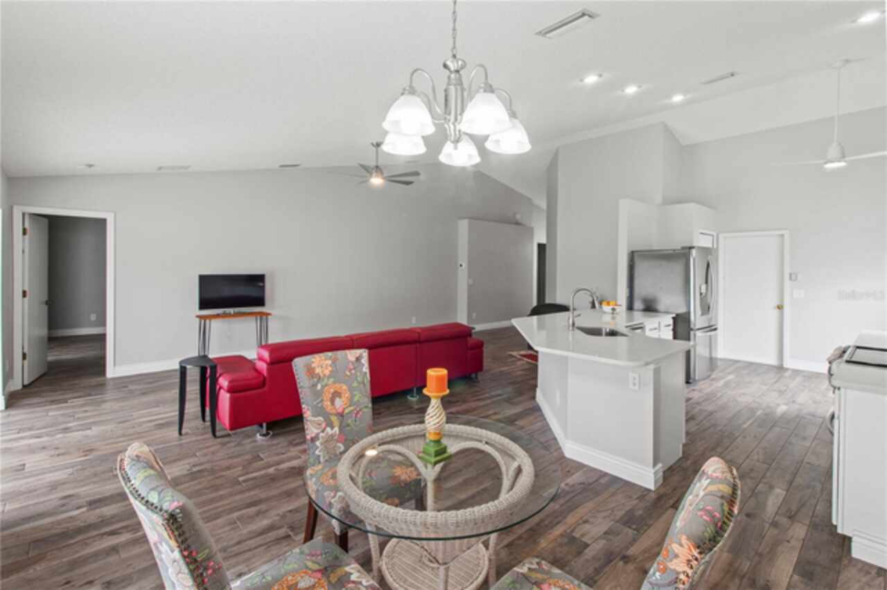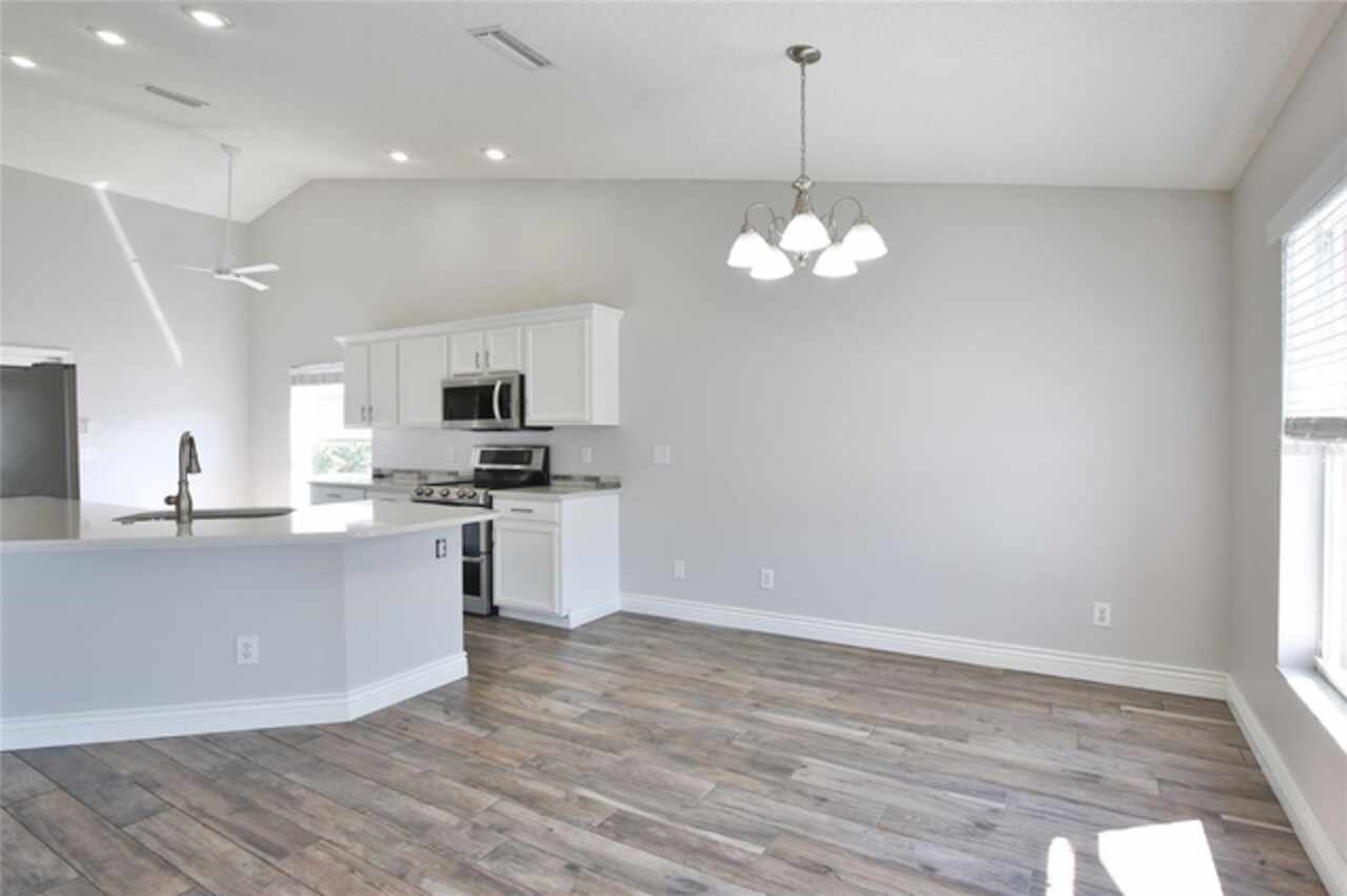 Eat-in Kitchen, Living Room/Dining Room Combo, Open Floorplan, Solid Surface Counters, Split Bedroom, Thermostat, Vaulted Ceiling(s), Walk-In Closet(s)