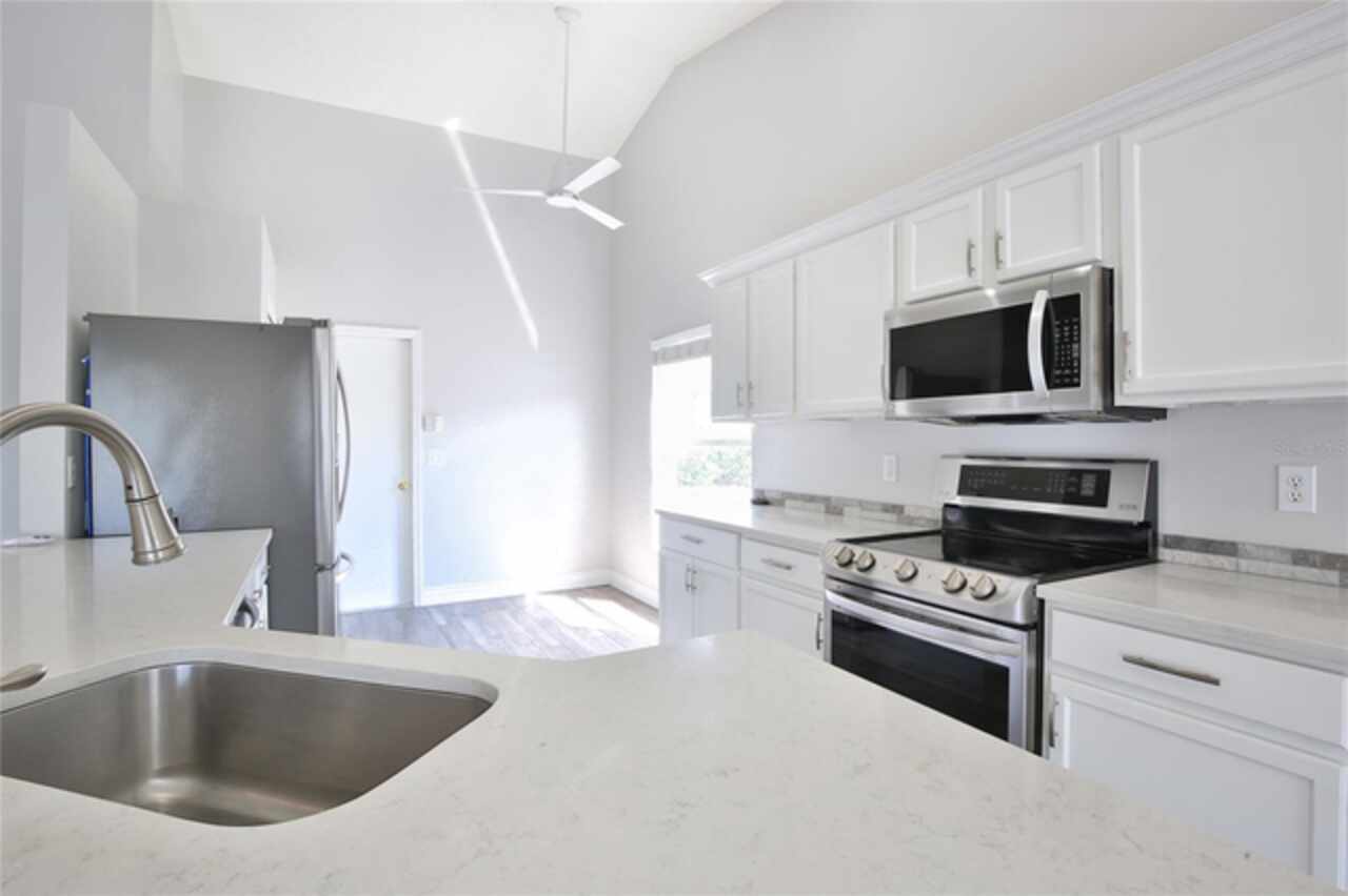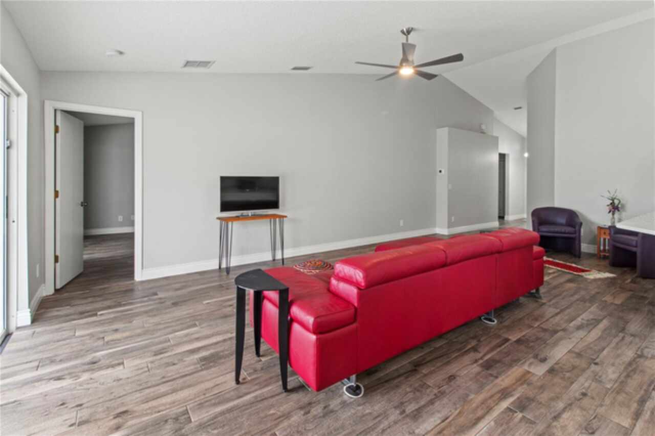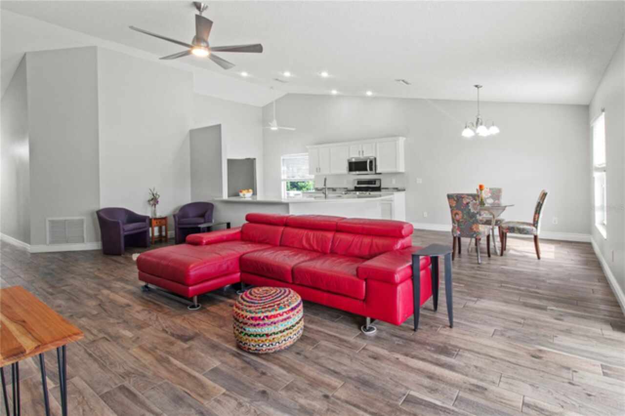 Eat-in Kitchen, Living Room/Dining Room Combo, Open Floorplan, Solid Surface Counters, Split Bedroom, Thermostat, Vaulted Ceiling(s), Walk-In Closet(s)