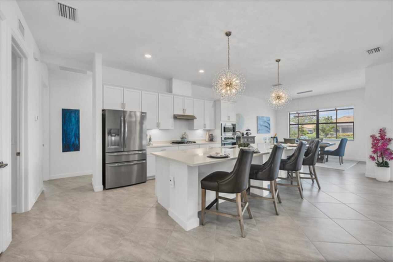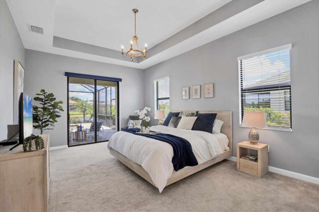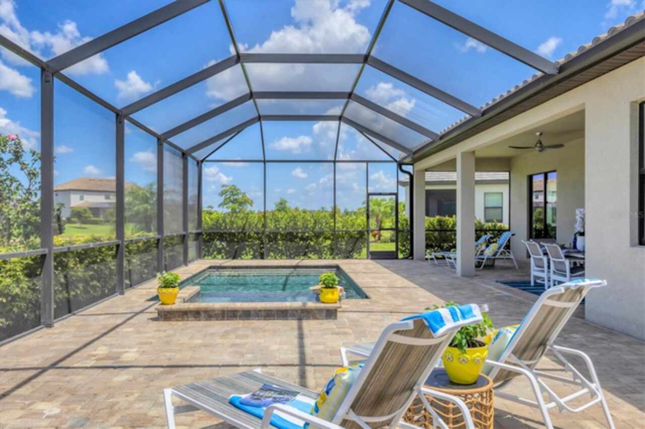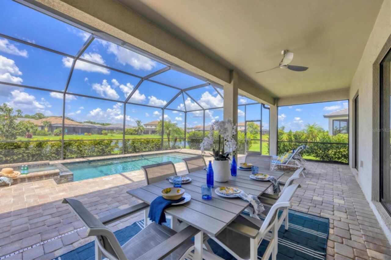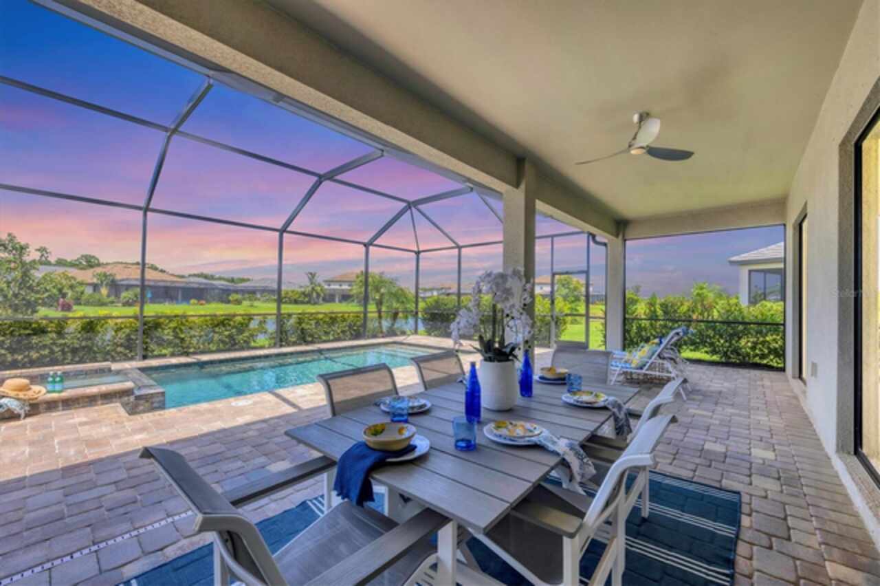 Under contract-accepting backup offers. NEW PRICE, same prestige...just waiting for YOU! Welcome to your Florida dream home, in Lorraine Lakes in Lakewood Ranch, the #1 MASTER PLANNED COMMUNITY IN THE UNITED STATES!!! This Gorgeous LAKEFRONT POOL home has 3-bedrooms, 3-baths, a 3-car garage and 2, 650 square feet of gracious living space on an OVERSIZED LOT. Inside, you’ll love the OPEN FLOOR PLAN with SPLIT BEDROOMS, and spacious kitchen with NATURAL GAS, a huge QUARTZ island and seating for all your guests. Stainless steel appliances, walk-in pantry, large farm sink and upgraded lighting throughout. The gathering room opens to your COVERED AND SCREENED LANAI with your sparkling HEATED POOL and spa, ideal for relaxing or entertaining. The large sliding glass doors allow easy access for that easy indoor/outdoor lifestyle we crave here in Florida. Enjoy extras like MOTORIZED WINDOW SHADES, EPOXY-FINISHED garage floors, a GAS TANKLESS water heater, DUAL CUSTOM BUILT-IN CLOSET SYSTEMS in the Primary Suite, and CUSTOM PAVED DRIVEWAY AND POOL AREA. The office space can be used as flex space for a multitude of things, including a fourth bedroom. In a GATED, MAINTENANCE-FREE community, you'll enjoy RESORT-STYLE amenities like a clubhouse with dining, fitness center, indoor courts, resort pool, lap pool, splash pad, plus pickleball, tennis, basketball, playgrounds and over 150 miles of trails surrounded by stunning lakes. When you want to venture out on the town, a short drive away are options. Tampa, Sarasota (Siesta Key Beach) and St. Armands Circle for finest dining and shopping. Lakewood Ranch downtown and Waterside are minutes away for shops and dining, live music, polo and international events. This is where you want to live, call today for your personal tour or a FaceTime tour.