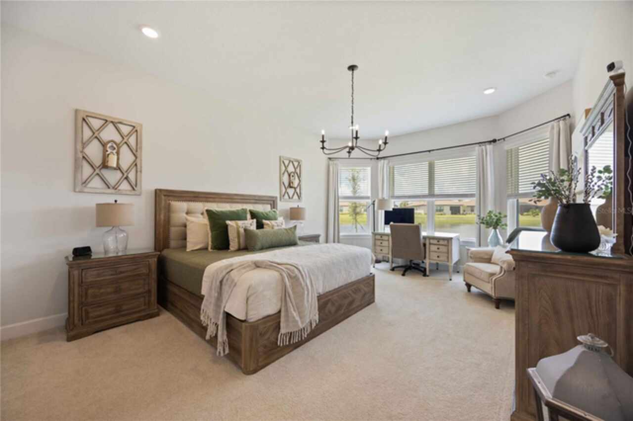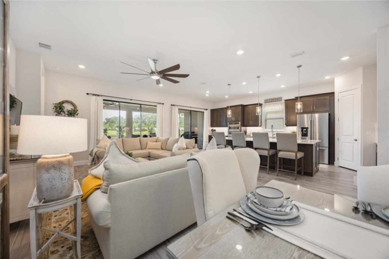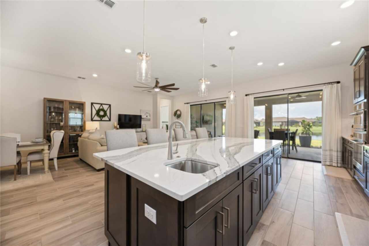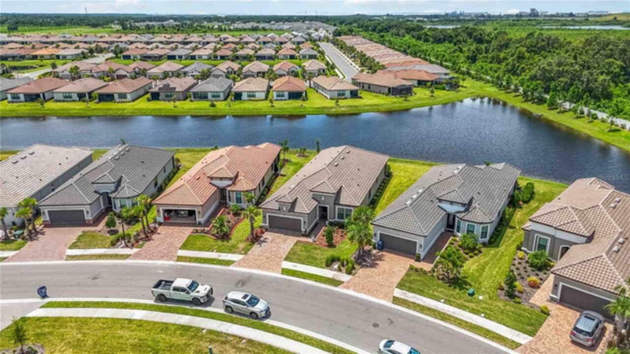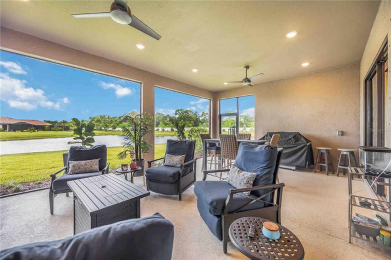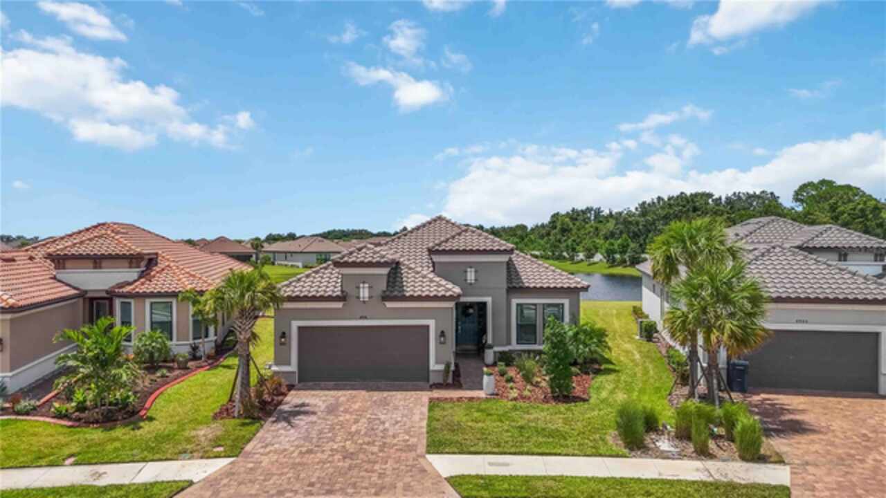 Under contract-accepting backup offers. Welcome to Your Dream Lakeview Retreat Located at 4936 Caserta Court in the prestigious Artisan Lakes Esplanade—a resort-style, maintenance-free gated community in Palmetto, FL—this nearly new 1 year old Lazio model offers the ultimate in luxury living. Nestled on a premium lakefront lot, this residence showcases breathtaking sunset views and is close to the brand-new amenity center and resort pool. Outdoor Living at Its Finest, The extended screened lanai is an entertainer’s dream, complete with an outdoor kitchen hookup and panoramic views of the serene lake. The expansive lot also provides ample space for a future custom pool and spa, with a pie shaped lot that is 75 feet wide in the back. Elegant Interior Features, Step inside to a bright, open-concept floor plan with soaring 10' ceilings, elegant tray details, and 8' doors throughout. Highlights include: 3 Bedrooms + Den/Office, 3 Full Bathrooms. Luxury wood-look plank tile flooring Two sets of sliding glass doors for abundant natural light. Chef’s Gourmet Kitchen, Designed for the culinary enthusiast with Café stainless steel appliances, 42” upper cabinets, extended island cabinetry, Cambria Quartz countertops, a farmhouse sink + island prep sink, and a gas cooktop for precision cooking. Serene Primary Suite, Retreat to your primary bedroom featuring upgraded bay windows with sweeping lake views. The spa-inspired bathroom offers a seamless glass walk-in shower, dual vanities, and a large walk-in closet for optimal storage. Tandem 3-Car Garage, Perfect for a golf cart, extra vehicle, or additional storage, plus a spacious laundry room with utility sink adds everyday convenience. Hurricane Shutters Included. Live the Esplanade Lifestyle From lush landscaping and scenic lakes to high-end amenities and a vibrant social calendar, Artisan Lakes Esplanade offers a lifestyle like no other—designed for those who appreciate elegance, comfort, and convenience. With easy access to I-75, you're just a short drive from the Gulf of Mexico beaches, shopping, dining, and Tampa, St. Petersburg, Bradenton, and Sarasota. Experience the perfect blend of luxury and location in this pet-friendly oasis. Living in the HOA maintained community, Artisan Lakes at Esplanade means indulging in an array of amenities, including a state-of-the-art fitness center, tennis courts, pickleball courts, bocce ball, a resort-style pool with cabanas, a hot tub, and a resistance pool. Nature lovers will appreciate the walking trails, dog parks, playground, and butterfly garden. The HOA provides cable TV, internet service, and yard maintenance, ensuring a convenient and enjoyable living experience. No evacuation zone, No flood insurance required, 40 feet elevation. 2 large pools, lap swim lanes, spa, resistance pool, pickleball, tennis, bocce, shuffleboard, full fitness enter, lots of classes, clubs and events for all interests. Enjoy the best of Florida living and schedule your showing today to make this exquisite home yours. Don't miss out on the chance to immerse yourself in the resort-style living offered by the at Artisan Lakes of Esplanade