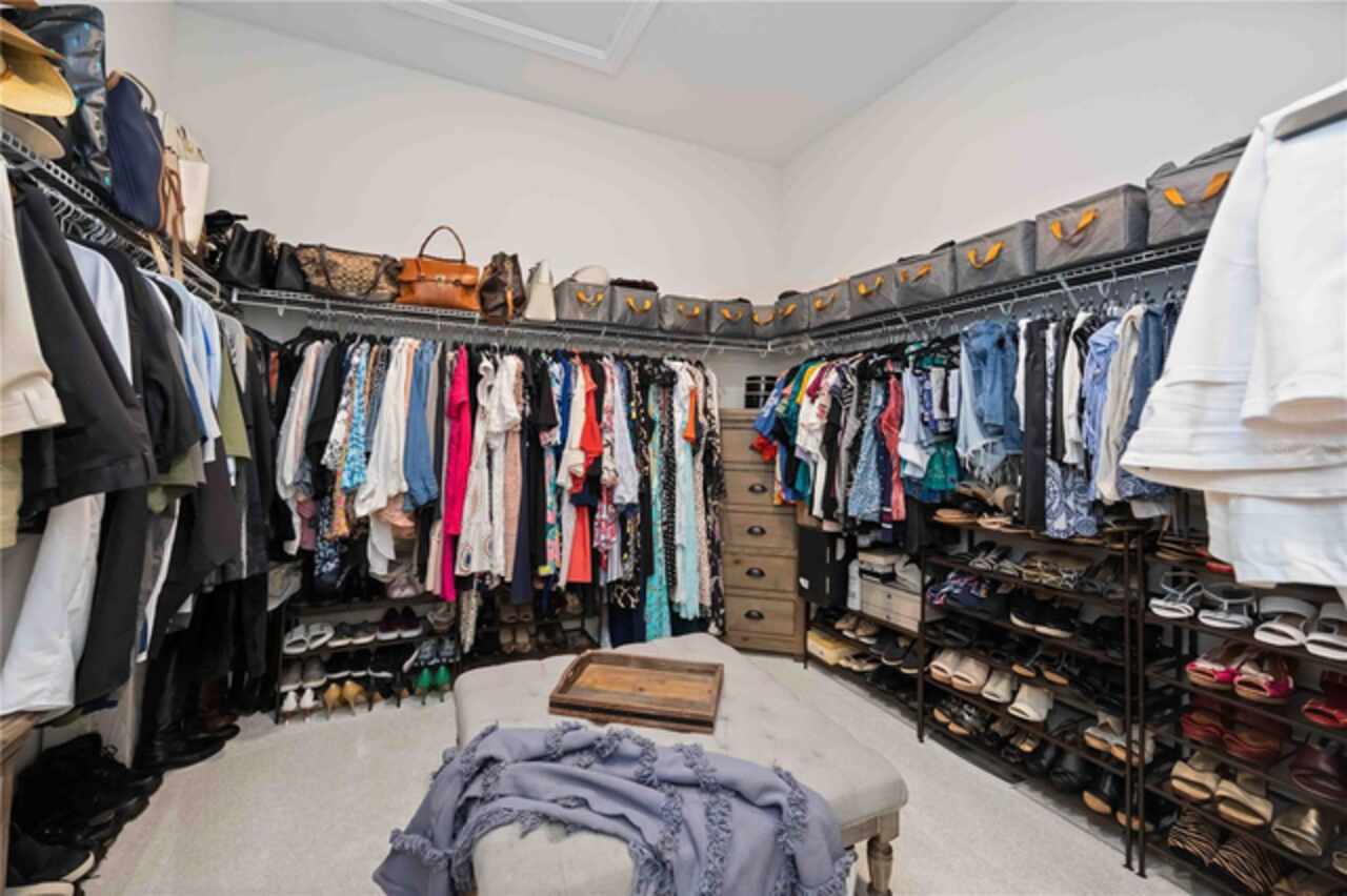Ceiling Fans(s), Crown Molding, Dry Bar, Eat-in Kitchen, High Ceilings, In Wall Pest System, Kitchen/Family Room Combo, Open Floorplan, Primary Bedroom Main Floor, Solid Surface Counters, Walk-In Closet(s), Window Treatments