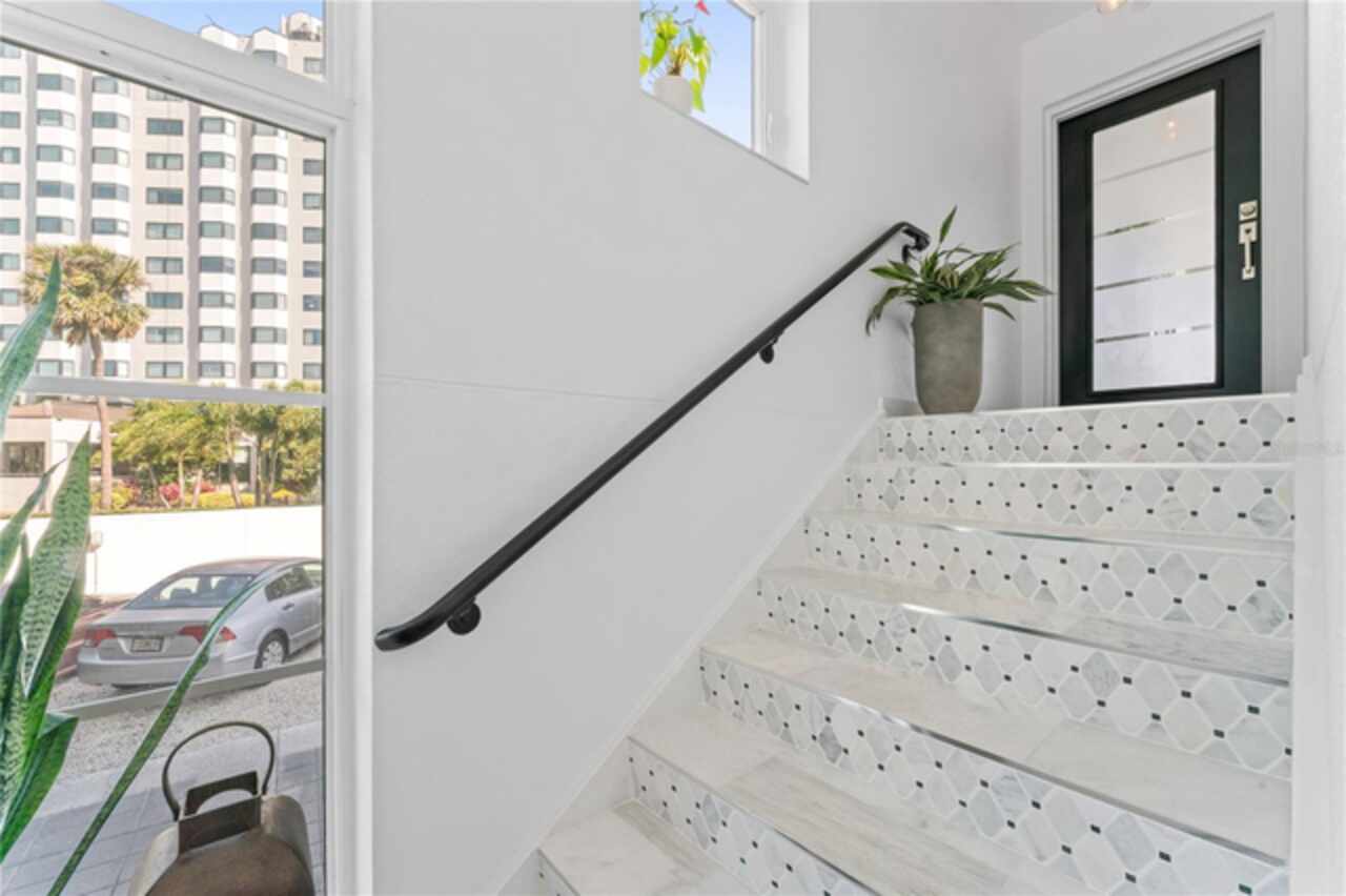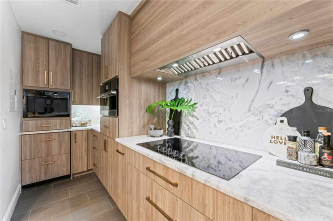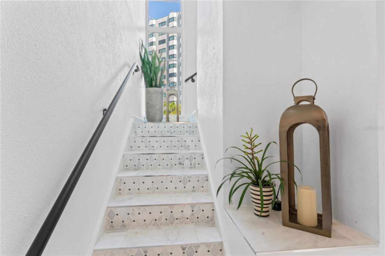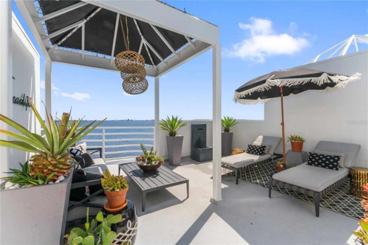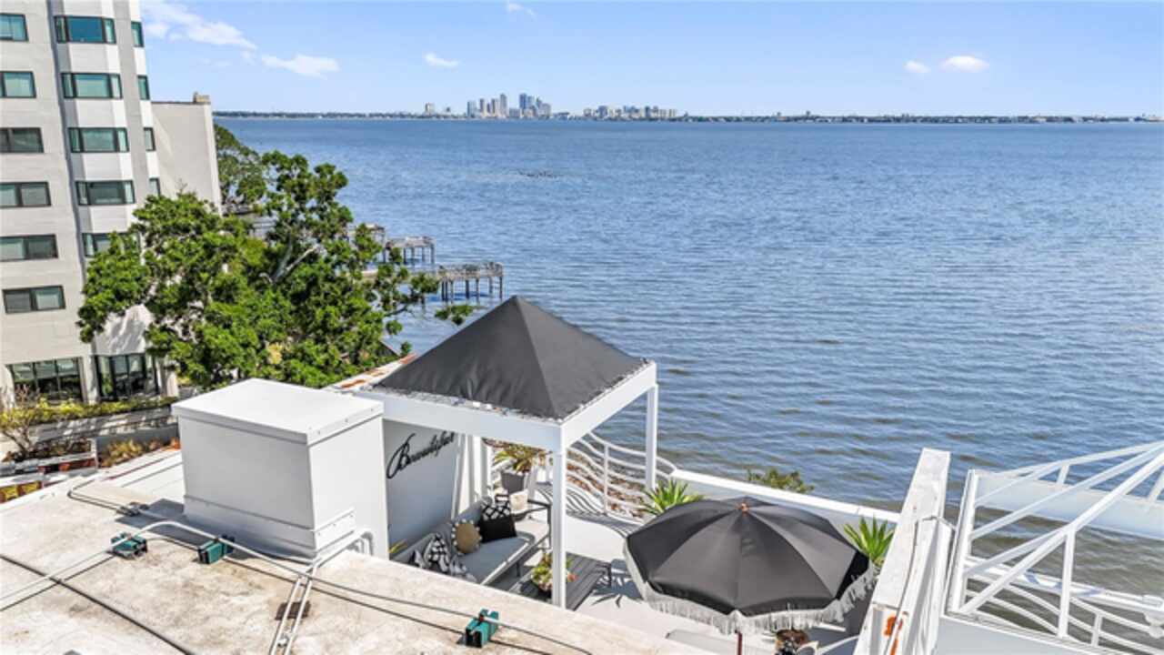 Indulge in the epitome of waterfront luxury living with this fully remodeled condominium townhome, including all new HURRICANE Windows + storm shutters giving you peace of mind and security. This direct waterfront residence redefines opulence, offering a seamless blend of sophistication and tranquility. Wake up to sunrises with breathtaking panoramic views of the glistening water stretching across the horizon with distant sailboats or the city lights reflecting on the tranquil surface of the bay. As you step through the impressive sunken garden courtyard entrance, be greeted with honed marble in the landing and stairway or opt for to take the PRIVATE ELEVATOR. Nearly every room offers floor to ceiling windows creating the uninterrupted connection between the interior and exterior. Every floor, including the two car- secure garage has million dollar views of the bay and city. The gourmet kitchen is a culinary haven, featuring state of the art Jenaire Noir appliances, all with extended warranties, refrigerator drawers , built in espresso/cappuccino bar, custom cabinetry, and an expansive island, comprised of shadow crystal marble. Located on this floor includes an inviting dining space, with unobstructed direct water front views and balcony. Transcend to the sumptuous primary suite, with its own private balcony and unobstructed Bay views. The newly renovated floor to ceiling marble bathroom , is sure to impress, where every detail has been meticulously designed to cater to your desire for comfort and luxury. Adjacent to the primary suite includes a secondary bedroom and bathroom/laundry area , converted to a masterfully designed California closet. The private rooftop terrace nestled above the waters edge providing postcard perfect waterviews and downtown Tampa views. The terrace is adorned with an outdoor pergola providing just the right amount of shade, allowing you to bask in the warmth of the sun during the day or gaze at the starlit sky and sparkling lights of the downtown high-rises in the evening. With million dollar views on every floor, and a prime south Tampa location, this condo offers a lifestyle of luxury. Seize the opportunity to own a piece of architectural magnificence and elevate your living experience to extraordinary heights.
