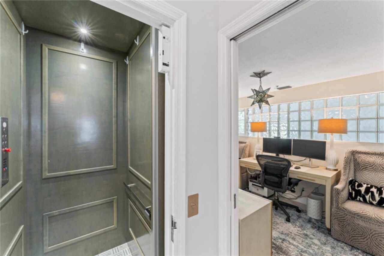 Built-in Features, Ceiling Fans(s), Elevator, PrimaryBedroom Upstairs, Stone Counters, Window Treatments