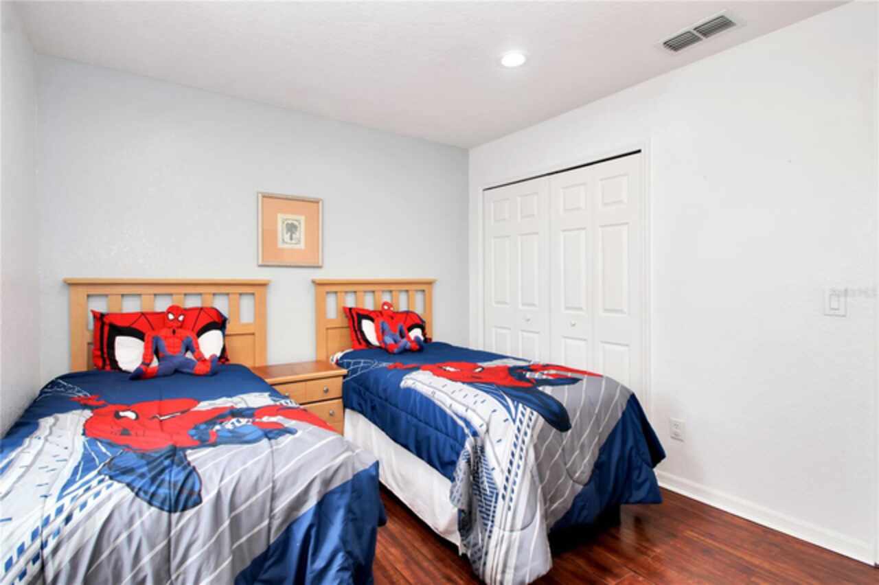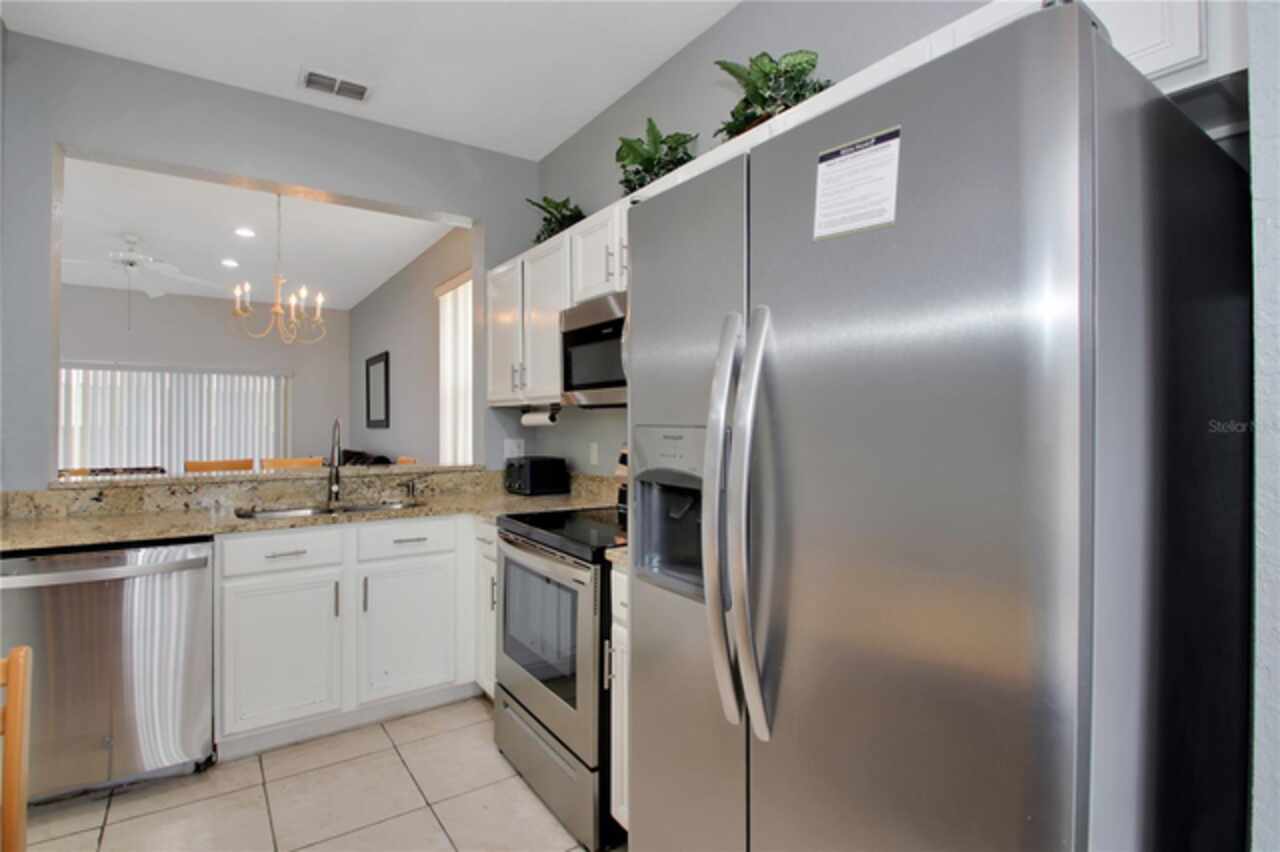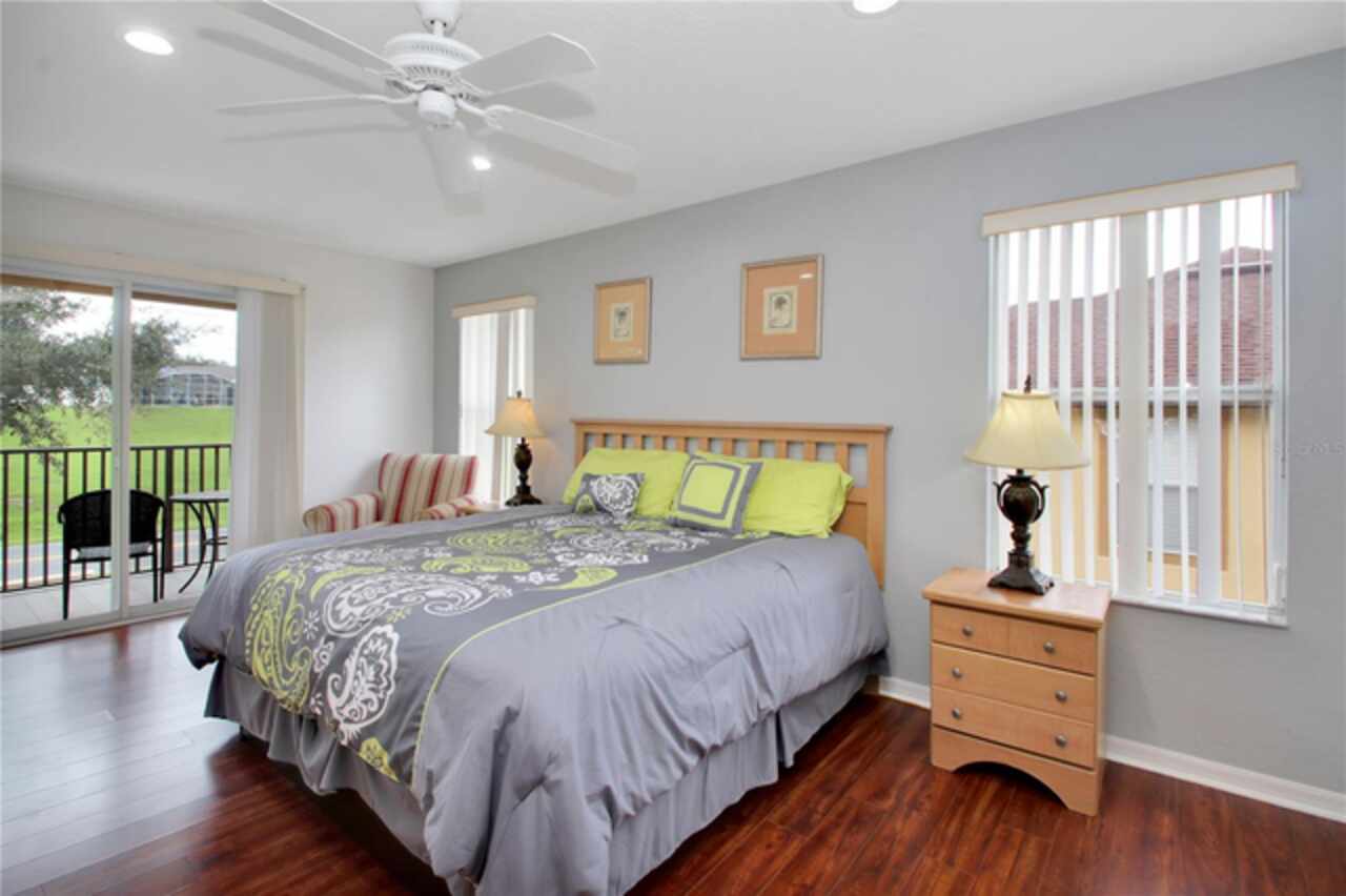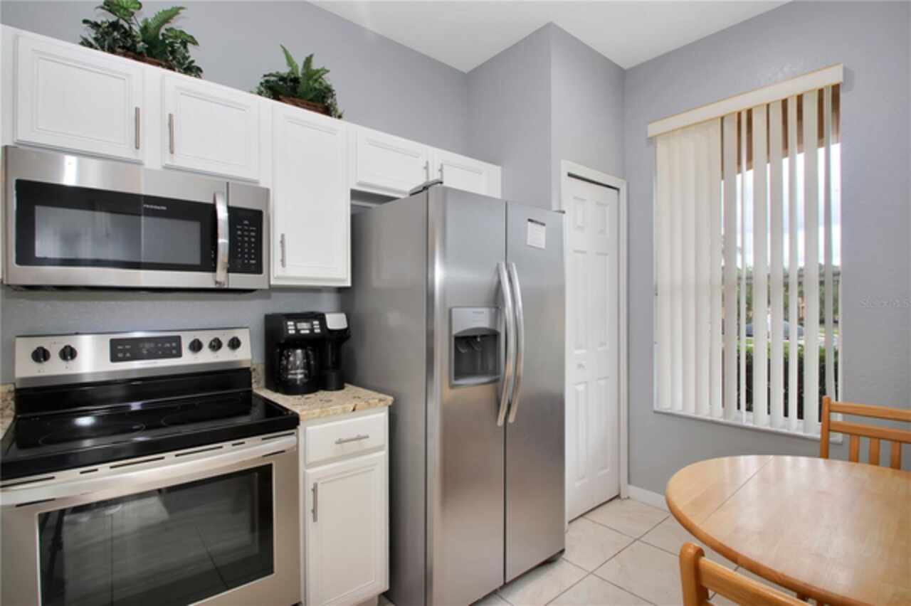 Welcome to Regal Palms Resort! This 4 bed 3.5 bath townhome in this guard gated central Florida short-term rental community is ready for new owners. Just a short drive to Disney and Universal, a great opportunity as a primary residence or vacation residence or income generating rental. New roof 2023, New hot water heater 2024. On the first floor, you have a primary bedroom with en suite bathroom, ktichen, dining room, living room with sliders to the covered patio, and a half bath. Continue upstairs for the second primary bedroom with en suite bathroom and private balcony, two additional bedrooms, a full bathroom and a laundry closet. Regal Palms Resort offers residents and guests access to the community pool with lazy river, restaurant, playground, sand volleyball court, clubhouse, fitness center, game room and more! Located just a few minutes drive to Publix, shopping, dining, restaurants and major highways for quick access to all central Florida has to offer.