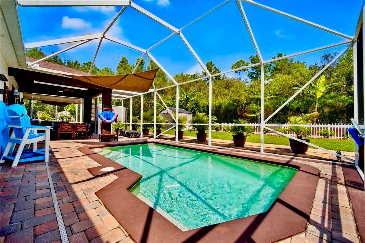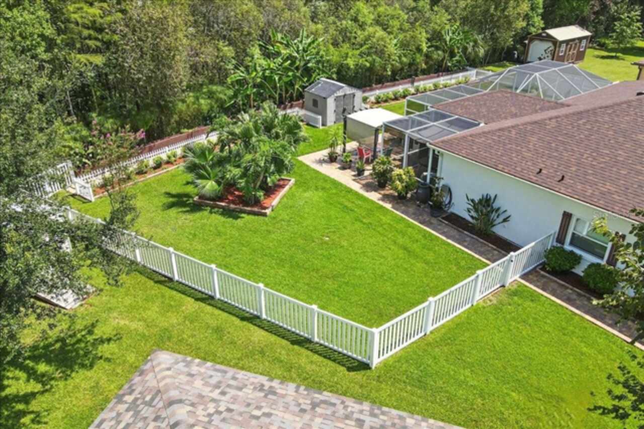 DO YOU CRAVE THE OUTDOOR LIFE!!! CHECK OUT THIS HUGE ALMOST 1, 200 SQ FT SCREENED PATIO/POOL AREA!!! *** PEACE OF MIND *** This Home Comes With A Full Recent Inspection Report (including a 4 point & wind mitigation) AND A 13 Month Full Home & Pool Warranty! Check out these amazing banana trees that beautifully frame this HEATED SALTWATER POOL with JACUZZI Home, offering both natural beauty and delicious backyard flavor. From the lush landscaping to the stylish interior and fully outfitted garage, this home truly has it all! Prime Location & Premium Lot Located in Indian Trails on a quiet cul-de-sac Oversized lot backing to a private reserve. Large Private FLEX ROOM/FOURTH BEDROOM in the front of the home. NEED A 4TH BEDROOM? THERE'S A LARGE 15X11 FLEX ROOM. NEW ROOF 2024 Extra-wide brick paver driveway Paver walkways encircling the home Brick-paver framed plant beds, front & back Fully enclosed vinyl fencing (2025) for total privacy Outdoor Oasis Heated saltwater pool & spa Pergola, composite spa deck, and shed—ideal for outdoor entertaining 5-zone sprinkler system + rain barrel system Full gutter system Extravagant front entry and rear French Wooden Imported Doors leading to Your Own Personal Backyard Oasis. Interior Highlights Ikea cabinetry throughout with quartz counters in the kitchen Porcelain tile in all main areas (no carpet!) High ceilings with stylish pendant lighting Stone backsplash in kitchen Dual vanities in the main bath New refrigerator & dryer (2025) Private front office Custom paint inside & out Major Updates & Extras AIR CONDITIONER 2020 WATER HEATER 2021 DOORS & WINDOWS 2021 New garage ceiling storage rack Finished epoxy garage floor Insulated garage door with ventilation system Generator hookup for peace of mind There's even a nice Shed for All Your Equipment! Your Florida Lifestyle Retreat Awaits This home is bursting with upgrades, surrounded by tropical beauty, and anchored by a luxurious heated saltwater pool and spa. Paired with its private reserve backdrop and its own banana grove, you’ll enjoy a true Florida retreat every single day.