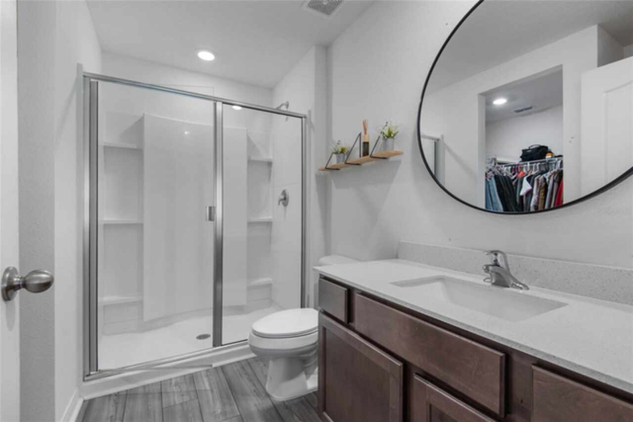 Ceiling Fans(s), Eat-in Kitchen, Kitchen/Family Room Combo, Living Room/Dining Room Combo, Open Floorplan, Other, Pest Guard System, Solid Surface Counters, Solid Wood Cabinets, Split Bedroom, Thermostat, Walk-In Closet(s)