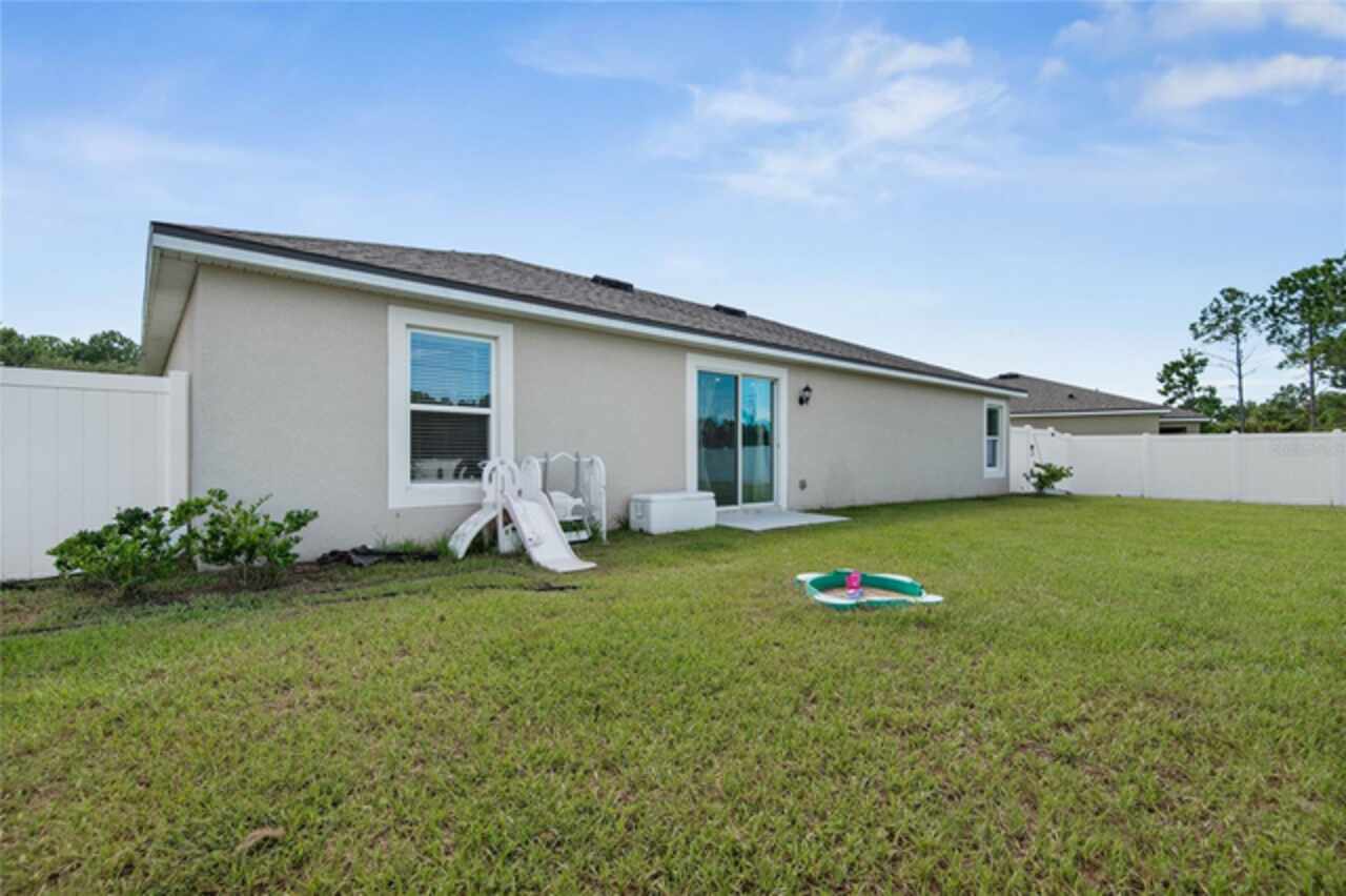 TURN KEY MOVE IN READY! Welcome to this beautifully maintained 2022-built LGI Caladesi model home, located in the desirable Palm Harbor community of Palm Coast, Florida. Situated on large 0.35-acre interior lot, this modern 3-bedroom, 2-bathroom concrete-block home offers the perfect combination of efficiency, comfort, and convenience. Step inside to find 1, 468 square feet of well-designed living space, highlighted by energy-efficient upgrades throughout. The open-concept layout seamlessly connects the living, dining, and kitchen areas—perfect for everyday living and entertaining. A programmable Honeywell touchscreen thermostat allows personalized comfort settings for every day of the week. Every appliance in the home is energy-efficient, helping you save on utilities, and the house is equipped with double-pane Low-E windows, which reduce heat gain and improve insulation. ENERGY STAR-rated LED flush mount lighting enhances every room with long-lasting, eco-friendly illumination. The spacious backyard is fully fenced and features a patio, offering a private outdoor oasis with plenty of room for gardening, play, or future expansion. You'll also enjoy a two-car garage and an extended four-car driveway, providing ample parking for family and guests. Located just minutes from the newly renovated James F. Holland Park, with splash pad and dog park, and close to European Village, shopping, dining, and A+ rated schools. You're also within a short drive of Hammock Beach Resort, Varn Park, Malacompra Beach, and the stunning Washington Oaks State Park. This turnkey, move-in-ready home is nestled on a quiet interior lot in a prime location—ideal for families, retirees, or anyone seeking modern comfort with low-maintenance living in a thriving coastal community.