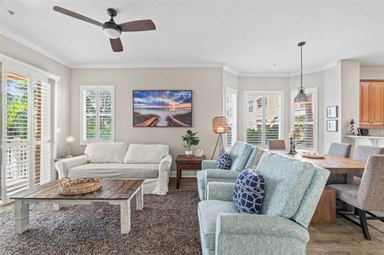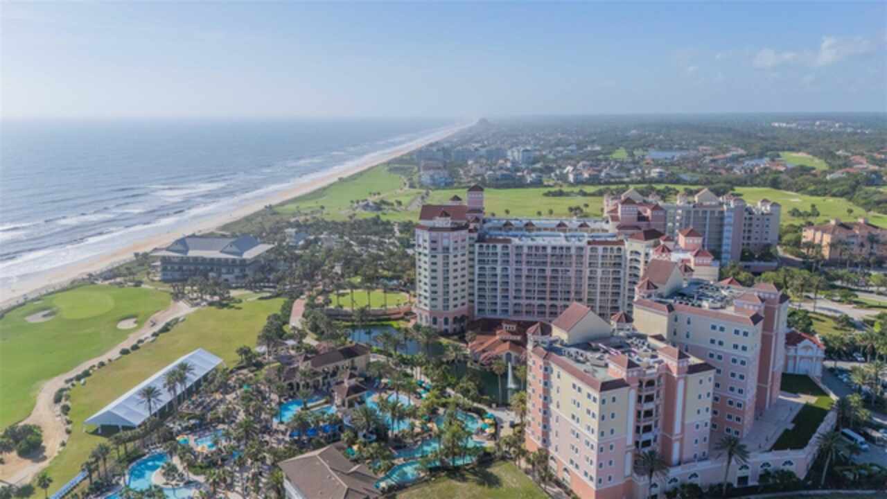 Step into a lifestyle of relaxation, beauty, and effortless comfort in this stunning 3-bedroom, 2-bathroom corner condominium located in the most desirable Villa building at Hammock Beach Resort. From the moment you walk through the elegant entry foyer, you'll feel a sense of welcome that instantly feels like home. Inside, this unit comes fully furnished and features an open-concept design that seamlessly blends a chef's kitchen, a cozy breakfast nook, a spacious living room, and an inviting dining area—perfect for both quiet mornings and lively gatherings. The kitchen features rich 42-inch cabinets, granite countertops, and stainless steel appliances. The dining and living areas are bathed in natural light, creating a space where laughter, connection, and memories take center stage. The private balcony is your own personal retreat—a peaceful space to sip your morning coffee, unwind in the evening air, or simply pause and soak in the tranquil surroundings. The split-bedroom floor plan offers privacy and space for everyone. The primary suite is a true sanctuary, complete with a walk-in shower, a soaking tub for those long, relaxing baths, granite double vanities, and a spacious walk-in closet. Two additional bedrooms and a full bathroom ensure your guests or loved ones feel right at home. You'll also appreciate the full laundry and utility roomtucked away, yet always convenient. This unit is currently enrolled in the Hammock Beach Resort rental program and is booked solid through October 2025meaning the new owner will inherit a stream of income from day one. Resort living is just steps away, with world-class amenities including fine and casual dining, a luxurious spa, state-of-the-art fitness center, a water slide, lazy river, and two championship golf courses designed by legends Jack Nicklaus and Tom Watson. Nature lovers will find themselves minutes from pristine state parks, scenic trails, and peaceful marinas. And when it's time to explore, you're just a short drive from the historic charm of St. Augustine or the vibrant energy of Daytona Beach. Whether you're searching for a full-time residence, a luxurious vacation getaway, or a high-performing investment property, this beautiful condominium delivers on every level. Don't miss your chance to own a slice of the Hammock Beach lifestyleschedule your showing today.