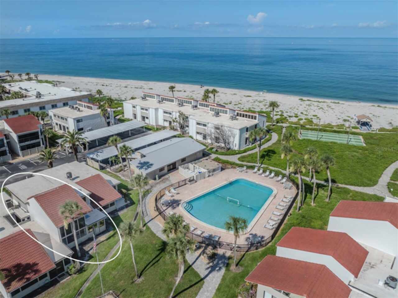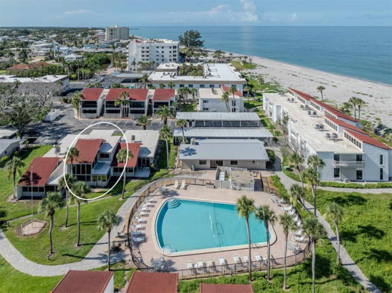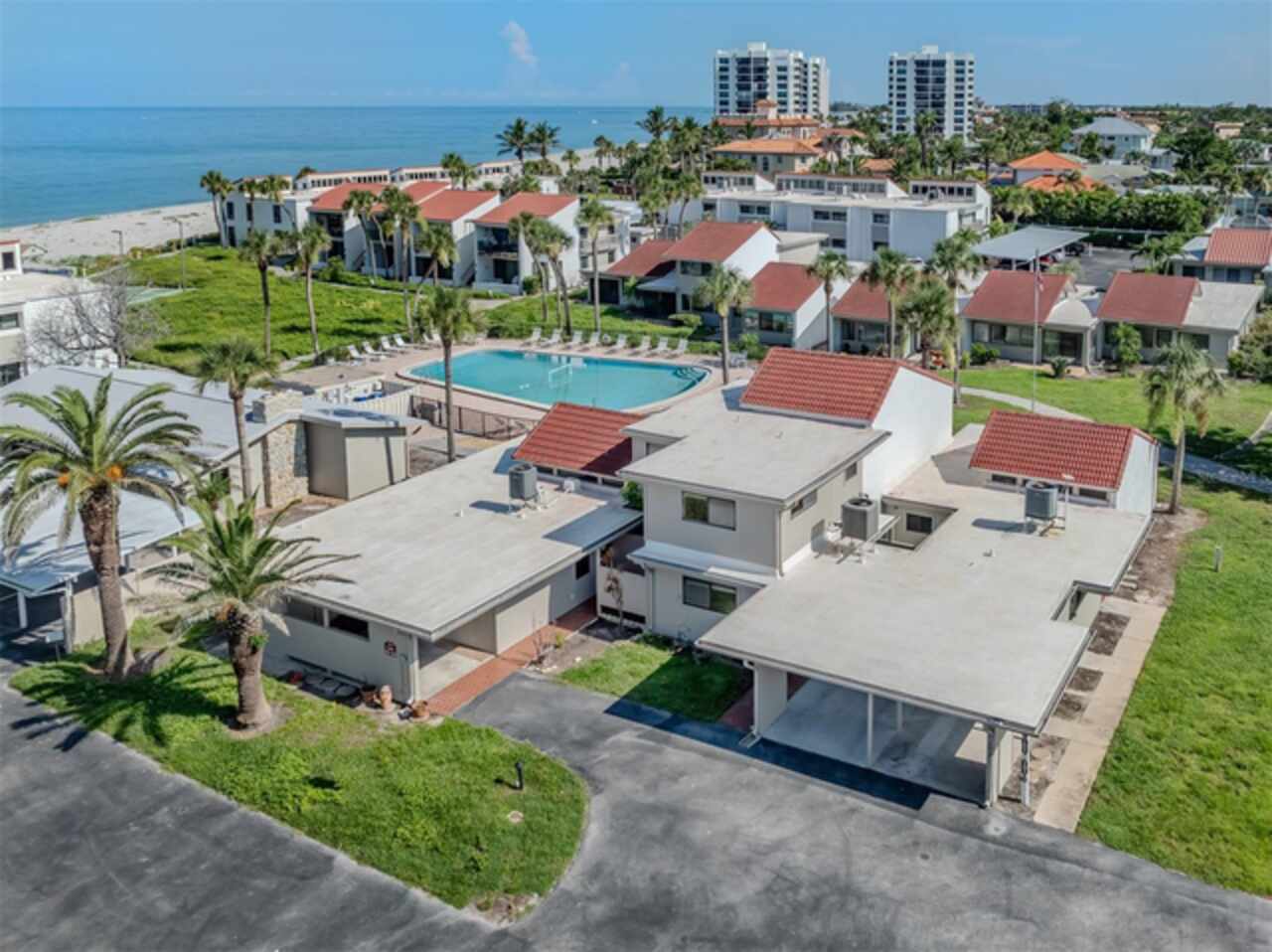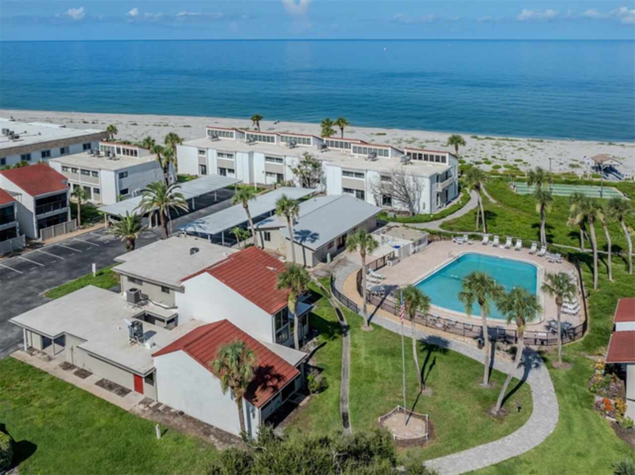 Under contract-accepting backup offers. Welcome to Aldea Mar, a "village by the sea." This unique complex and condominium are at the south end of Venice Beach, a tranquil spot in beautiful Venice. A private entrance with a cute courtyard will always feel like home. Go inside and you are greeted with a special property awaiting your personal touches. This residence has wonderful natural light coming in the expansive windows and a great room to entertain or just relax in. The space has been designed with great flow from room to room. The kitchen flows into the dining room with loads of light and a door leads out to the courtyard and the pool area. Nearby, and you are on Venice Beach; stay awhile, catch an exquisite sunset, or maybe you are lucky enough to watch the playful dolphin put on a water aerobics show as only they can do. This condominium has a different floor plan with a second floor that is a place to end the day, with an office offering views of the beach, the Gulf of Mexico, and the courtyard while you work. Additionally, there are three bedrooms upstairs as well as two baths. Bring your family and friends – room for all. Aldea Mar is just a short distance or bike ride to a wonderful downtown. Explore its array of restaurants, shopping, art festivals, and the Venice Theatre. The sidewalks are still full and fun, a great way to meet new people or just relax. There is always an empty bench to sit on for a while, maybe just take in the unique "City on the Gulf."