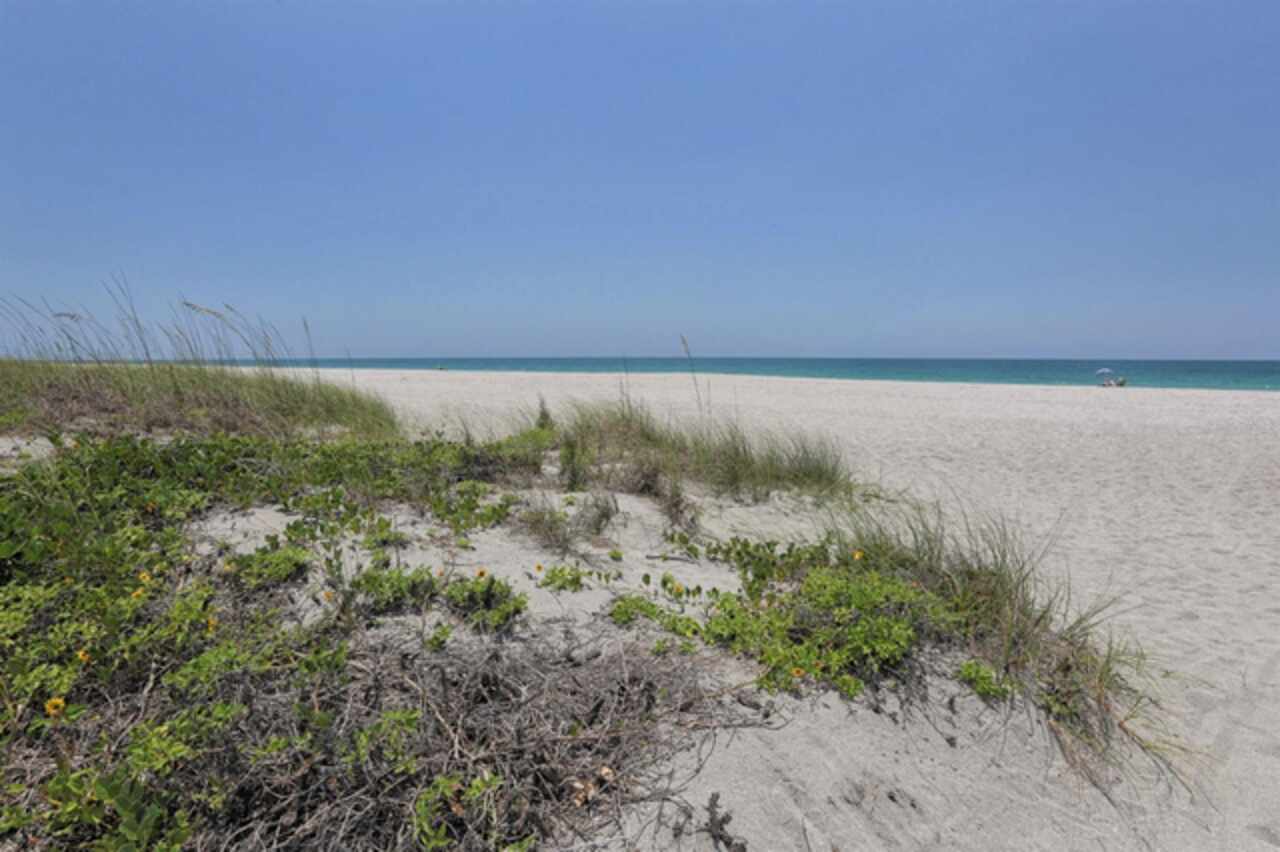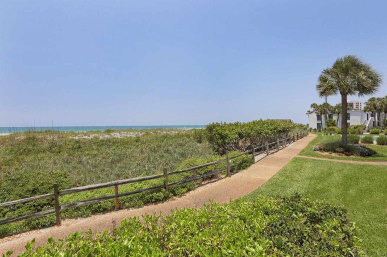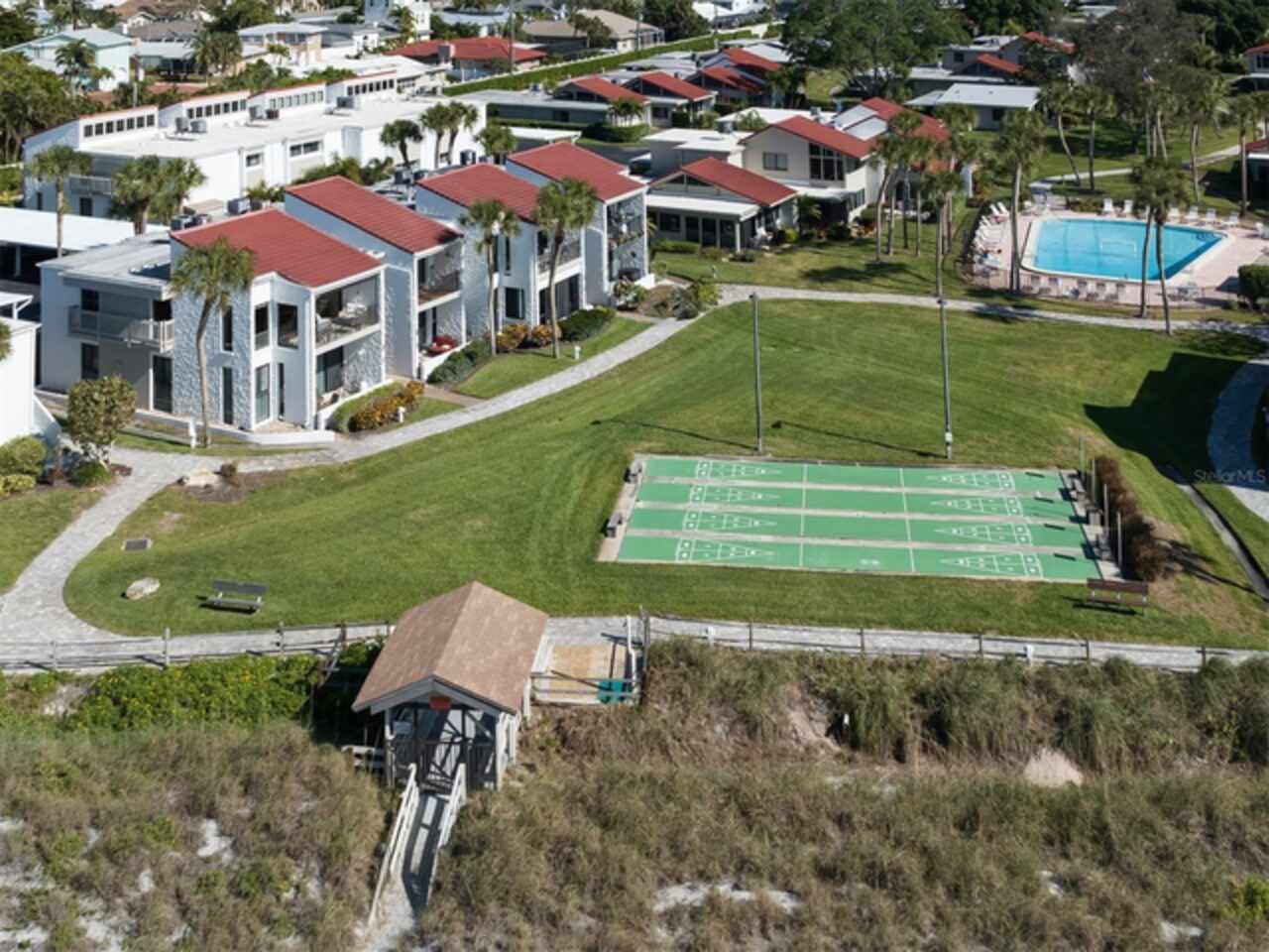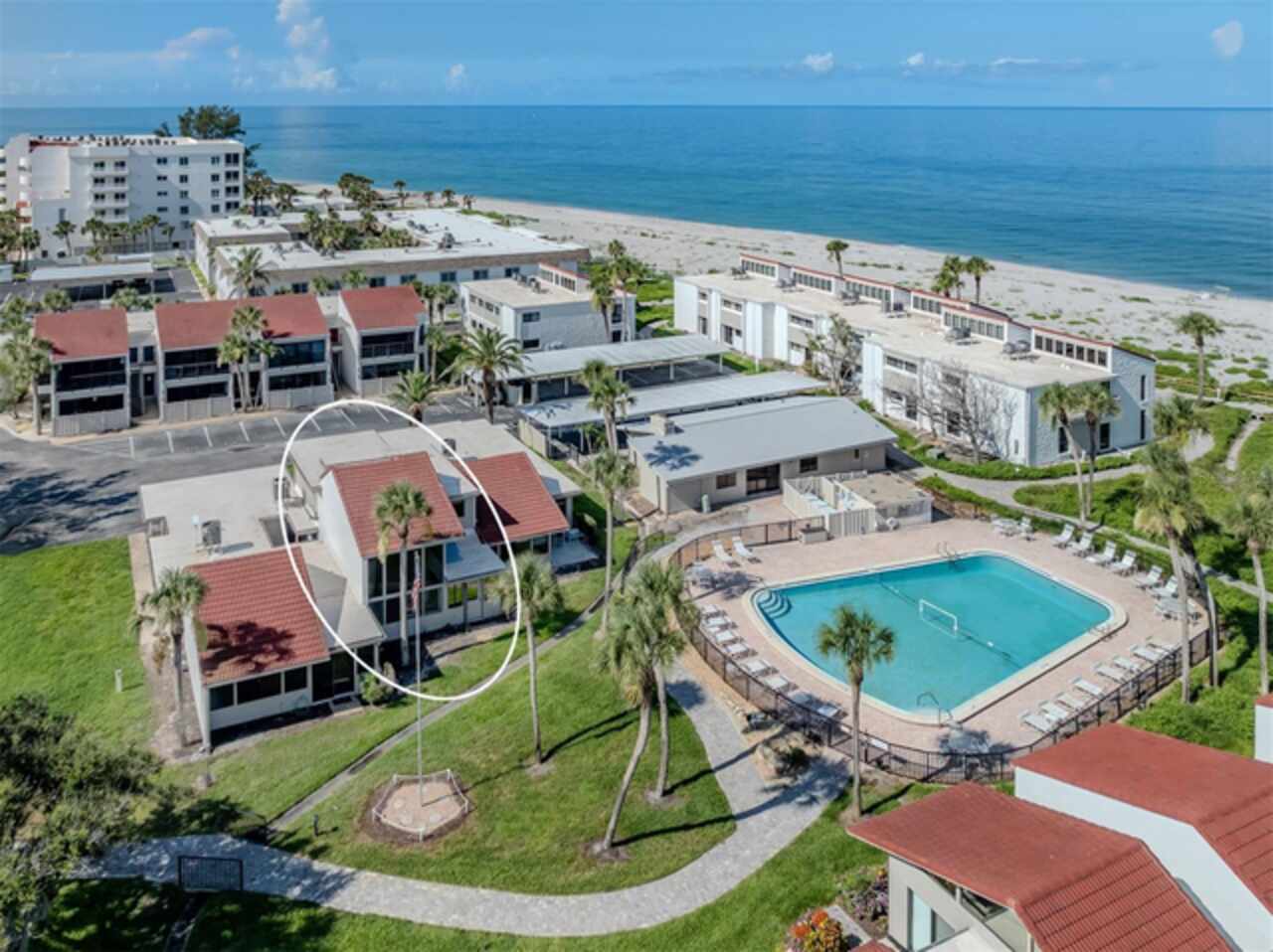 Under contract-accepting backup offers. Welcome to Aldea Mar, a "village by the sea." This unique complex and condominium are at the south end of Venice Beach, a tranquil spot in beautiful Venice. A private entrance with a cute courtyard will always feel like home. Go inside and you are greeted with a special property awaiting your personal touches. This residence has wonderful natural light coming in the expansive windows and a great room to entertain or just relax in. The space has been designed with great flow from room to room. The kitchen flows into the dining room with loads of light and a door leads out to the courtyard and the pool area. Nearby, and you are on Venice Beach; stay awhile, catch an exquisite sunset, or maybe you are lucky enough to watch the playful dolphin put on a water aerobics show as only they can do. This condominium has a different floor plan with a second floor that is a place to end the day, with an office offering views of the beach, the Gulf of Mexico, and the courtyard while you work. Additionally, there are three bedrooms upstairs as well as two baths. Bring your family and friends – room for all. Aldea Mar is just a short distance or bike ride to a wonderful downtown. Explore its array of restaurants, shopping, art festivals, and the Venice Theatre. The sidewalks are still full and fun, a great way to meet new people or just relax. There is always an empty bench to sit on for a while, maybe just take in the unique "City on the Gulf."