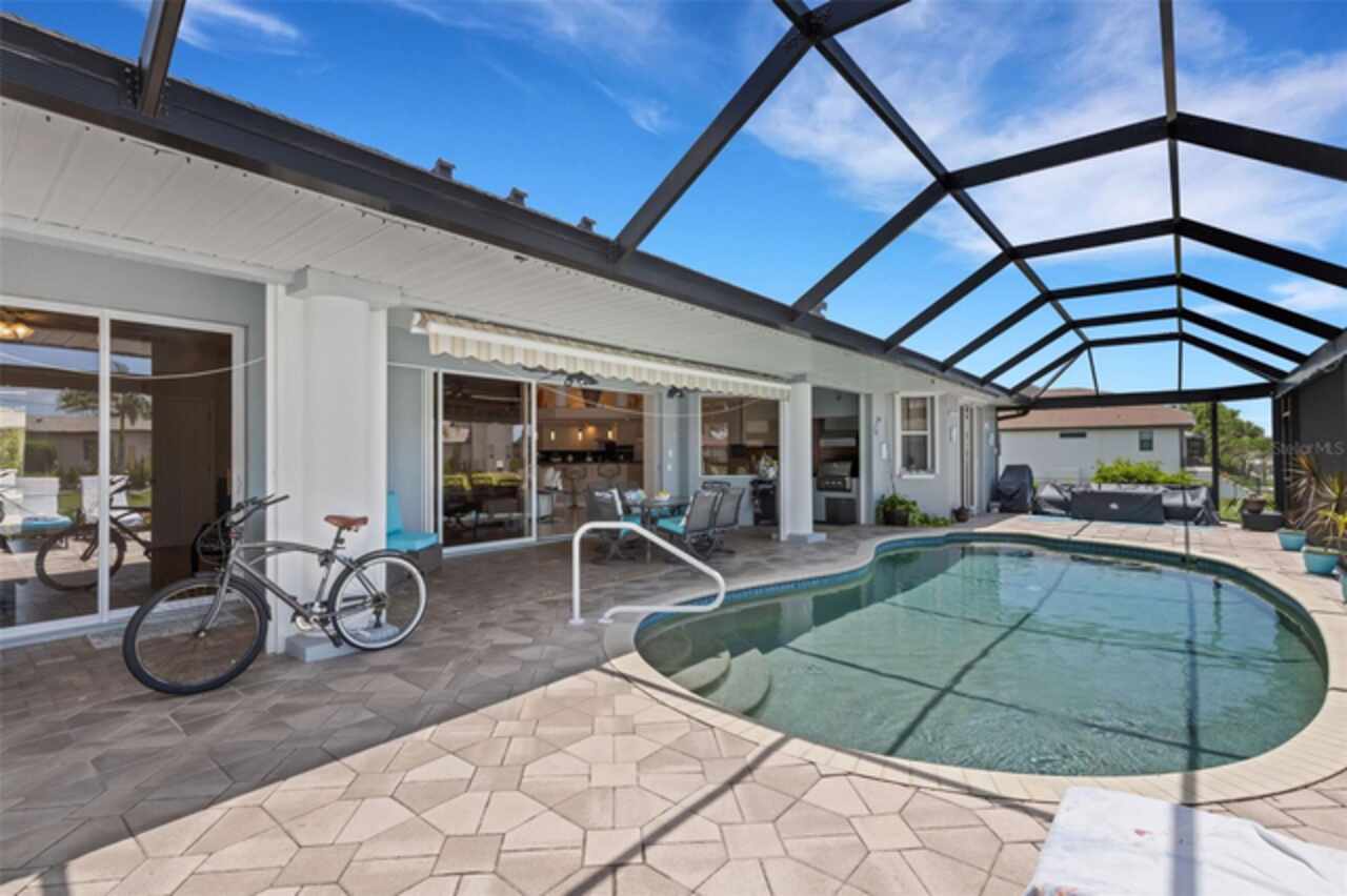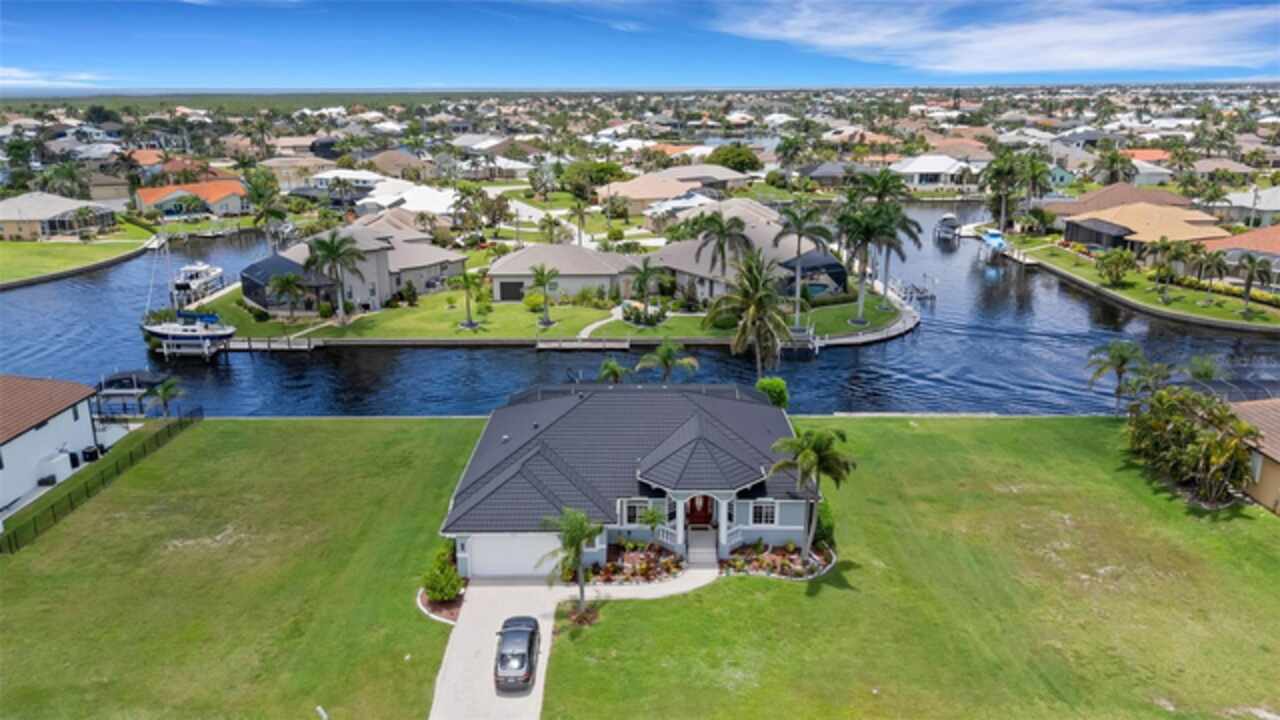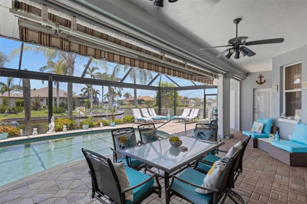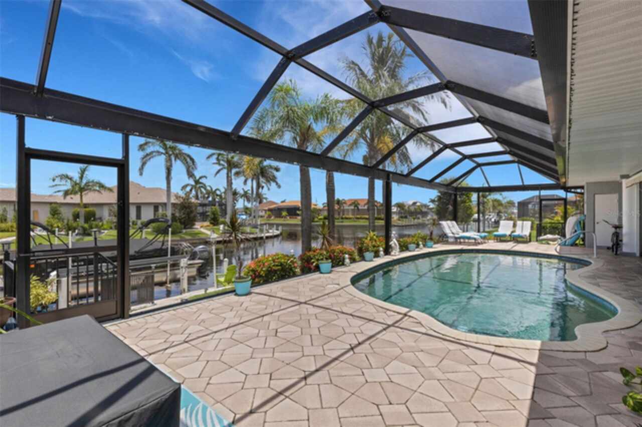 Welcome to this custom-built masterpiece, perfectly situated on a sailboat-access saltwater canal in the highly sought-after Punta Gorda Isles. Only 15 minutes to Charlotte Harbor through Buckley Pass. Boasting 3 spacious bedrooms, 2.5 baths, and 2, 302 square feet of thoughtfully designed living space, and a large heated pool, this home offers the ideal blend of comfort, elegance, and coastal living. NEW metal roof in 2023. NEW A/C in 2021, including fully air conditioned garage. NEWLY painted inside and out. NEW 10, 000 lb boat lift motor. NEW pool heater and pump in 2023. NEW lanai with panoramic screens in 2023. Hurricane shutters are fully automatic. Whole house vacuum. Inside, you'll be captivated by the bright and airy open floor plan, highlighted by soaring ceilings, expansive windows, and abundant natural light. The great room design seamlessly connects to a formal dining area and a chef’s dream kitchen—complete with granite countertops, a breakfast bar, recipe desk, closet pantry, and ample counter space to satisfy even the most discerning culinary enthusiast. The split-bedroom layout provides privacy and convenience. Retreat to the luxurious primary suite, featuring tray ceilings, private access to the lanai, dual walk-in closets, and an elegant ensuite bath with dual vanities, a water closet, soaking tub, and a separate walk-in shower. The generously sized guest bedrooms also have walk-in closets, high ceilings, and ceiling fans for added comfort. Step outside to your private waterfront oasis. The expansive screened lanai, newly built in 2023 with panoramic screens, features over 1, 120 square feet of outdoor living space adorned with brick pavers. Enjoy year-round entertaining with a 335-square-foot covered area that includes an outdoor kitchen, built-in grill, outdoor shower, pool storage, and convenient access to the pool bath. The heated pool is the perfect spot to relax and unwind while taking in the tranquil canal views. Boaters will love the extended 45-foot concrete dock equipped with a brand-new 10, 000 lb boat lift—just steps from your back door. Additional highlights include a two-car garage, energy-efficient AC with a heat recovery system, a state-of-the-art security system, and electric roll-down hurricane shutters for peace of mind. This exceptional property is a true Florida dream—offering luxury, lifestyle, and direct access to Charlotte Harbor and beyond. Don't miss your opportunity to own this waterfront gem!
