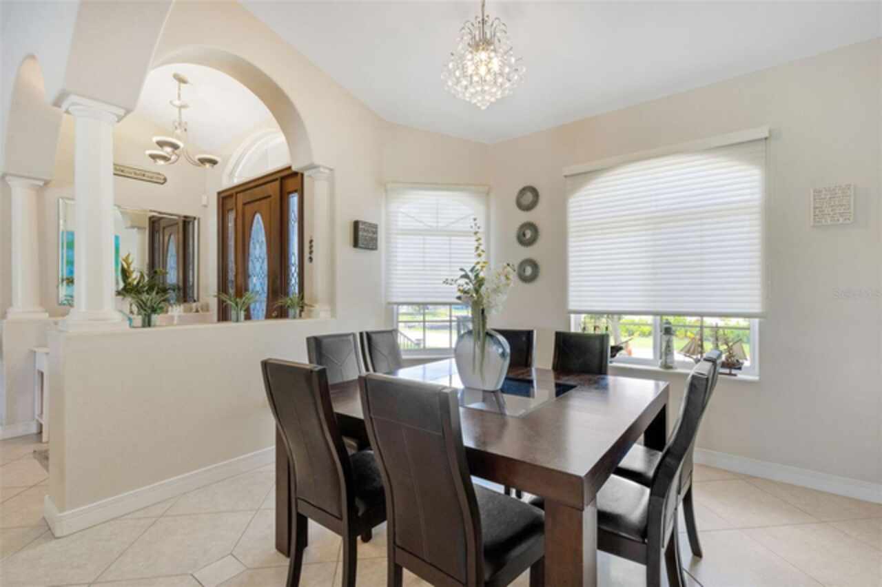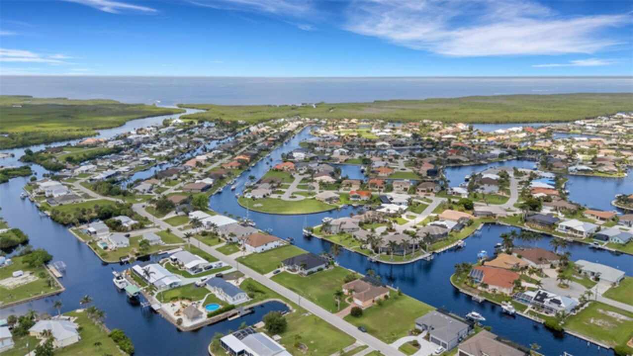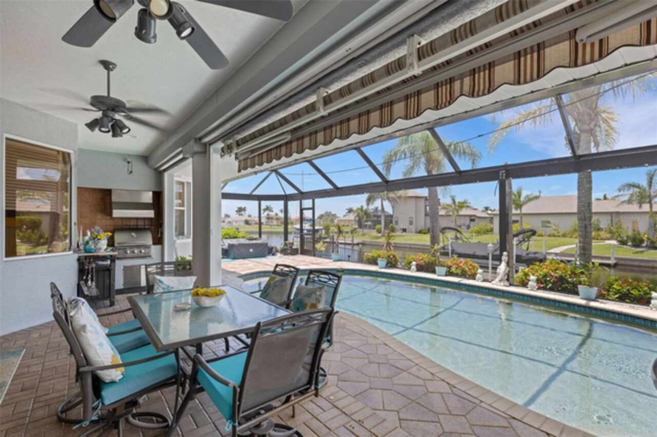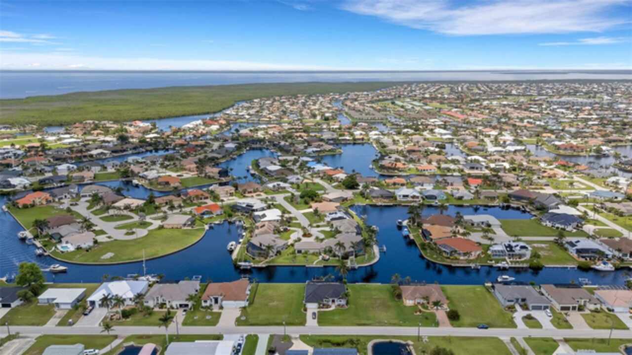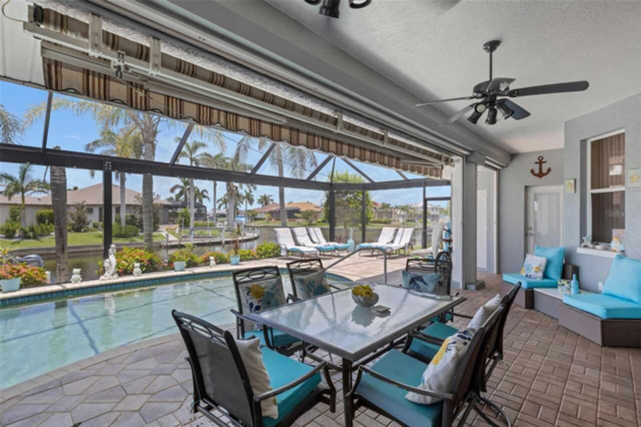 Welcome to this custom-built masterpiece, perfectly situated on a sailboat-access saltwater canal in the highly sought-after Punta Gorda Isles. Only 15 minutes to Charlotte Harbor through Buckley Pass. Boasting 3 spacious bedrooms, 2.5 baths, and 2, 302 square feet of thoughtfully designed living space, and a large heated pool, this home offers the ideal blend of comfort, elegance, and coastal living. NEW metal roof in 2023. NEW A/C in 2021, including fully air conditioned garage. NEWLY painted inside and out. NEW 10, 000 lb boat lift motor. NEW pool heater and pump in 2023. NEW lanai with panoramic screens in 2023. Hurricane shutters are fully automatic. Whole house vacuum. Inside, you'll be captivated by the bright and airy open floor plan, highlighted by soaring ceilings, expansive windows, and abundant natural light. The great room design seamlessly connects to a formal dining area and a chef’s dream kitchen—complete with granite countertops, a breakfast bar, recipe desk, closet pantry, and ample counter space to satisfy even the most discerning culinary enthusiast. The split-bedroom layout provides privacy and convenience. Retreat to the luxurious primary suite, featuring tray ceilings, private access to the lanai, dual walk-in closets, and an elegant ensuite bath with dual vanities, a water closet, soaking tub, and a separate walk-in shower. The generously sized guest bedrooms also have walk-in closets, high ceilings, and ceiling fans for added comfort. Step outside to your private waterfront oasis. The expansive screened lanai, newly built in 2023 with panoramic screens, features over 1, 120 square feet of outdoor living space adorned with brick pavers. Enjoy year-round entertaining with a 335-square-foot covered area that includes an outdoor kitchen, built-in grill, outdoor shower, pool storage, and convenient access to the pool bath. The heated pool is the perfect spot to relax and unwind while taking in the tranquil canal views. Boaters will love the extended 45-foot concrete dock equipped with a brand-new 10, 000 lb boat lift—just steps from your back door. Additional highlights include a two-car garage, energy-efficient AC with a heat recovery system, a state-of-the-art security system, and electric roll-down hurricane shutters for peace of mind. This exceptional property is a true Florida dream—offering luxury, lifestyle, and direct access to Charlotte Harbor and beyond. Don't miss your opportunity to own this waterfront gem!