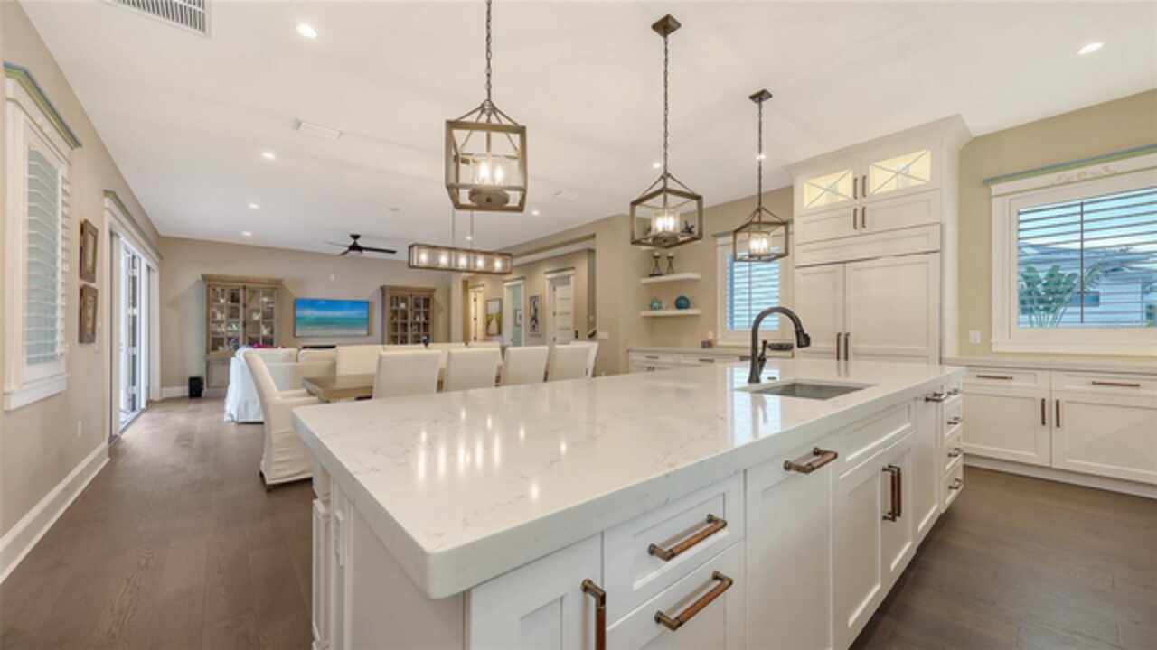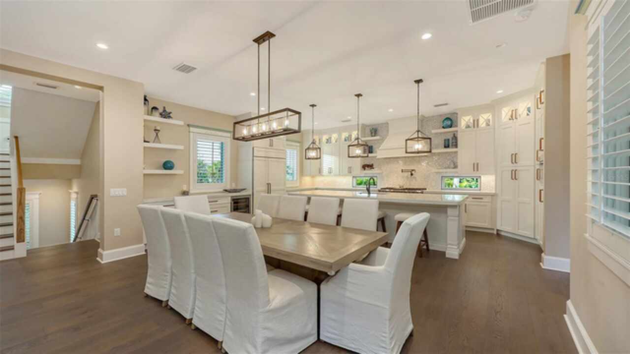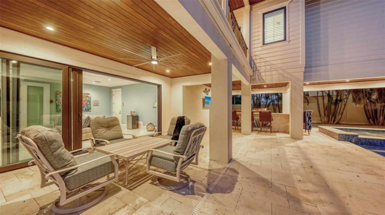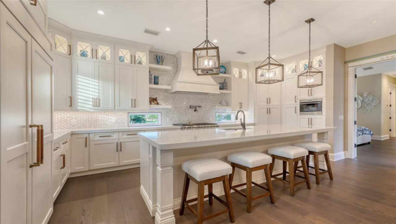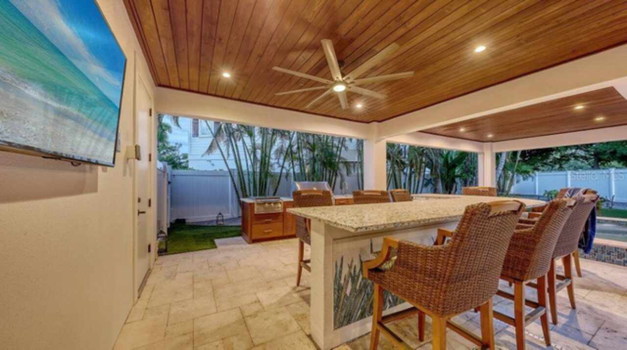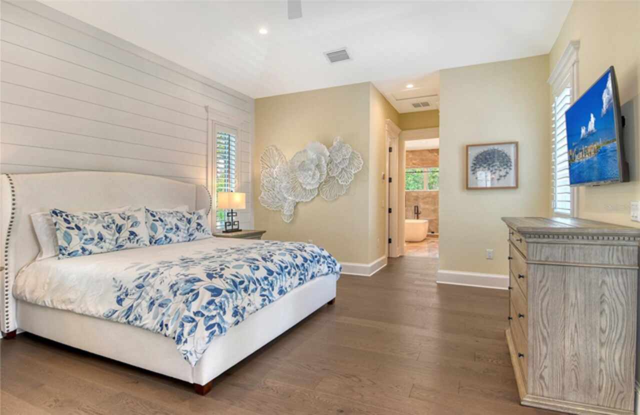 The Quintessence of Coastal Living: A British West Indies Masterpiece on Longboat Key - Where Architecture Meets Paradise. Offered turn-key, this exquisite 4, 000+ sq. ft., 4-bedroom, 4.5-bath residence in Longboat Key’s prestigious Bonaire subdivision is a rare union of refined British West Indies architecture and the serene beauty of Florida’s Gulf Coast. Every inch of this home has been thoughtfully crafted to evoke a sense of effortless luxury—where sun-kissed days and gentle Gulf breezes blur the line between indoors and out. From the moment you step through the grand entrance, you’re embraced by light, texture, and tranquility. Creamy finishes, warm woods, and bespoke millwork elevate every space, while expansive windows and French doors invite in the turquoise glow of the Gulf and the soothing rhythm of coastal life. Main Level Elegance - The heart of the home features an open-concept chef’s kitchen with top-of-the-line appliances: a Wolf 6-burner gas range with custom vent hood, dual Asko dishwashers, Sub-Zero refrigerator/freezer, Wolf convection/microwave, and a 50-bottle wine captain. Quartz countertops, artisan pendant lighting, and a massive island with farmhouse sink make this space as beautiful as it is functional. The adjoining dining and great room flow effortlessly to an expansive balcony - perfect for indoor-outdoor entertaining. The main-floor Primary Suite offers tray ceilings, shiplap accents, dual walk-in closets, and a spa-inspired bath with soaking tub, double-entry stone shower, and sparkling stone vanities. Two additional ensuite guest rooms on this level echo the home’s airy, coastal elegance, and exceptional quality. Upper-Level Retreat - Ascend to a private owner’s sanctuary with dual custom closets and a lavish bath adorned with blue calcite counters, glass mosaic tile, and a freestanding tub. This level includes a substantial private balcony with access to the upper-level viewing balcony. The Observation Deck - Crowning the home is the ultimate vantage point—a “crow’s nest” with panoramic Gulf and Sarasota Bay views. It’s here you’ll end each day watching sunsets paint the horizon in unforgettable color. Resort-Style Outdoor Living - The pool retreat is an absolute showstopper - pocketing sliding doors reveal coral stone terraces, a resort-style pool with sun shelf and tiled cocktail table, a 10-person spa, and a fully equipped outdoor kitchen with seating for eight. The entire area is lined with an automatic insect elimination system to ensure you can enjoy the outdoors all year long. Optical lighting enhances the overflowing water features which seem to dance in the glow of firelight, creating the perfect setting for stargazing or nightcaps. The community provides private beach access and is close to world-class golf, tennis, fine dining, and the largest deep-water marina on the Gulf coast. This is more than a home - it’s a sanctuary, a work of art, and a lifestyle. Delivered exactly as you see it, fully furnished and ready to enjoy, this British West Indies masterpiece awaits the one discerning buyer ready to claim the very best of Longboat Key coastal living.