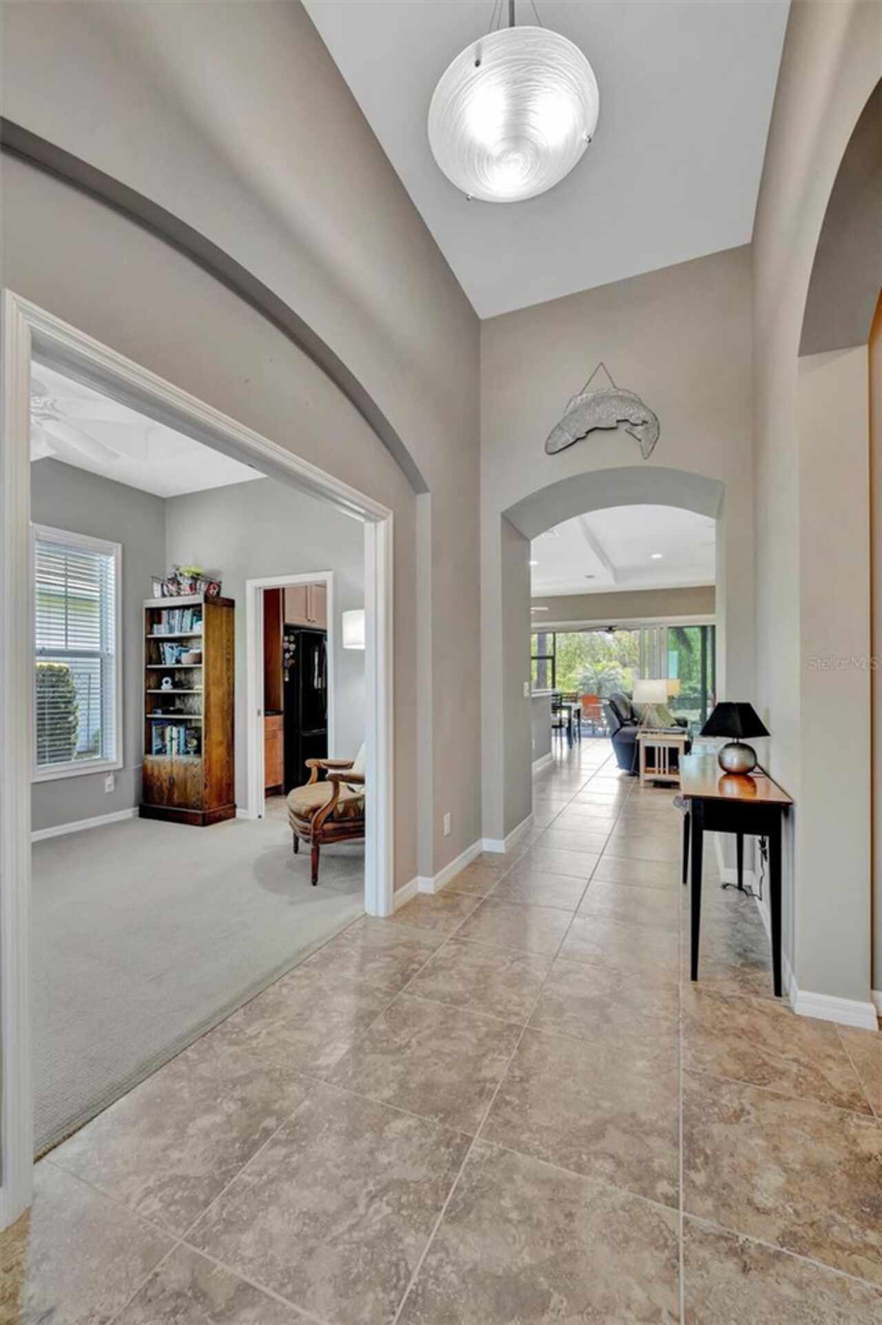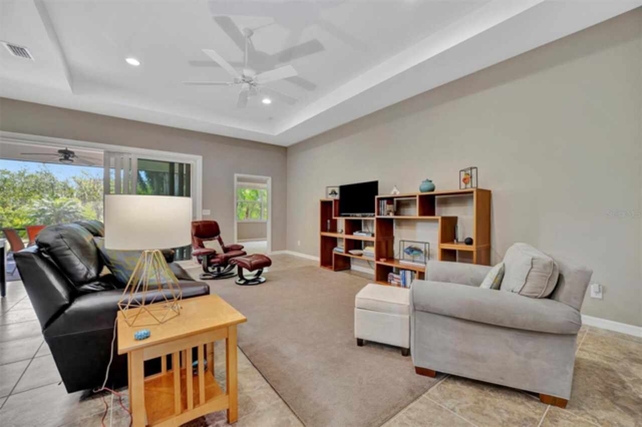 Tour this stunning 3-bedroom plus den, 2-bath, 2-car garage home in Tidewater Preserve—Bradenton’s premier boating community offering direct river access. This beautifully maintained residence comes furnished and features HURRICANE-IMPACT WINDOWS, A WHOLE HOME GENERATOR, tile flooring in the main living areas, and plush carpeting in the bedrooms. Soaring 10+ foot ceilings with elegant tray detailing add a touch of luxury throughout. Just off the entry, a stylish den/home office offers the perfect space to work or relax. The open-concept kitchen is a true highlight, boasting custom wood cabinetry, a stone tile backsplash, granite countertops, and a spacious island featuring a reverse osmosis system and counter bar that opens seamlessly to the great room. Four hurricane-impact sliding glass doors blend indoor and outdoor living—perfect for entertaining. The luxurious primary suite features tray ceilings, two walk-in closets and a spa-inspired en-suite bath. The en-suite bath includes a garden tub, dual vanities, a custom glass-enclosed shower, and a private water closet. For boating enthusiasts, Tidewater Preserve offers a marina with boat lifts, complete with electric and water, providing direct access to the Manatee River. Whether you're cruising to a favorite waterfront restaurant or exploring Anna Maria Island or Egmont Key, the water is your playground. This gated community features 24-hour guard security and a full-time event coordinator. Residents enjoy three resort-style pools, two fitness centers, a clubhouse, tennis courts, riverfront nature trails, a dog park, playground, kayak launch, and a full-service marina. Best of all—there are no CDD fees. An exceptional home in a premier waterfront community—don’t miss your opportunity to make it yours. Excluded from sale are personal items, small bistro table on lanai and master bedroom bedside table lamps.