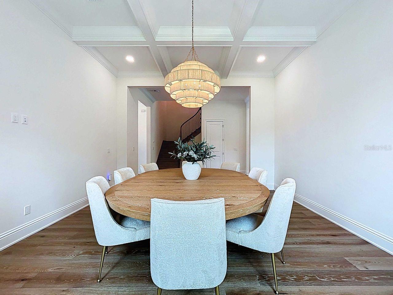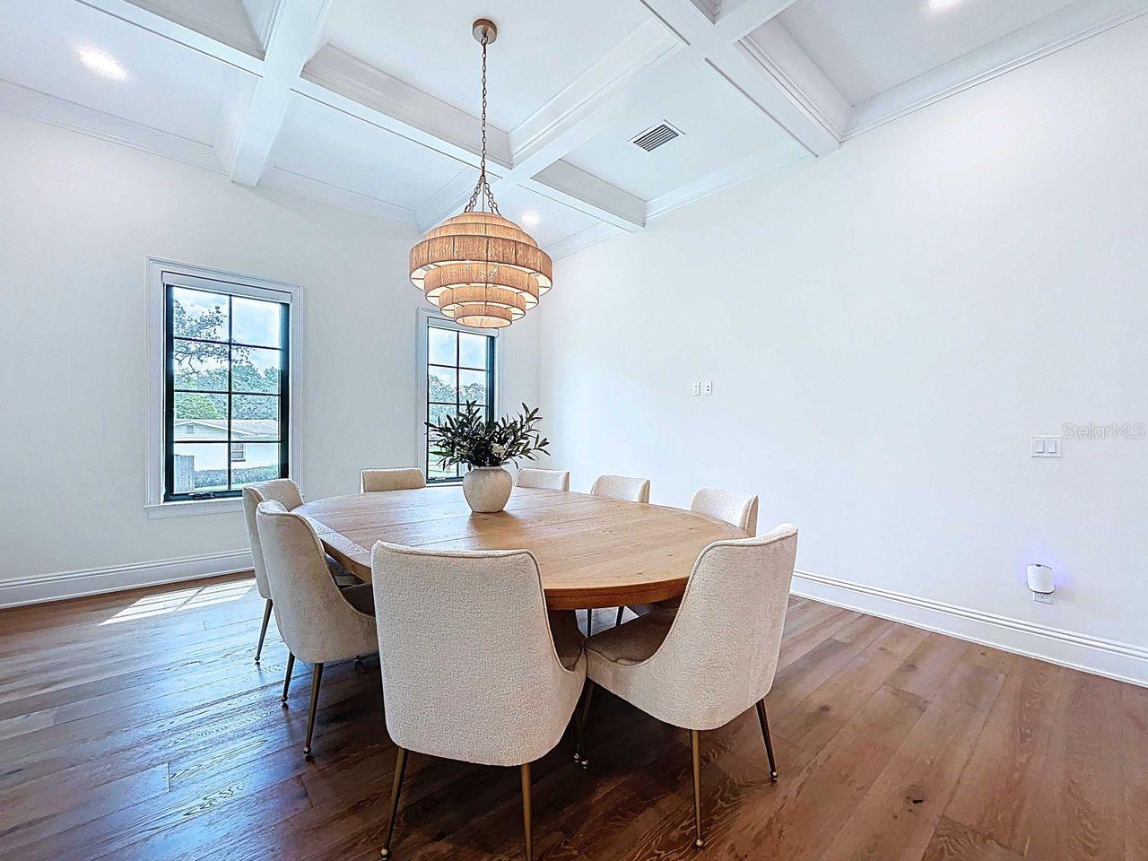 Ceiling Fans(s), Crown Molding, Eat-in Kitchen, High Ceilings, Kitchen/Family Room Combo, Open Floorplan, PrimaryBedroom Upstairs, Solid Surface Counters, Solid Wood Cabinets, Thermostat, Walk-In Closet(s), Window Treatments