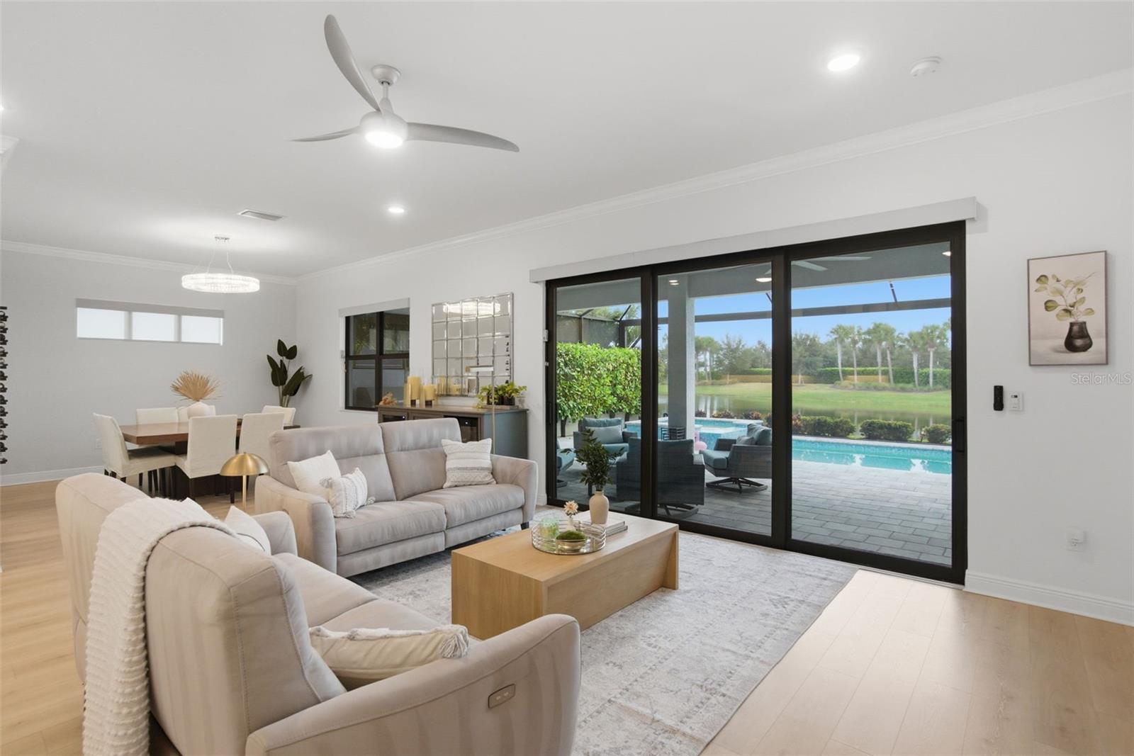 Discover the perfect blend of luxury and comfort in this beautifully designed 4-bedroom pool residence located in the highly sought-after Cresswind 55+ community offering an incredible water view. This home showcases timeless finishes and thoughtful upgrades throughout, creating a lifestyle of effortless sophistication. The open-concept layout features luxury vinyl plank flooring, impact-rated doors and windows, upgraded spray foam insulation, wall built-in pest control and a welcoming foyer accented by a tray ceiling. The gourmet kitchen is a showstopper complete with custom cabinetry, upper display cabinets ideal for fine china or art pieces, and a cleverly designed double-slider door that opens to an oversized pantry. The laundry room includes a custom dog-washing station, along and a top-of-the-line washer and dryer with additional top load pedestal washer for small loads and pull-out storage. Enjoy a versatile floor plan with an office space, an ensuite bedroom with custom built-ins, and a spacious primary suite offering serene water views and a beautifully organized walk-in closet. Upstairs, the second level includes a guest bedroom, full bath, and a generous bonus room, perfect for guests or hobbies. Outdoors, relax on the expansive, fully caged lanai featuring an Ultraview screen enclosure that maximizes the tranquil lake views and lush landscaping. The heated saltwater pool and spa have custom color light displays. The oversized 3-car garage includes a 4-foot extension and built-ins for exceptional storage and workspace. Cresswind’s resort-style amenities redefine active adult living, enjoy resort and resistance pools, the SmartFIT Training Center, pickleball, tennis, bocce, and a full calendar of social events led by a dedicated lifestyle director. Conveniently located near University Town Center (UTC) Mall and Waterside Place, residents can enjoy premier shopping, dining, and entertainment. Lakewood Ranch Medical Center, Premier Sports Campus, and the trails of Summerfield Park are all nearby, while Siesta Key and Lido Beach are just a short drive away. This lakefront gem in Cresswind offers an unmatched blend of beauty, function, and community. Don’t miss your opportunity to live life better in Cresswind at Lakewood Ranch.
