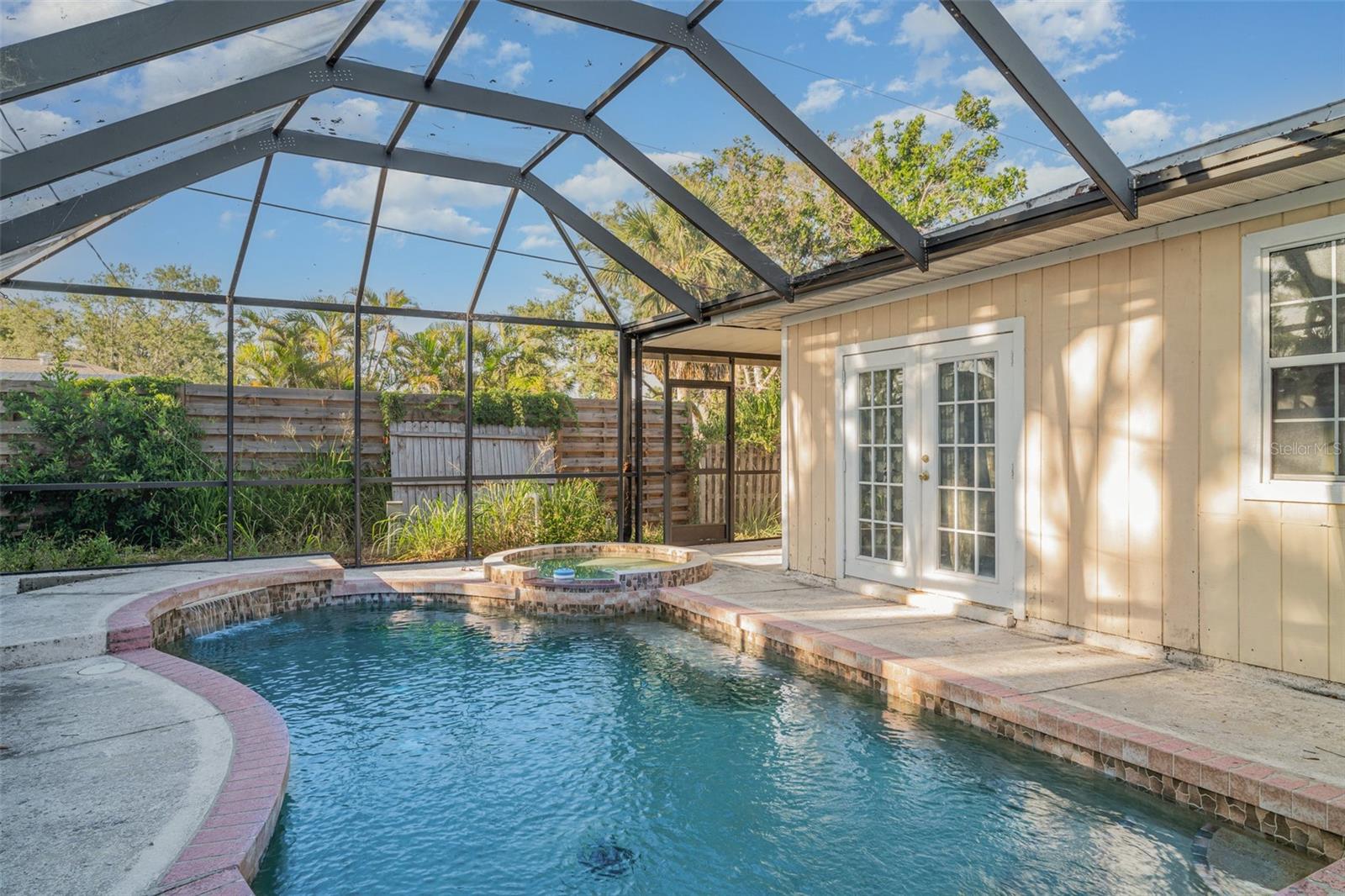 Discover this charming 3-bedroom, 2-bath home in the highly sought-after Casas Bonitas community, where comfort meets peace of mind. Situated 23 feet above sea level with no history of storm damage and no flood insurance required, this well-maintained gem features a new roof, A/C, and water heater—all updated in 2019. Enjoy the Florida lifestyle with a screened-in pool, elegant crown molding throughout, and a desirable split floor plan for added privacy. The home also offers an oversized one-car garage and a fenced yard, perfect for both relaxation and entertaining.