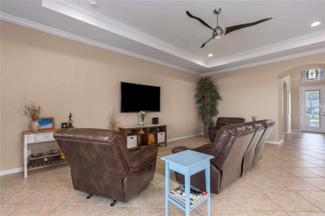 Ceiling Fans(s), Crown Molding, High Ceilings, In Wall Pest System, Kitchen/Family Room Combo, Open Floorplan, Primary Bedroom Main Floor, Split Bedroom, Stone Counters, Thermostat, Tray Ceiling(s), Walk-In Closet(s), Window Treatments