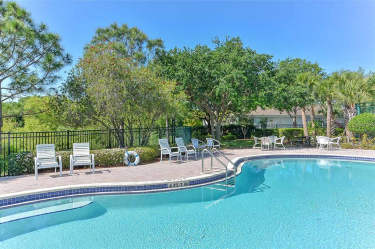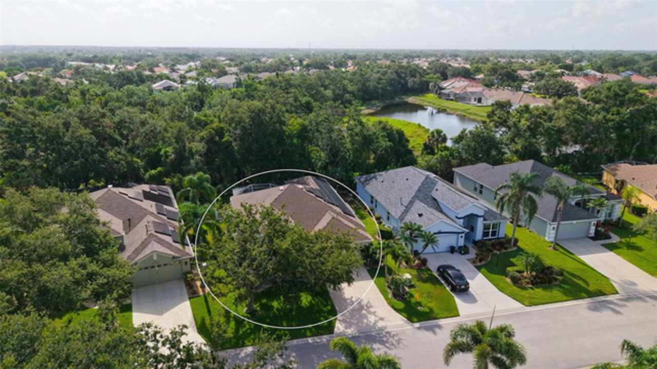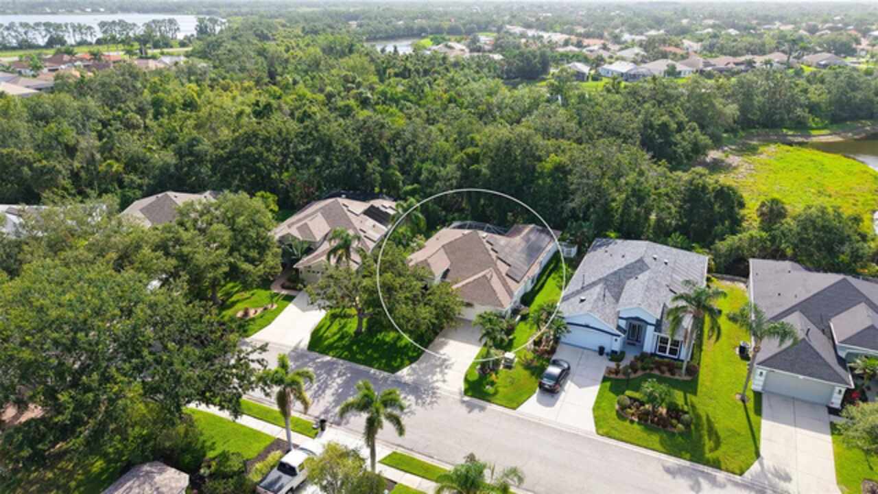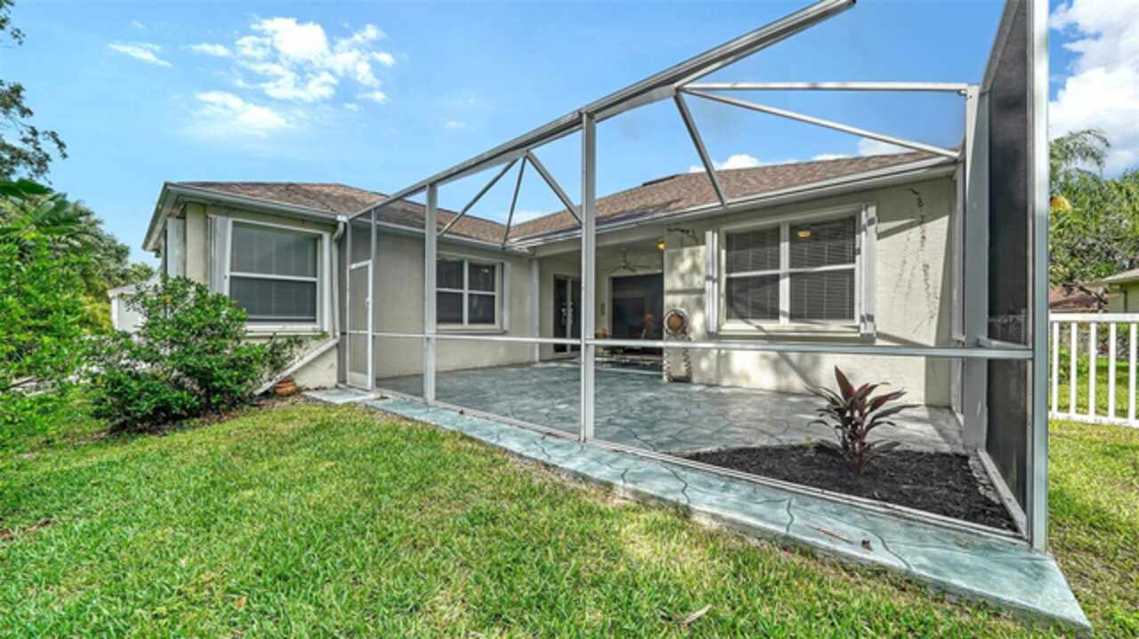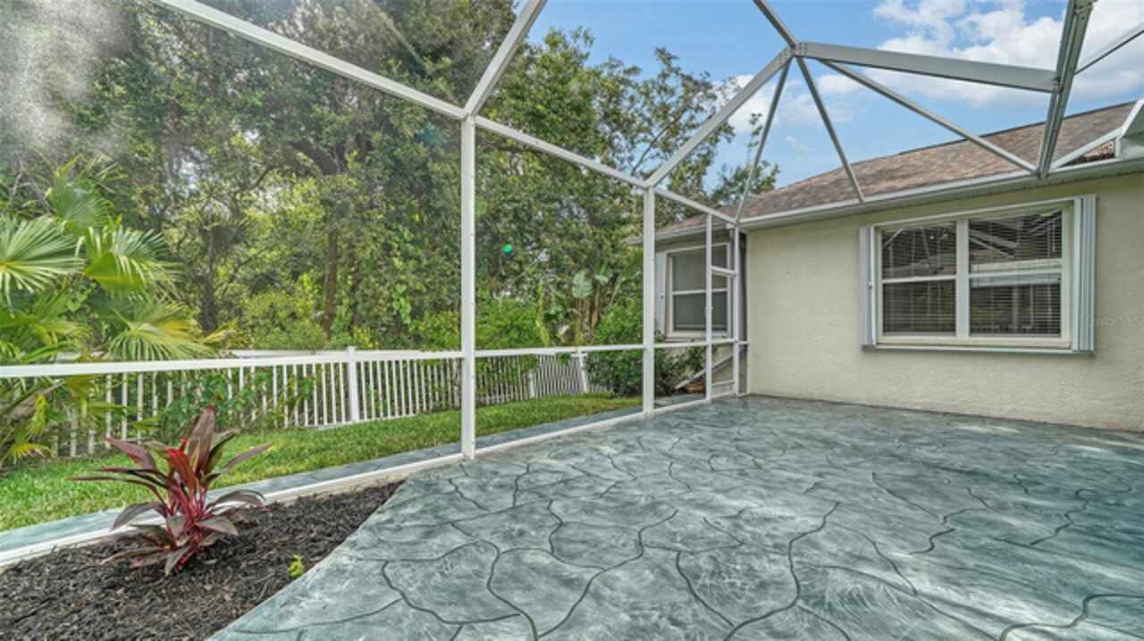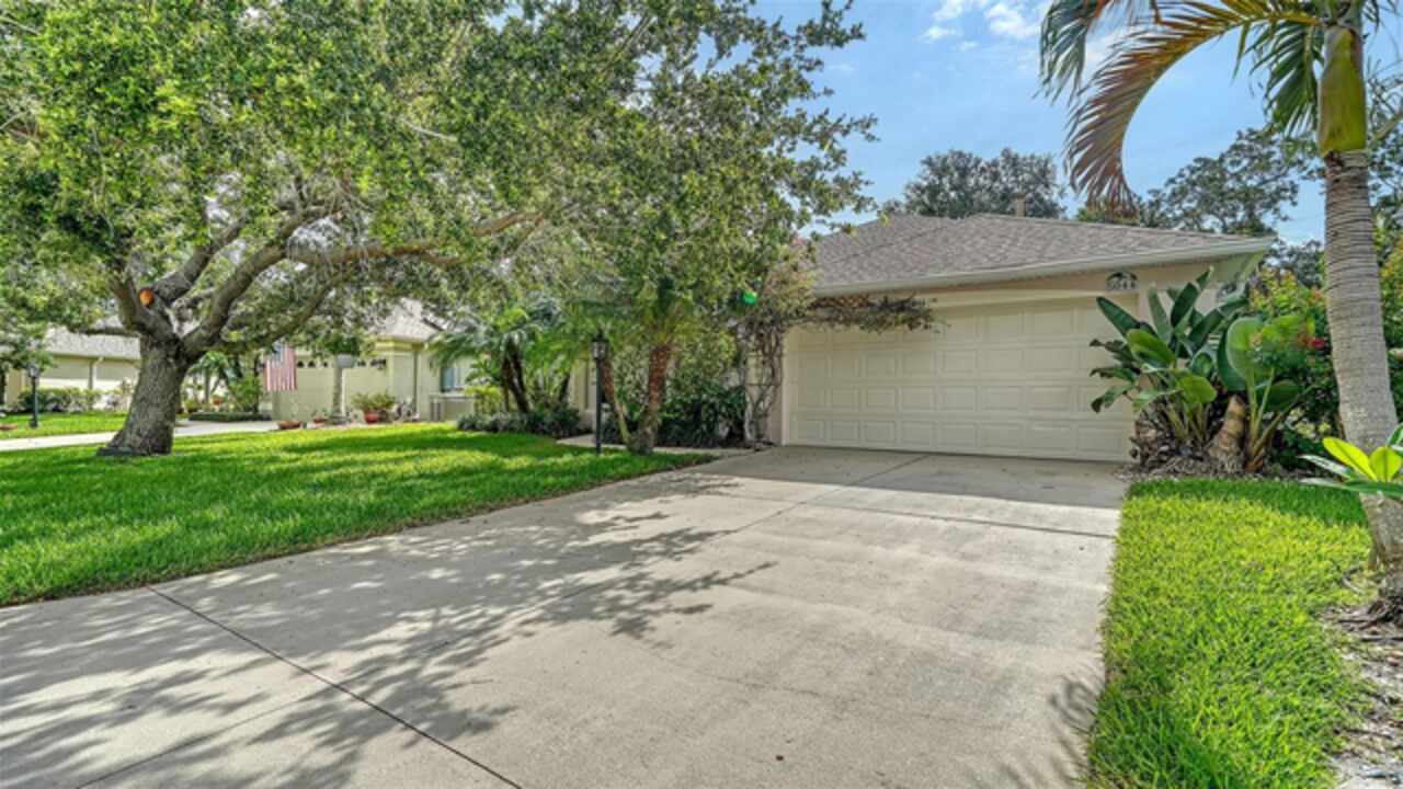 Under contract-accepting backup offers. Welcome to 5044 Creekside Trail, in the desirable Carlyle community of Palm Aire. This beautifully updated three-bedroom plus den home on a private preserve lot with a tranquil creek running just beyond the backyard, offering serenity and privacy. Enter to discover an open and spacious floor plan filled with natural light and several updates. A newer roof (2020), HVAC system (2020), and energy-efficient solar panels (2020) keep monthly electric bills averaging just $30 a month. New carpets in both guest bedrooms (June 2025) and fresh interior painting—including walls, ceilings and baseboards (June 2025)—give the home a crisp, modern feel. Luxury laminate flooring flows throughout the main living areas. The kitchen features warm wood cabinetry, newer stainless steel appliances, and a casual dining nook, all open to the family room with sliding glass doors leading to an extended lanai—ideal for relaxing or entertaining family and guests. The primary suite, accessed through double doors, offers a spacious retreat with a walk-in closet and en-suite bath featuring dual sinks, a soaking tub and a separate walk-in shower. Enjoy working from home in the generous private den, thoughtfully enclosed by French doors for added privacy and a quiet, focused workspace. Other features include accordion rollout hurricane shutters on all exterior doors and windows, a fenced-in backyard, tray ceilings, lush tropical landscaping, including tall palms and mature vegetation, to complete the Florida lifestyle you've been dreaming of. Residents at Carlyle at The Villages of Palm-Aire enjoy low HOA fees, less than $90 per month, and no CDDs. Great amenities such as pickleball, tennis courts, a community pool, a playground, and option to join the Palm-Aire Country Club. Great location near UTC Mall, shopping, restaurants, Sarasota International Airport, and downtown Sarasota and the sugary beaches.