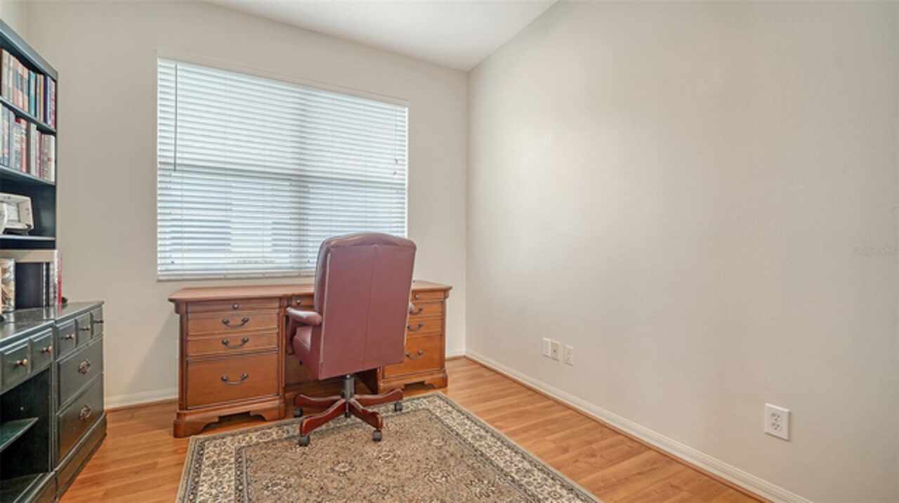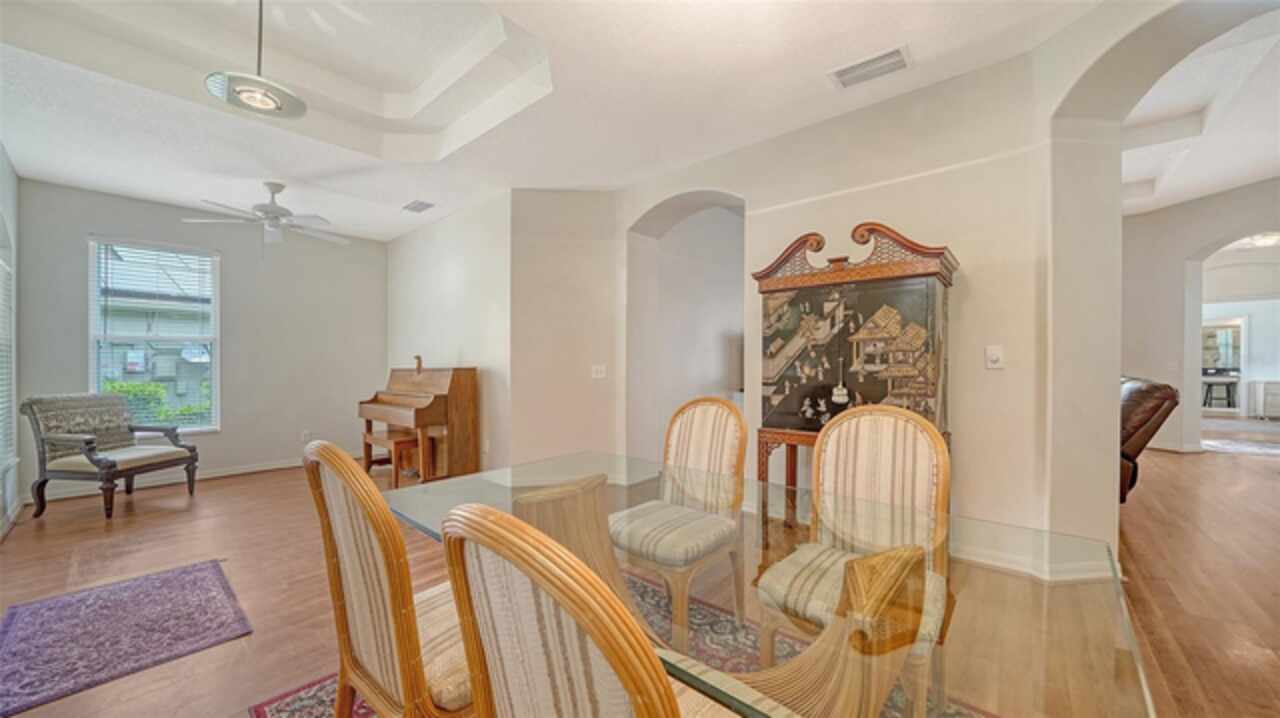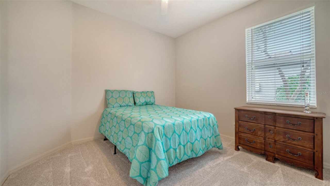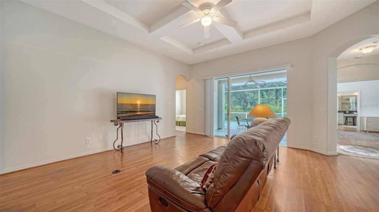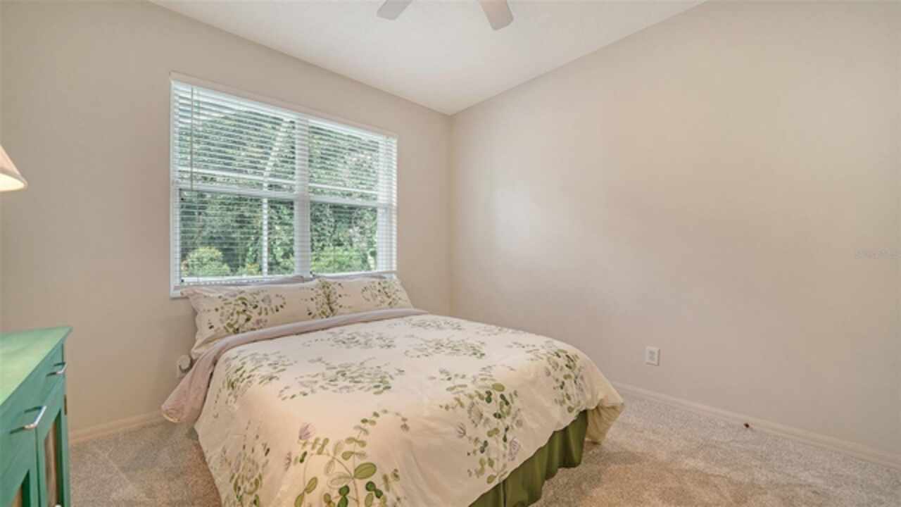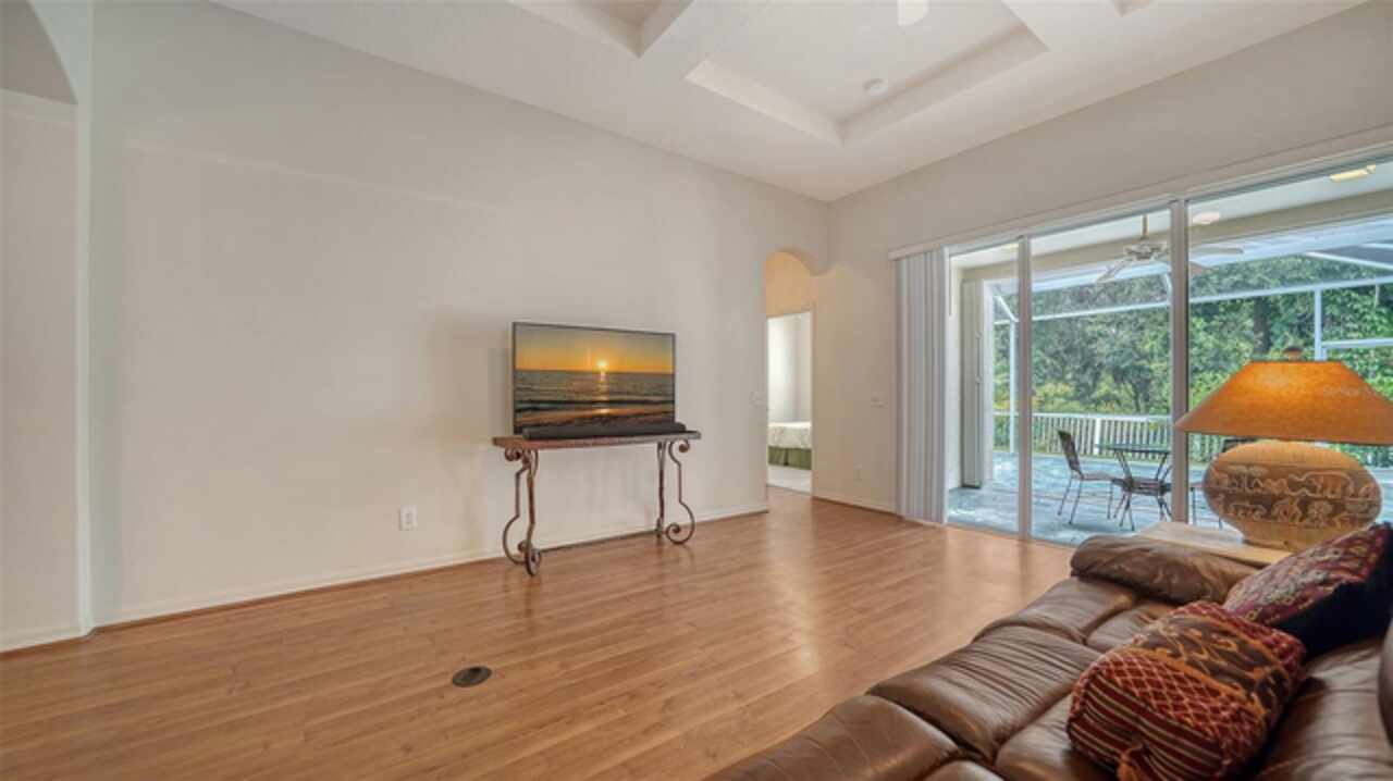 Under contract-accepting backup offers. Welcome to 5044 Creekside Trail, in the desirable Carlyle community of Palm Aire. This beautifully updated three-bedroom plus den home on a private preserve lot with a tranquil creek running just beyond the backyard, offering serenity and privacy. Enter to discover an open and spacious floor plan filled with natural light and several updates. A newer roof (2020), HVAC system (2020), and energy-efficient solar panels (2020) keep monthly electric bills averaging just $30 a month. New carpets in both guest bedrooms (June 2025) and fresh interior painting—including walls, ceilings and baseboards (June 2025)—give the home a crisp, modern feel. Luxury laminate flooring flows throughout the main living areas. The kitchen features warm wood cabinetry, newer stainless steel appliances, and a casual dining nook, all open to the family room with sliding glass doors leading to an extended lanai—ideal for relaxing or entertaining family and guests. The primary suite, accessed through double doors, offers a spacious retreat with a walk-in closet and en-suite bath featuring dual sinks, a soaking tub and a separate walk-in shower. Enjoy working from home in the generous private den, thoughtfully enclosed by French doors for added privacy and a quiet, focused workspace. Other features include accordion rollout hurricane shutters on all exterior doors and windows, a fenced-in backyard, tray ceilings, lush tropical landscaping, including tall palms and mature vegetation, to complete the Florida lifestyle you've been dreaming of. Residents at Carlyle at The Villages of Palm-Aire enjoy low HOA fees, less than $90 per month, and no CDDs. Great amenities such as pickleball, tennis courts, a community pool, a playground, and option to join the Palm-Aire Country Club. Great location near UTC Mall, shopping, restaurants, Sarasota International Airport, and downtown Sarasota and the sugary beaches.