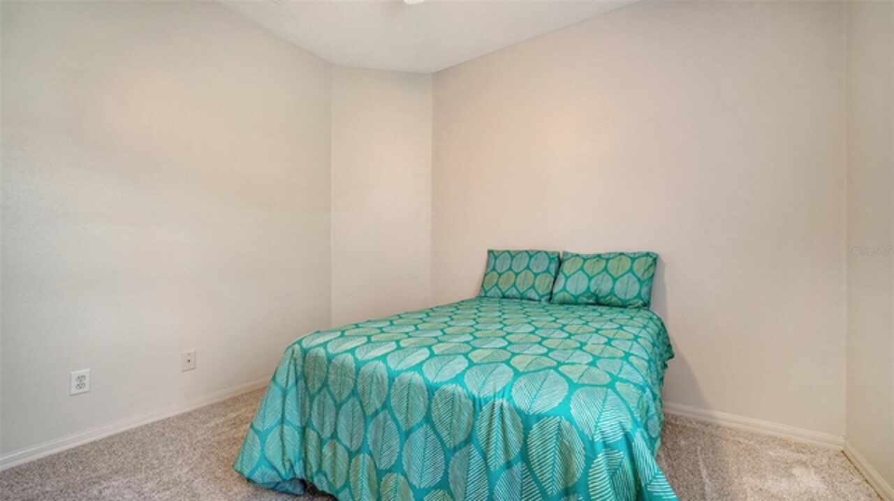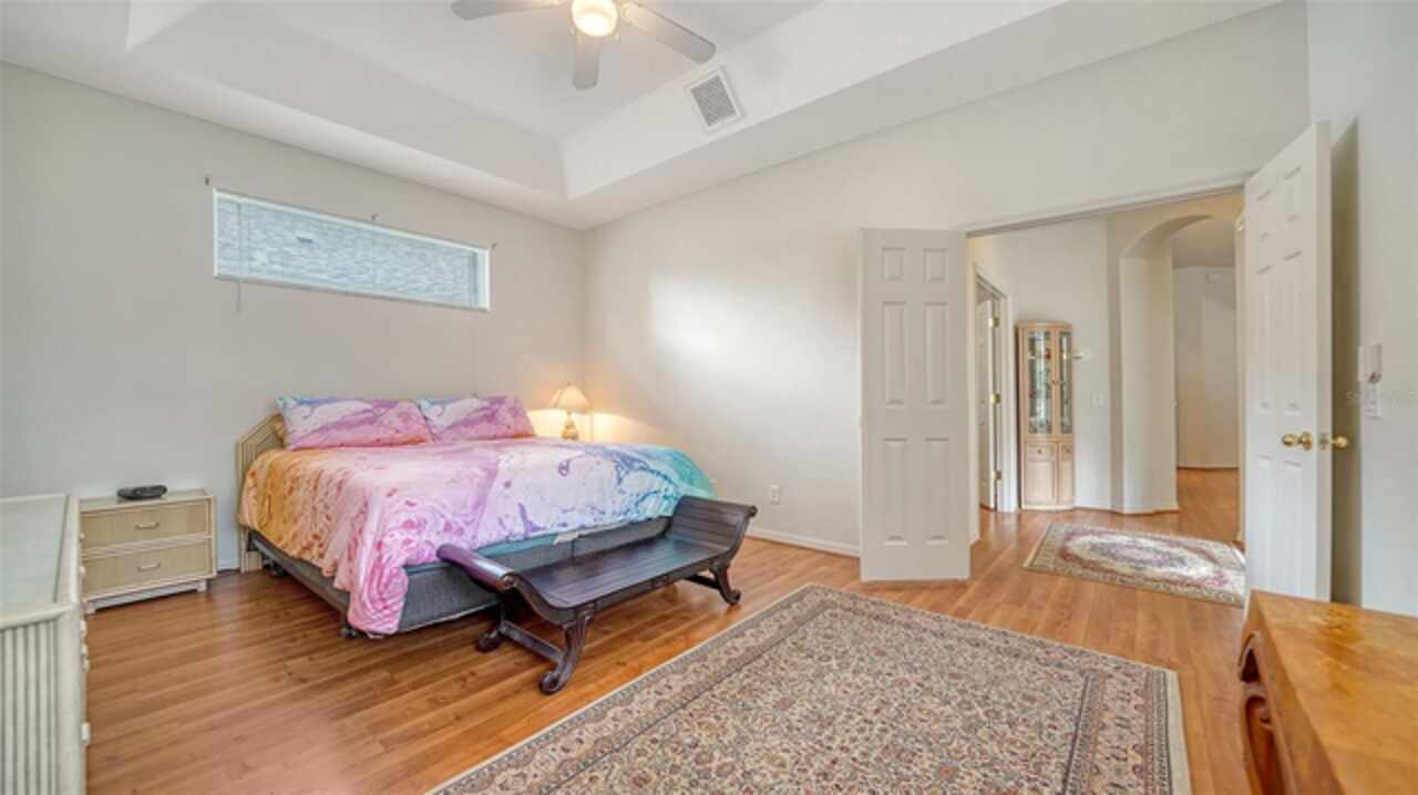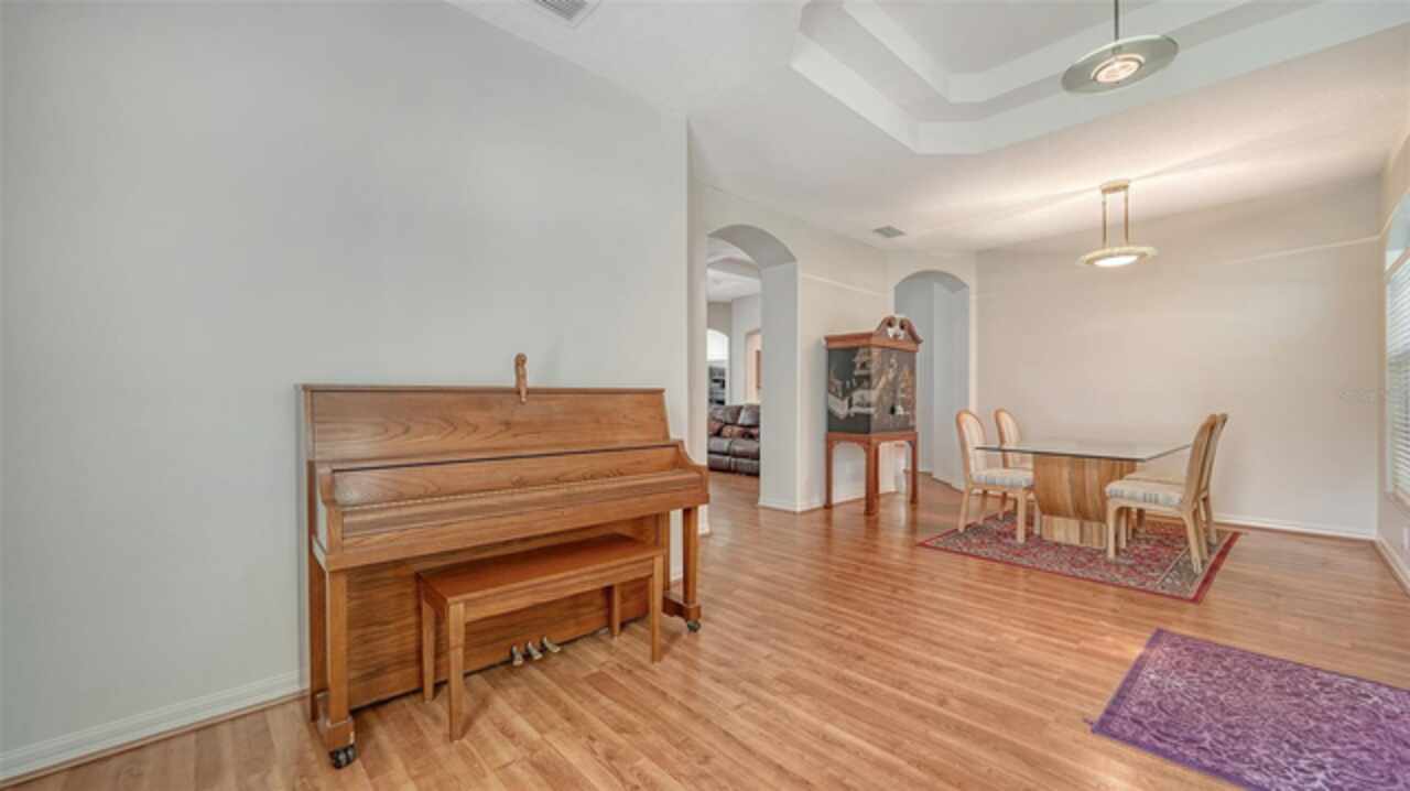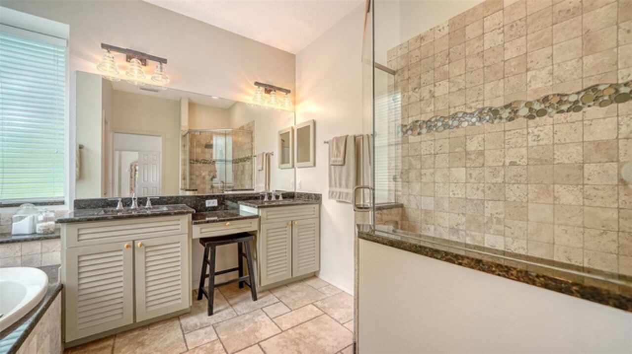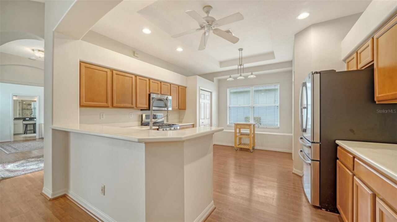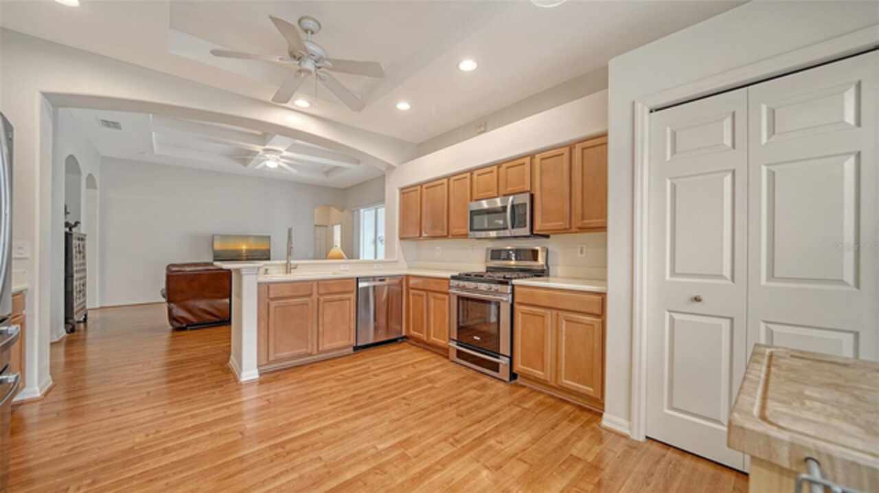 Under contract-accepting backup offers. Welcome to 5044 Creekside Trail, in the desirable Carlyle community of Palm Aire. This beautifully updated three-bedroom plus den home on a private preserve lot with a tranquil creek running just beyond the backyard, offering serenity and privacy. Enter to discover an open and spacious floor plan filled with natural light and several updates. A newer roof (2020), HVAC system (2020), and energy-efficient solar panels (2020) keep monthly electric bills averaging just $30 a month. New carpets in both guest bedrooms (June 2025) and fresh interior painting—including walls, ceilings and baseboards (June 2025)—give the home a crisp, modern feel. Luxury laminate flooring flows throughout the main living areas. The kitchen features warm wood cabinetry, newer stainless steel appliances, and a casual dining nook, all open to the family room with sliding glass doors leading to an extended lanai—ideal for relaxing or entertaining family and guests. The primary suite, accessed through double doors, offers a spacious retreat with a walk-in closet and en-suite bath featuring dual sinks, a soaking tub and a separate walk-in shower. Enjoy working from home in the generous private den, thoughtfully enclosed by French doors for added privacy and a quiet, focused workspace. Other features include accordion rollout hurricane shutters on all exterior doors and windows, a fenced-in backyard, tray ceilings, lush tropical landscaping, including tall palms and mature vegetation, to complete the Florida lifestyle you've been dreaming of. Residents at Carlyle at The Villages of Palm-Aire enjoy low HOA fees, less than $90 per month, and no CDDs. Great amenities such as pickleball, tennis courts, a community pool, a playground, and option to join the Palm-Aire Country Club. Great location near UTC Mall, shopping, restaurants, Sarasota International Airport, and downtown Sarasota and the sugary beaches.