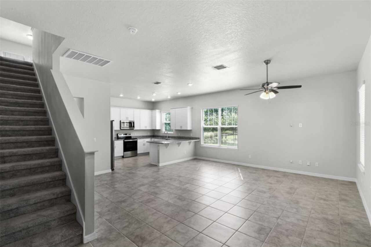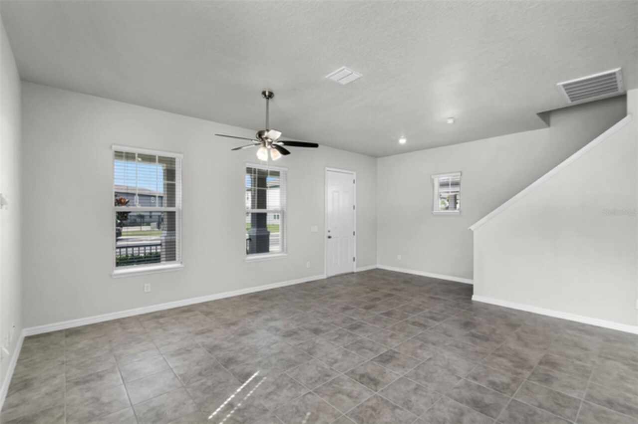 Welcome to this move-in ready 3-bedroom, 2.5-bathroom home in the community of Venetian Bay! Start your day with coffee or unwind in the evening on the front porch, perfect for relaxed afternoon sitting. Step inside to discover an inviting open floor plan that seamlessly blends the living and kitchen areas—ideal for everyday living and entertaining. The kitchen is a chef’s delight with stainless steel appliances, granite countertops, a convenient pantry, and a spacious countertop bar with additional seating. A half bathroom and access to the attached 2-car garage add extra convenience on the main level. Upstairs, enjoy the flexibility of a versatile loft space—perfect as a secondary living area, playroom, home office, or media room. Retreat to the spacious primary suite tucked away at the rear of the home, featuring elegant tray ceilings, a large walk-in closet, and an en-suite bathroom with double vanities, a relaxing garden tub, and a standalone shower. Down the hallway for added privacy, you’ll find two additional guest bedrooms and a full bathroom with a tub/shower combo. The second-floor laundry room adds everyday convenience. Venetian Bay is an active lifestyle community, home to The Club at Venetian Bay, which offers an 18-hole golf course. The community also boasts a vibrant town center with shopping and dining, and playgrounds. The neighborhood is just minutes from beaches, additional shopping and dining options, and major highways I-95 and I-4 interstate. Don’t miss the opportunity to make this beautiful home your own!