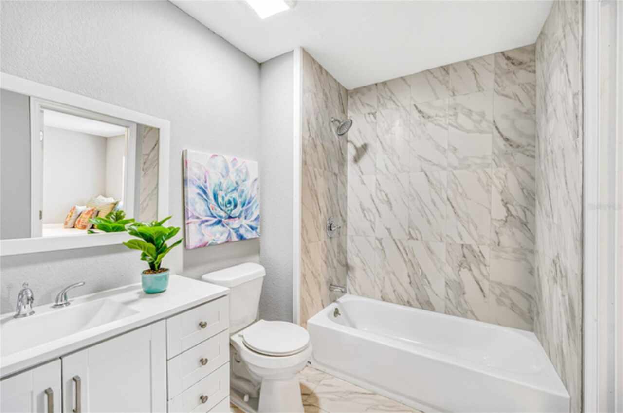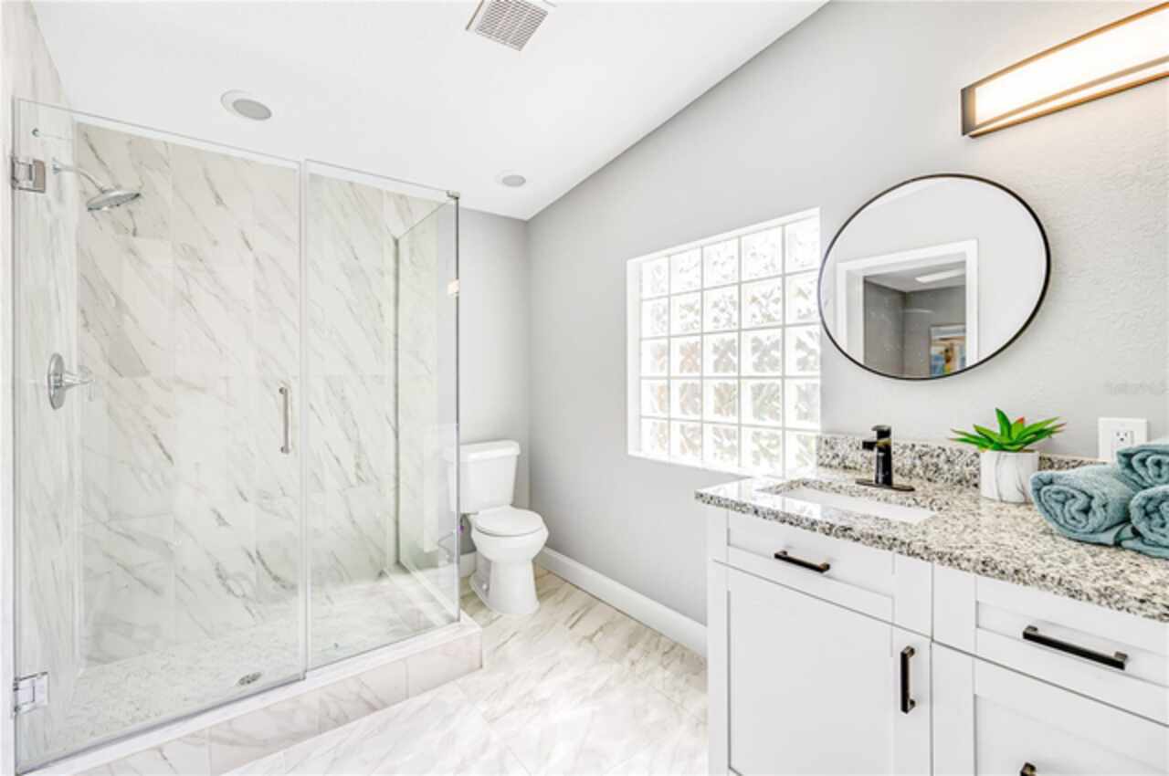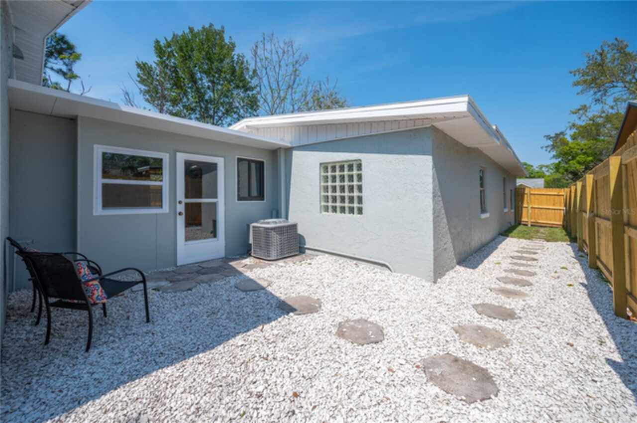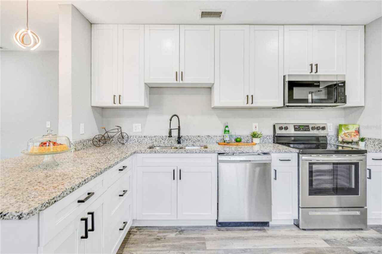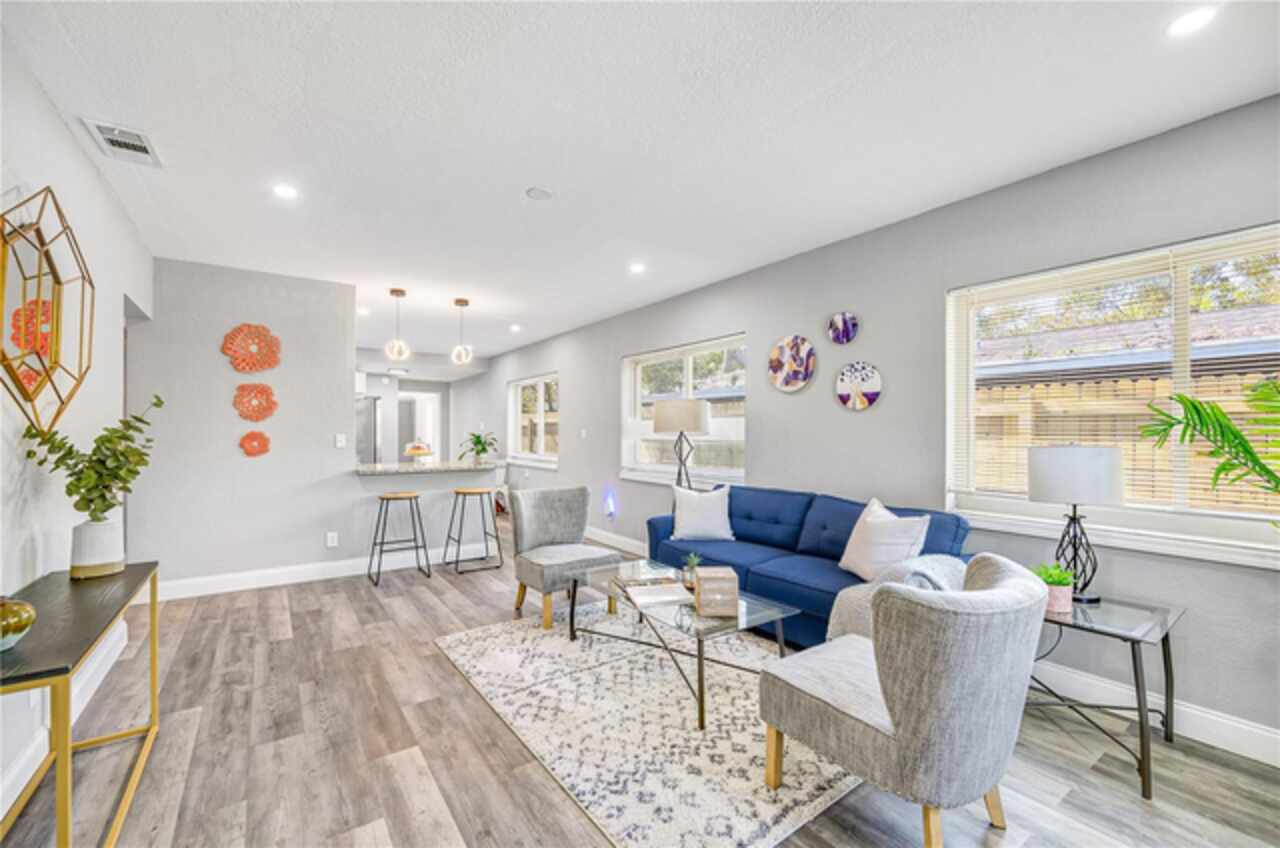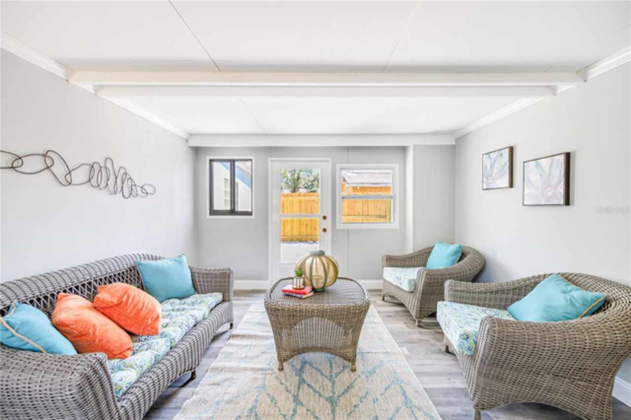 Step inside this beautiful renovated NO FLOOD ZONE home, and get ready to be amazed! This recently renovated 4 bedroom, 3 bath home boast a desirable floor plan that provides privacy and comfort for the entire household. With a newer roof, gutters, luxury waterproof vinyl flooring, gorgeous granite countertops, and stainless steel appliances, this home feels like new from the moment you walk in. The primary suite is bright, spacious, and thoughtfully designed with a large closet and a beautifully updated bathroom. As you explore further, you’ll discover additional renovated space beyond the breezeway that could serve as the perfect private in-law suite or related living area, offering flexibility for family or guests. Home showcases a mid-century modern style exterior. You’ll also enjoy plenty of off-street parking and convenient garage space, making daily living a breeze. Nestled in a desirable location, you’re just minutes from local parks like Azalea Park, Bear Creek Park, and Leslee Lake Park, offering green spaces, walking trails, and playgrounds. Plus, you’re close to shopping, dining, entertainment and marinas. Less than 15 minutes to both Downtown St Pete and Treasure Island and St Pete Beach. Beautiful home in a great central location! Buyer to verity all dimensions and measurements.
