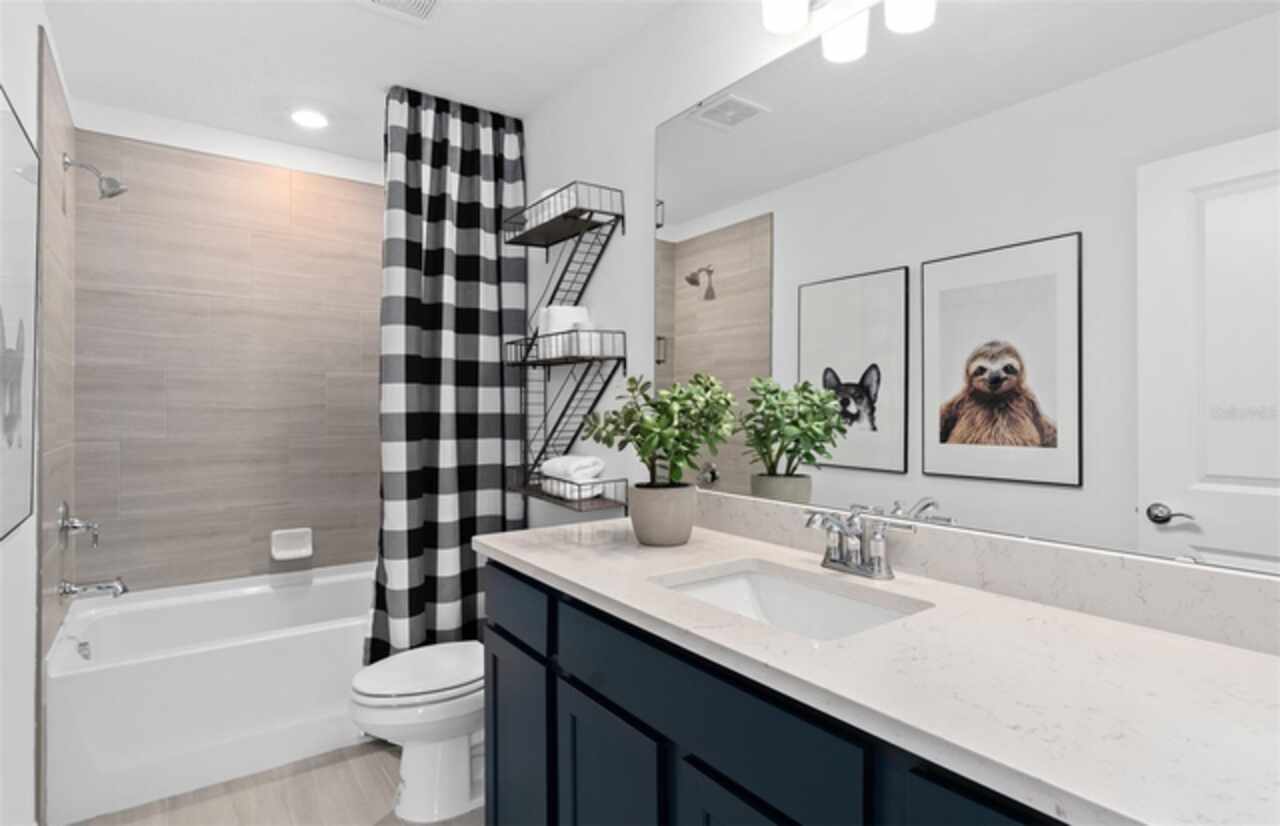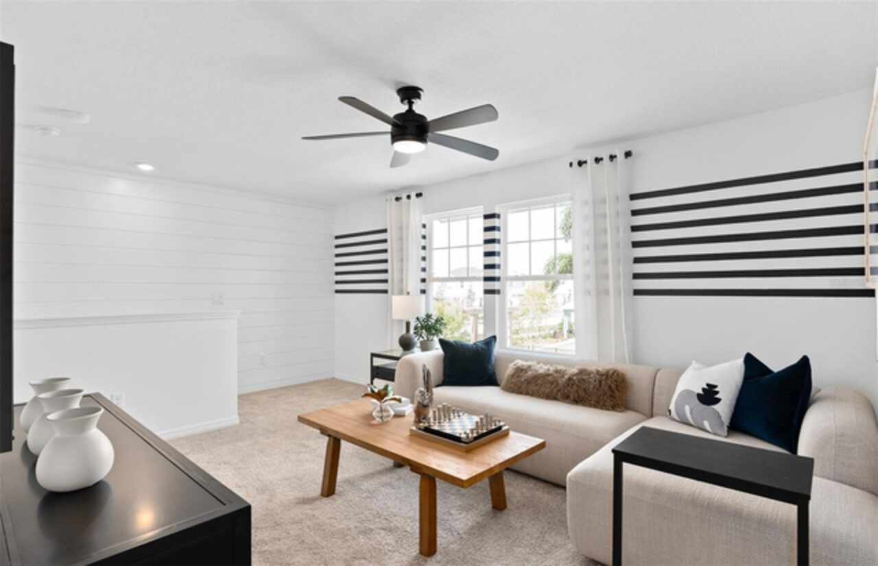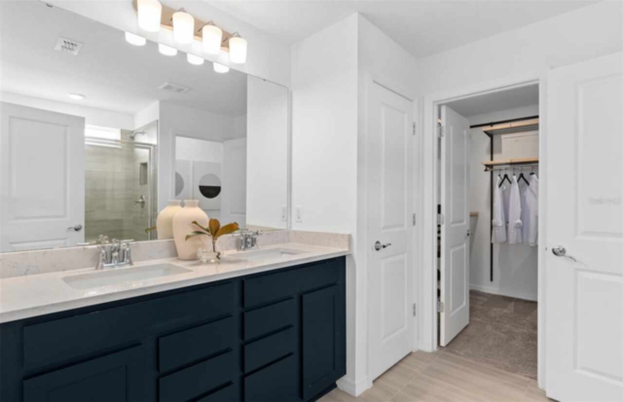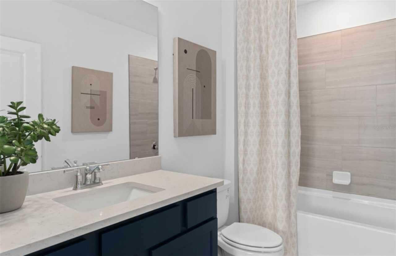 Under Construction. Explore The Landings at Live Oak Lake, a new single-family home community blending city charm with a distinct identity, all without a CDD. Situated between downtown St. Cloud and Lake Nona, it offers private amenities such as a pool & cabana, playground, trails, and playfield amidst serene ponds and conservation homesites. Welcome to the luxurious Mabel bungalow by Pulte, a stunning new construction that perfectly blends modern design with everyday convenience. This Farmhouse-inspired home offers 4 bedrooms, 3 bathrooms, a loft, a covered lanai, and a 2-car rear-load garage. Upon entry, you'll be greeted by a grand foyer with ample storage, including two closets, leading into an open-concept living space. A private hallway off the foyer offers a guest bedroom and full bath, creating an ideal space for visitors. The heart of the home unfolds into a spacious kitchen, café, and gathering room, with seamless access to the covered lanai—ideal for indoor-outdoor living. The chef’s kitchen is a true standout, featuring a large center island, corner walk-in pantry, and Whirlpool stainless steel appliances, including a vented microwave and a refrigerator. Elegant Tilden Stone Gray cabinetry, a decorative tile backsplash, and Lyra quartz countertops complete the space, ensuring both style and functionality. Upstairs, the luxurious owner’s suite provides the perfect retreat, tucked at the rear of the home for ultimate privacy. The spa-inspired en suite bathroom boasts a glass-enclosed shower, a quartz-topped dual vanity, and a spacious walk-in closet, creating a sanctuary of relaxation. Two additional bedrooms, sharing their own dedicated hallway, offer added privacy and comfort, while a full bathroom serves the space. The second floor also includes two linen closets, a laundry room, and a large loft area—ideal for flexible living. Thoughtful luxury touches throughout the home include Wood-Look Luxury Vinyl flooring on the first floor (except the first-floor bedroom, which features plush, stain-resistant Shaw brand carpeting and the bathroom which is tile), carpeting on the staircase and second-floor bedrooms, tile in the bathrooms and laundry room, and pre-wiring for pendant lighting. Smart technology features like a smart thermostat, smart doorbell, and additional LED downlights ensure this home is as advanced as it is beautiful. For added convenience from day one, this home comes complete with 2" faux wood blinds, as well as a washer and dryer! This exquisite home offers the ultimate in luxury, convenience, and modern design—everything you need to live and relax in style.