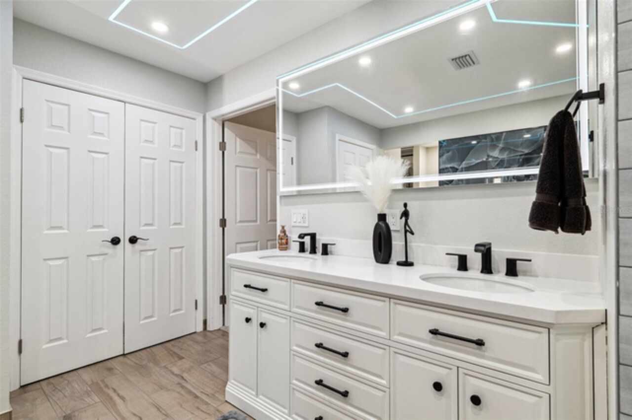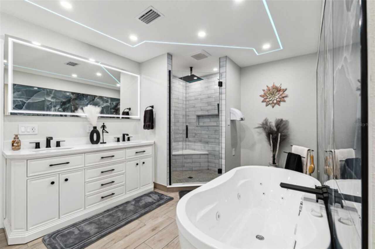 Under contract-accepting backup offers. NEW $15K PRICE IMPROVEMENT — THE BEST HOLIDAY DEAL YOU’LL FIND! Don’t miss this incredible opportunity to own a beautifully updated home in the highly sought-after Oakleaf Village community of Tarpon Springs. With an optional low HOA, no CDD, and no flood insurance required, this home offers comfort, value, and true peace of mind. This move-in ready 3-bed, 2-bath home features 1, 482 sq. ft. of stylishly updated living space and a thoughtfully designed split-yet-open floor plan that perfectly balances privacy and connection. Fresh finishes, abundant natural light, and over half of the home renovated in 2024 set the tone for modern, turn-key living. The chef-inspired kitchen is sure to impress; crisp white shaker cabinetry, luxe quartz counters, upgraded stainless steel appliances, walk-in pantry, and chic lighting bring form and function together beautifully. The primary suite feels like a high-end retreat with plush new carpeting, dimmable LED lighting, and an HGTV-worthy ensuite featuring a freestanding jet tub, rainfall shower, double smart-mirror vanity, custom tile work, and even a self-flushing heated toilet (because, why not?). The massive custom walk-in closet offers built-ins and enough space for a laundry setup or additional storage. Two additional bedrooms are bright and generously sized, conveniently located near a beautifully updated guest bath. Outdoor living shines here! Relax or entertain in your large screened-in patio, enjoy the private backyard with deck and storage shed, or create the garden, play space, or future pool you’ve been dreaming of. Notable upgrades include: Updated kitchen & baths, updated flooring, 2023 windows/doors, 2024 tankless water heater, plantation shutters, 2025 exterior paint, new indoor/outdoor lighting, updated baseboards, ADT security system with cameras, and double driveway for easy parking. The neighborhood park and playground are just a short stroll away, with quick access to the Pinellas Trail, downtown Tarpon Springs, the Sponge Docks, and Innisbrook Golf Resort-location and lifestyle at their best. This home is freshly priced, fully updated, and without a doubt one of the best values you’ll find this holiday season. Schedule your private tour today!