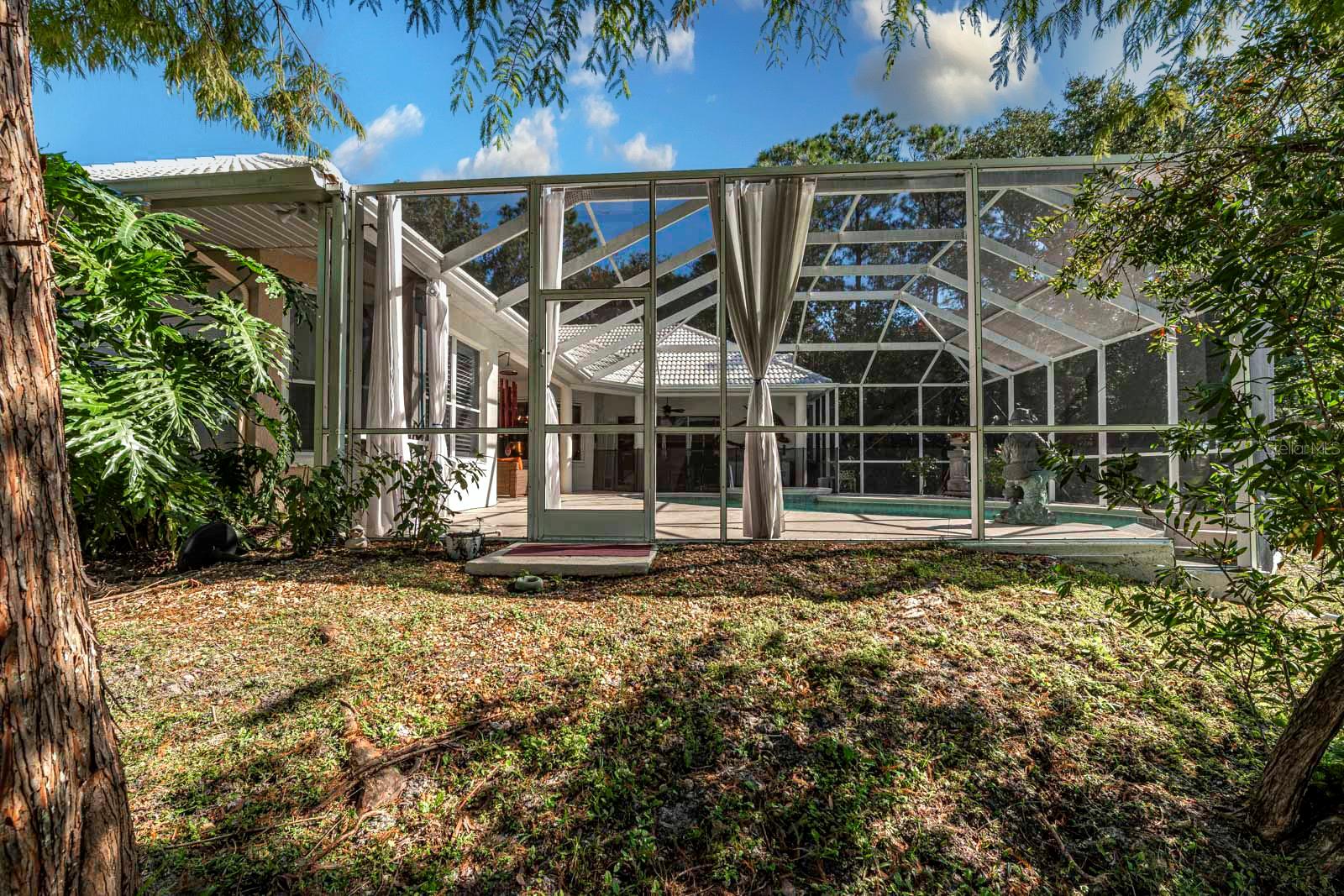Situated in the highly desired Greenbriar Trail area of the Country Club of Mount Dora, this home stands among the community’s most impressive properties. A palm-lined driveway leads to a stunning tile roof, bubbling fountain, and elegant double front doors adorned with full-length cut-glass panels setting the tone for the quality found throughout the home. Stepping inside, your gaze is immediately drawn through the formal living room to the infinity-edge pool, which blends seamlessly with the tranquil pond beyond. French doors from the living room open directly onto the pool deck, enhancing the home’s indoor–outdoor flow. The formal dining room features tall arched windows that bathe the room in natural light —perfect for memorable gatherings. A beautifully appointed home office offers large windows and generous space. With a closet and a full bath across the hall, this room can also function as a guest suite. The primary bedroom suite is a true retreat, offering two spacious walk-in closets, new plantation shutters, and French doors that open directly to the pool deck. Its luxurious ensuite bathroom offers a large walk-in shower, soaking tub, and dual vanities. The home is designed with a split-bedroom plan incorporating two guest bedrooms on the opposite side of the home which share a large full bath. One of the guest rooms features a walk-in closet large enough to accommodate a twin bed! The chef’s kitchen is exceptional in both design and functionality. A central island anchors the space, surrounded by granite countertops and a matching backsplash. The kitchen boasts extra-tall maple cabinetry—so abundant that the owner counted 67 cabinet doors—in addition to a deluxe walk-in pantry. A professional-quality gas range, new refrigerator, Fisher Paykel double-drawer dishwasher, and expansive prep areas make this a cook’s dream. Integrated into the kitchen is an inviting informal dining area with seamless windows overlooking the pool and the pond beyond. The connected family room sits across an informal bar ready for relaxing entertaining. The space flows seamlessly through pocketed sliding glass doors to the screened pool deck. The infinity pool appears to merge with the pond below, and the attached Jacuzzi sits perfectly for relaxation. A new Wi-Fi pool heater can warm the spa and pool remotely so it’s ready whenever you are. The pool deck is set up for outdoor dining, has an outdoor kitchen, and includes a comfortable outdoor seating space overlooking 120 feet of waterfront, part of a series of interconnected ponds managed throughout this golfing community. The extra-large double car garage includes a separate golf-cart area offering outstanding storage and functional convenience. The home’s infrastructure is equally impressive, providing a central vacuum system, whole-house water filtration and softener, wiring for a small generator. Living in the Country Club of Mount Dora offers more than just a home—it’s a lifestyle. Optional membership gives access to golf, tennis, pickleball, a large pool, and year-round social events. The charming Mount Dora downtown, just minutes away, is filled with boutique shops, dining, and popular festivals. Plus, with Orlando and its international airport less than an hour away, travel and city conveniences are always within easy reach. Whether you’re seeking a peaceful retreat or an engaging community to call home, this property delivers!