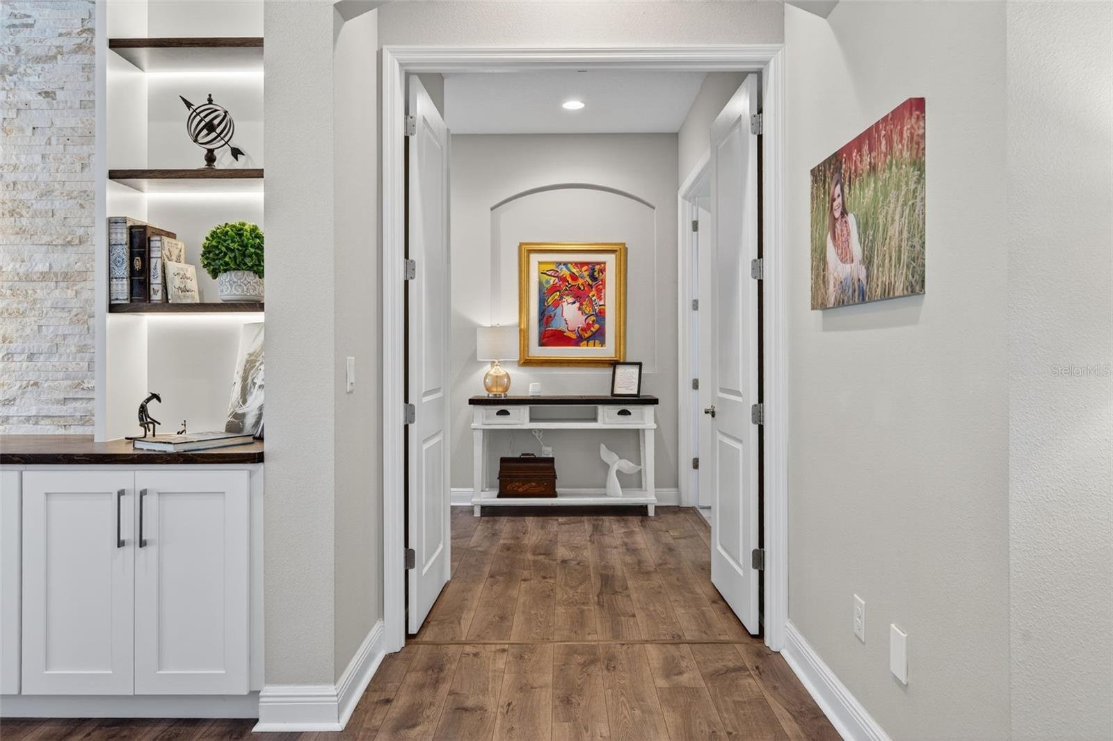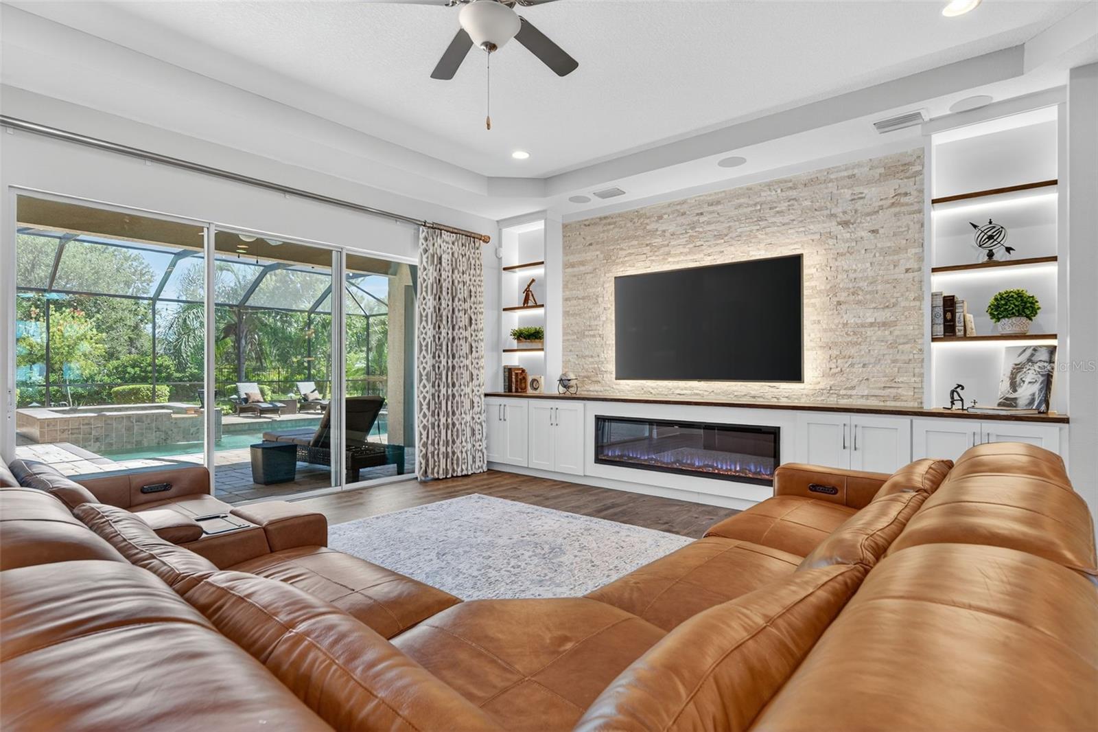 Under contract-accepting backup offers. Experience refined Florida living in this exceptional estate located in the sought-after community of Rye Wilderness Estates. Perfectly situated on an oversized homesite surrounded by lush greenery, this custom-designed residence offers 4 bedrooms, 4 bathrooms, and a spacious 3-car garage—crafted for elegance, functionality, and modern convenience. Step inside to discover sophisticated interiors with high ceilings, designer finishes, and abundant natural light that seamlessly connects the open living spaces. The gourmet kitchen is a showpiece with rich cabinetry, a large center island, luxury appliances, and a layout ideal for both entertaining and everyday living. The family room, anchored by a custom feature wall, electric fireplace, custom built-in shelving and expansive sliders, transitions effortlessly to the outdoor oasis. The generously sized master suite is a private retreat, offering a spacious layout, tray ceiling, and serene views that set the tone for ultimate relaxation. Its spa-like bathroom features a luxurious soaking tub, walk-in shower, dual vanities, and elegant finishes, creating a personal sanctuary for unwinding at the end of the day. Two additional bedrooms each feature ensuite bathrooms, providing privacy and comfort for family or guests, while the fourth bedroom enjoys easy access to a nearby guest/pool bath—perfectly designed for versatility and convenience. Designed for year-round enjoyment, the resort-style lanai boasts a full custom outdoor kitchen, saltwater heated pool, and spa—all framed by tropical landscaping and a large fenced-in backyard that offers unmatched privacy and serene natural views. For ultimate peace of mind, the home is equipped with a whole-home Generac generator, Tesla chargers in the garage, and a central vacuum system, not to mention the designer crafted window treatments and finishes throughout the home. Rye Wilderness is known for its oversized lots, luxury residences, and NO CDD fees. Residents enjoy the tranquility of wide-open spaces while remaining just minutes from Lakewood Ranch, top-rated schools, golf courses, shopping, dining, and the Gulf Coast’s award-winning beaches. This home embodies the perfect balance of elegance, technology, and Florida lifestyle—making it a rare offering in one of Bradenton’s most desirable neighborhoods.
