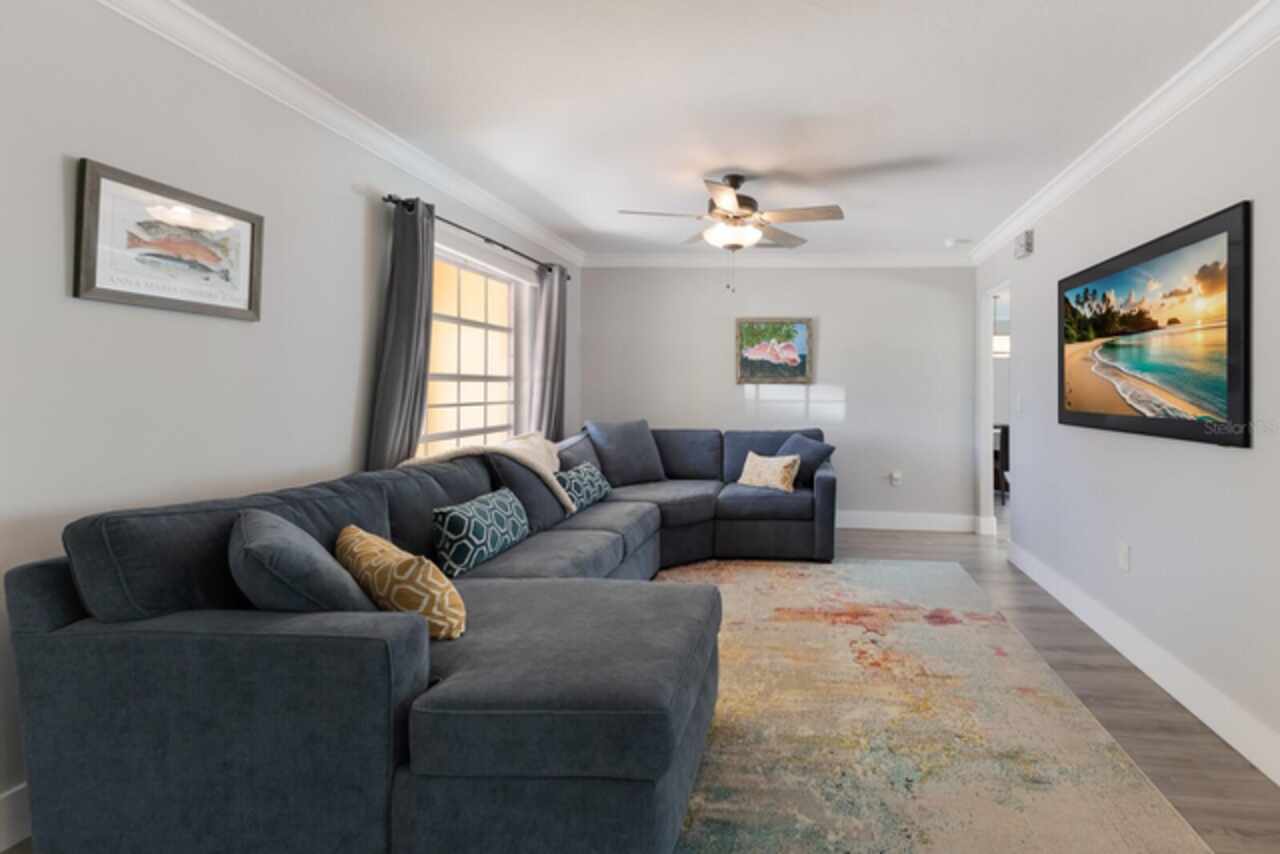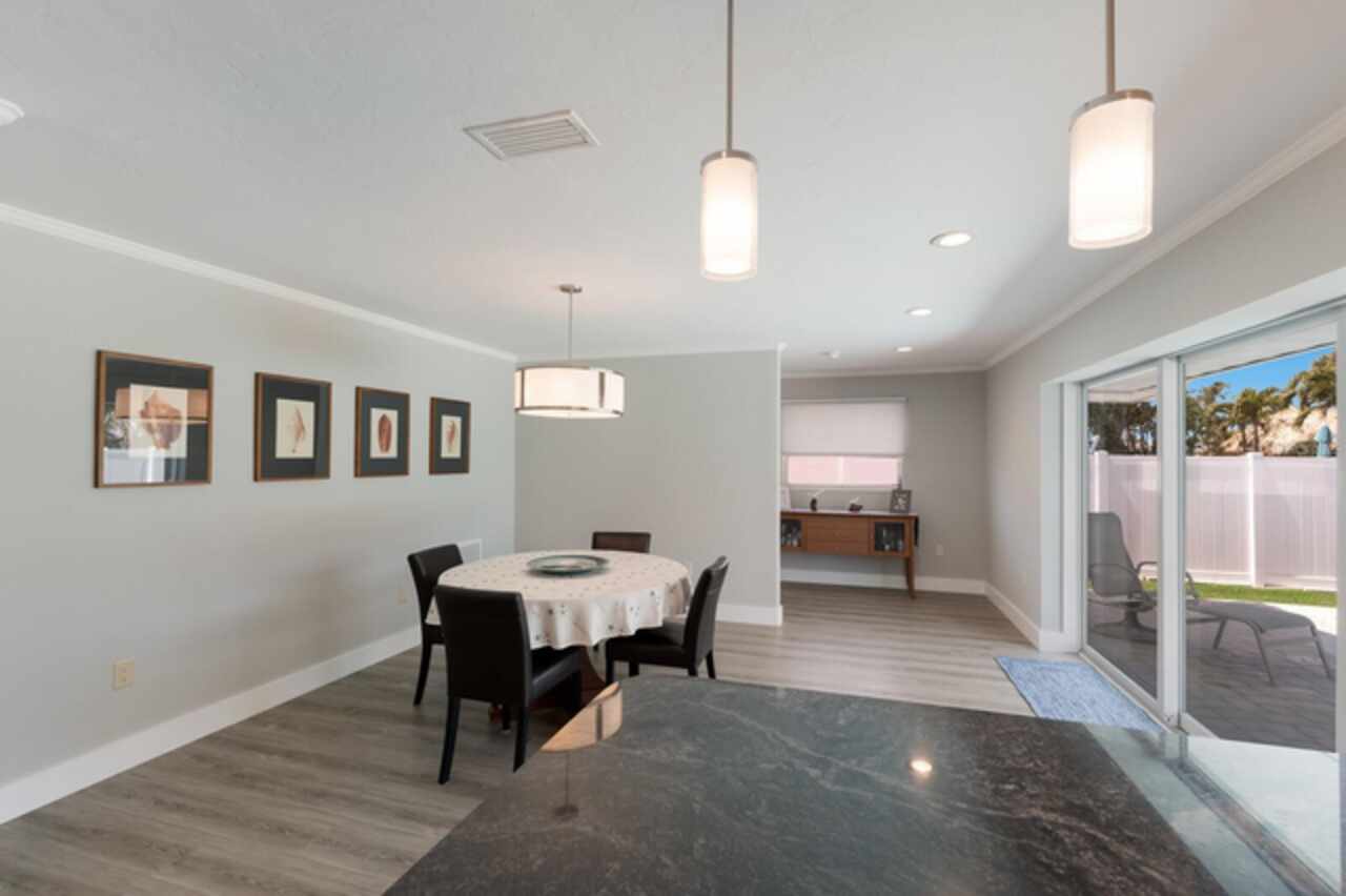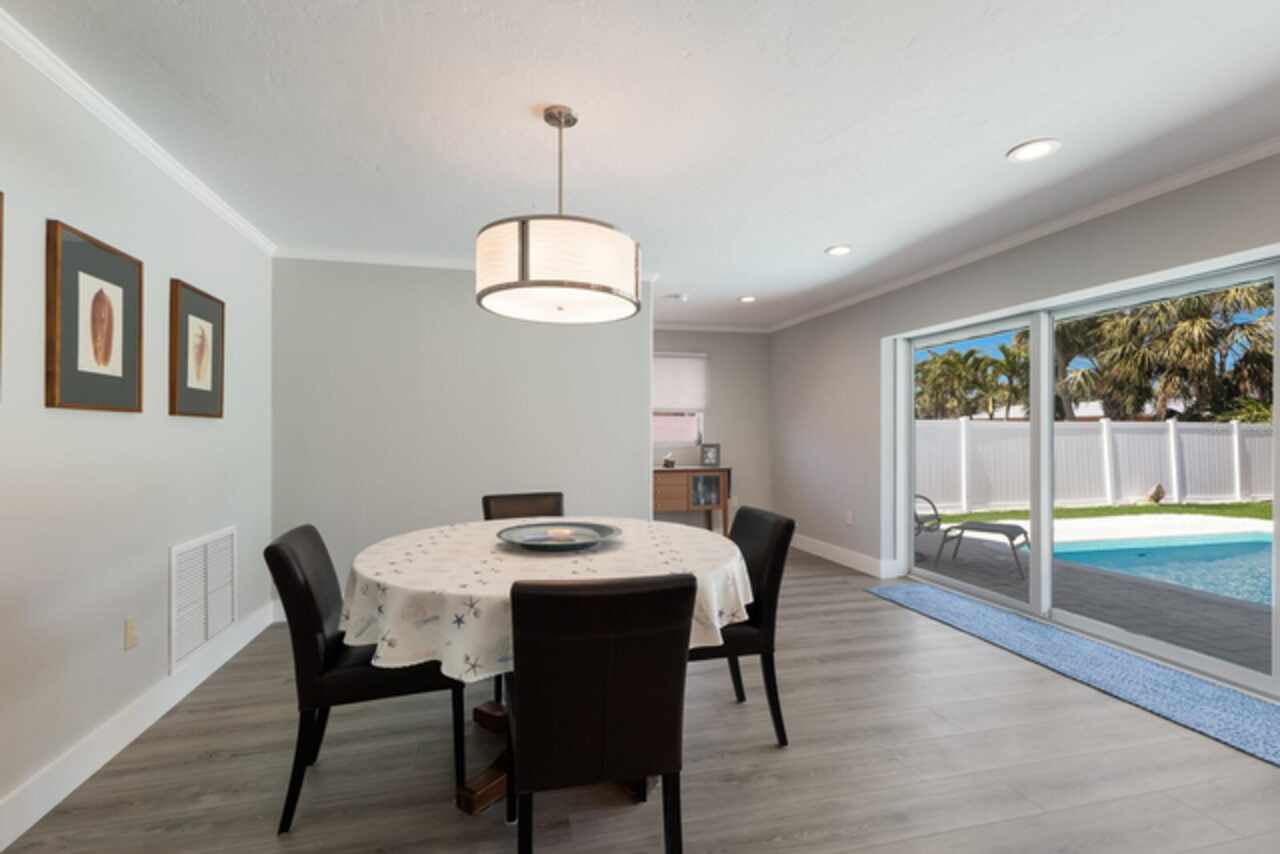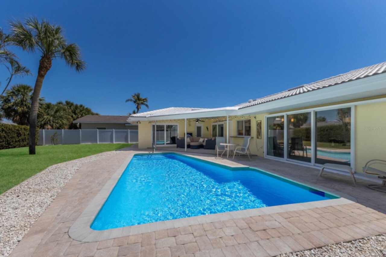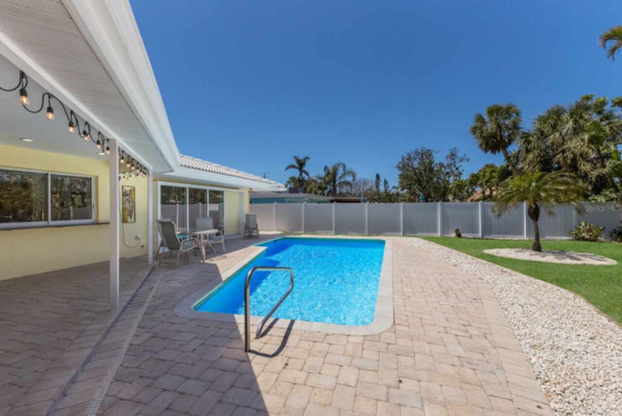 Your pristine island retreat awaits in the heart of Holmes Beach, where coastal charm meets modern comfort. This beautifully renovated 3BD/2BA residence offers an ideal blend of indoor and outdoor living, perfect for both relaxing getaways and entertaining guests. Step inside to discover a spacious, open concept layout featuring a large, well-appointed kitchen that seamlessly connects to the living and dining areas. Natural light floods the space through expansive sliding glass doors, creating a bright and airy atmosphere. Features include new electrical panel & wiring in 2014, plumbing relined, all appliances, hot water heater & pool pump new in 2025, garage door & all sliders are impact rated. Outside, the generous backyard is a true oasis. Lush tropical landscaping surrounds a sparkling, heated private pool, offering a serene setting for splashing around or simply unwinding outdoors. Whether you're hosting a barbecue, dining al fresco or enjoying a quiet evening under the stars, this outdoor space is designed for enjoying the warm island breezes. Located just moments from the pristine Gulf beaches, local eateries, and charming boutiques, this home offers the perfect balance of tranquility and convenience. Whether you're envisioning quiet coastal escapes or lively family gatherings, this Holmes Beach gem brings the island lifestyle right to your doorstep.