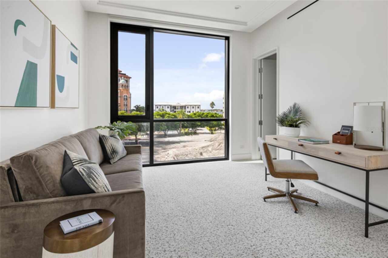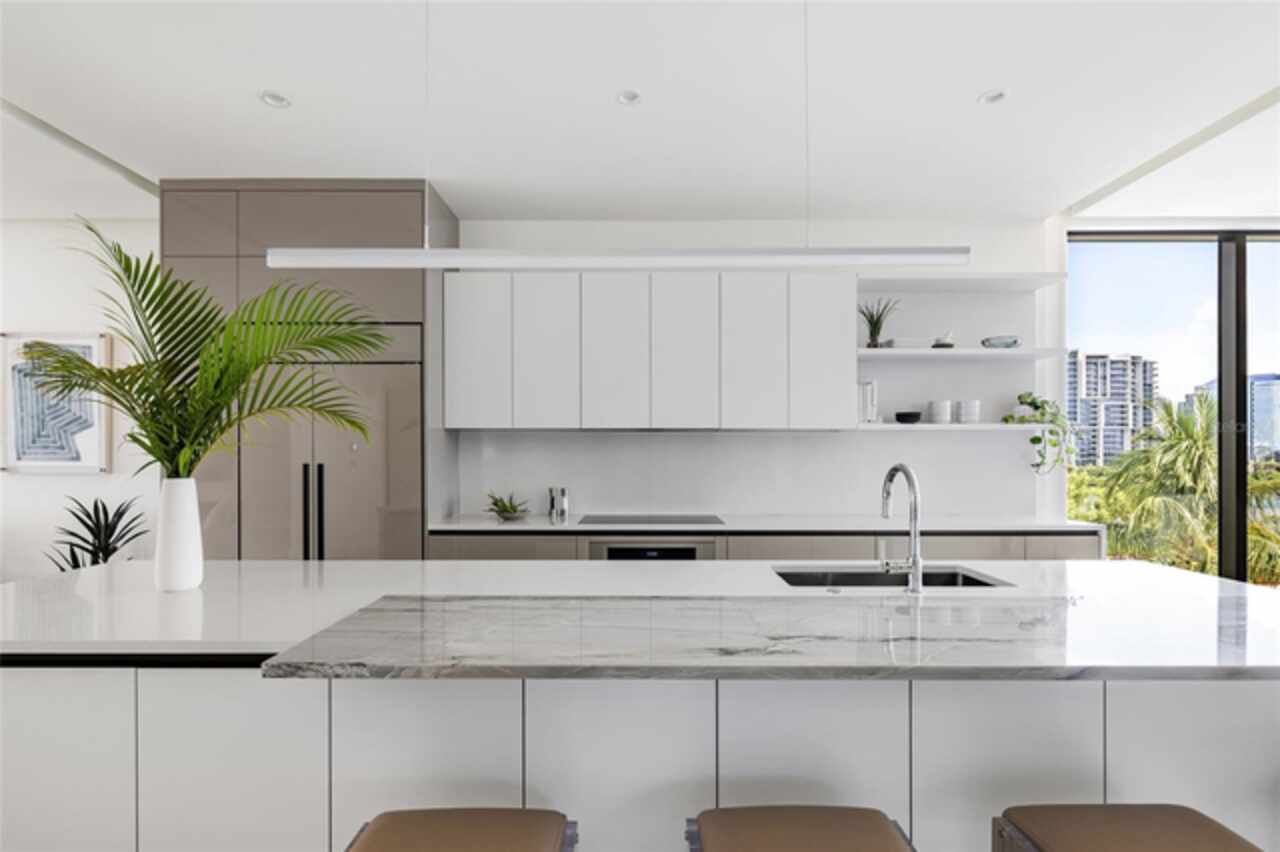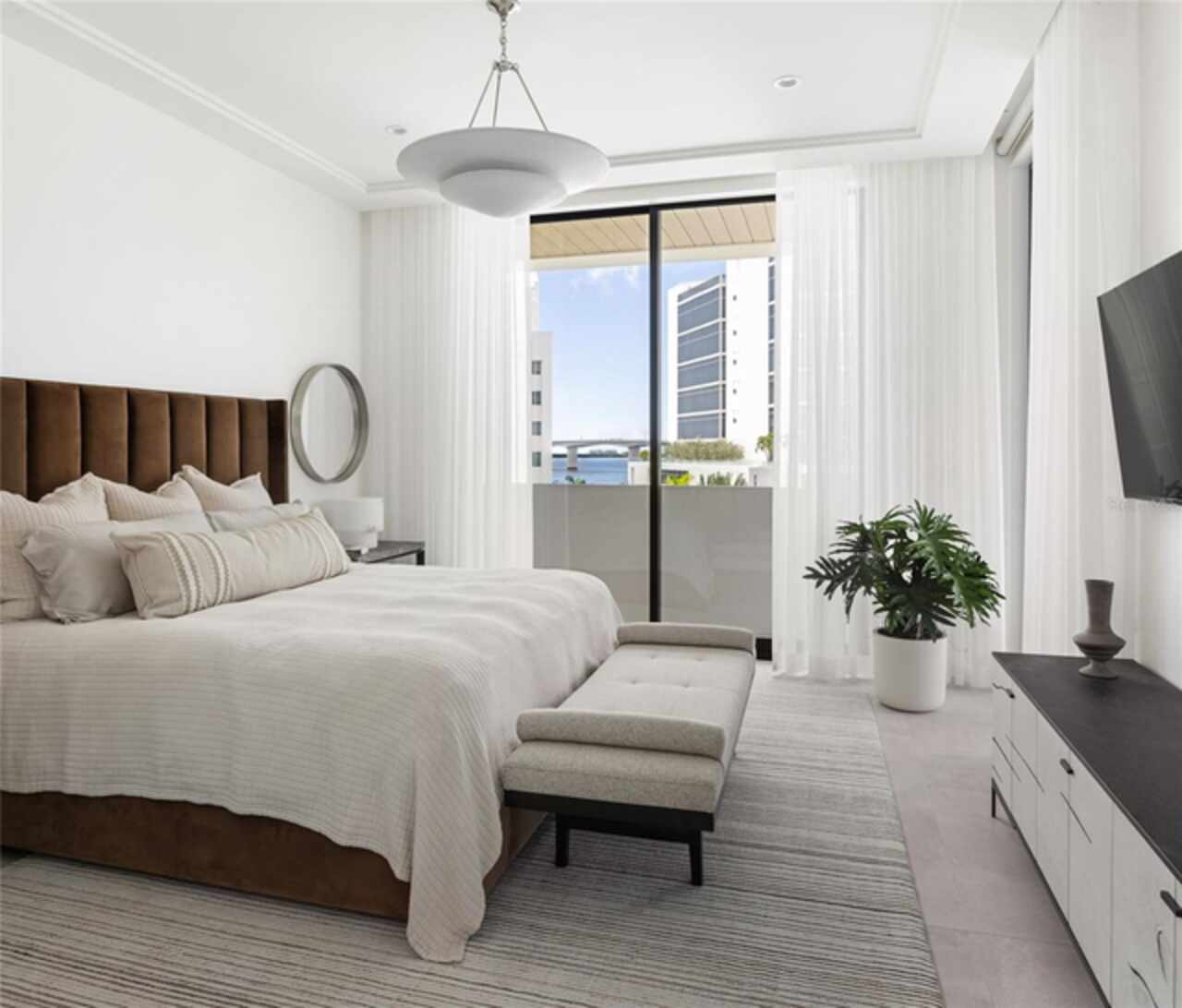 New Construction Move-in Ready! Golden Gate's Newest Condominium! Relish a luxurious, carefree lifestyle in this beautiful full-floor residence in En Pointe, a four-unit condominium in Golden Gate Point, ideally situated between the Ringling Bridge and vibrant downtown Sarasota. The 2, 439-square-foot residence features 3 bedrooms and 3.5 bathrooms. Two private covered terraces and walls of glass showcase scenic views at every turn, including the bay, Ringling Bridge, downtown and marina. Designed by Echt Architects and constructed by Nautilus Homes, each En Pointe residence features refined craftmanship and modern features, offering a convenient lock-and-leave lifestyle. From the condominium’s private lobby, an elevator transports you to your private entry foyer. At the center of the flow-through floor plan is a chef-inspired kitchen, flanked by the spacious living room and dining room. The living room seamlessly transitions to the sunset terrace, while the dining room opens to the sunrise terrace – perfect for relaxing and entertaining. The generous primary suite includes a spacious walk-in closet, double vanities, large shower and soaking tub. The bedroom offers access to the sunset terrace, boasting picturesque views to the north and west, while abundant natural light floods the south-facing primary bath. There are also two additional en-suite bedrooms. En Pointe’s amenities include a 7’x36’ heated saltwater pool with a bench, plus elevated decks for lounging and dining. Each unit includes two dedicated covered parking spaces, an electric car charger and secured ground-floor bike parking. A lively downtown lifestyle awaits nearby, including abundant fine dining, shopping and cultural arts, with easy access to St. Armands Circle and Lido Beach, less than 3 miles away.