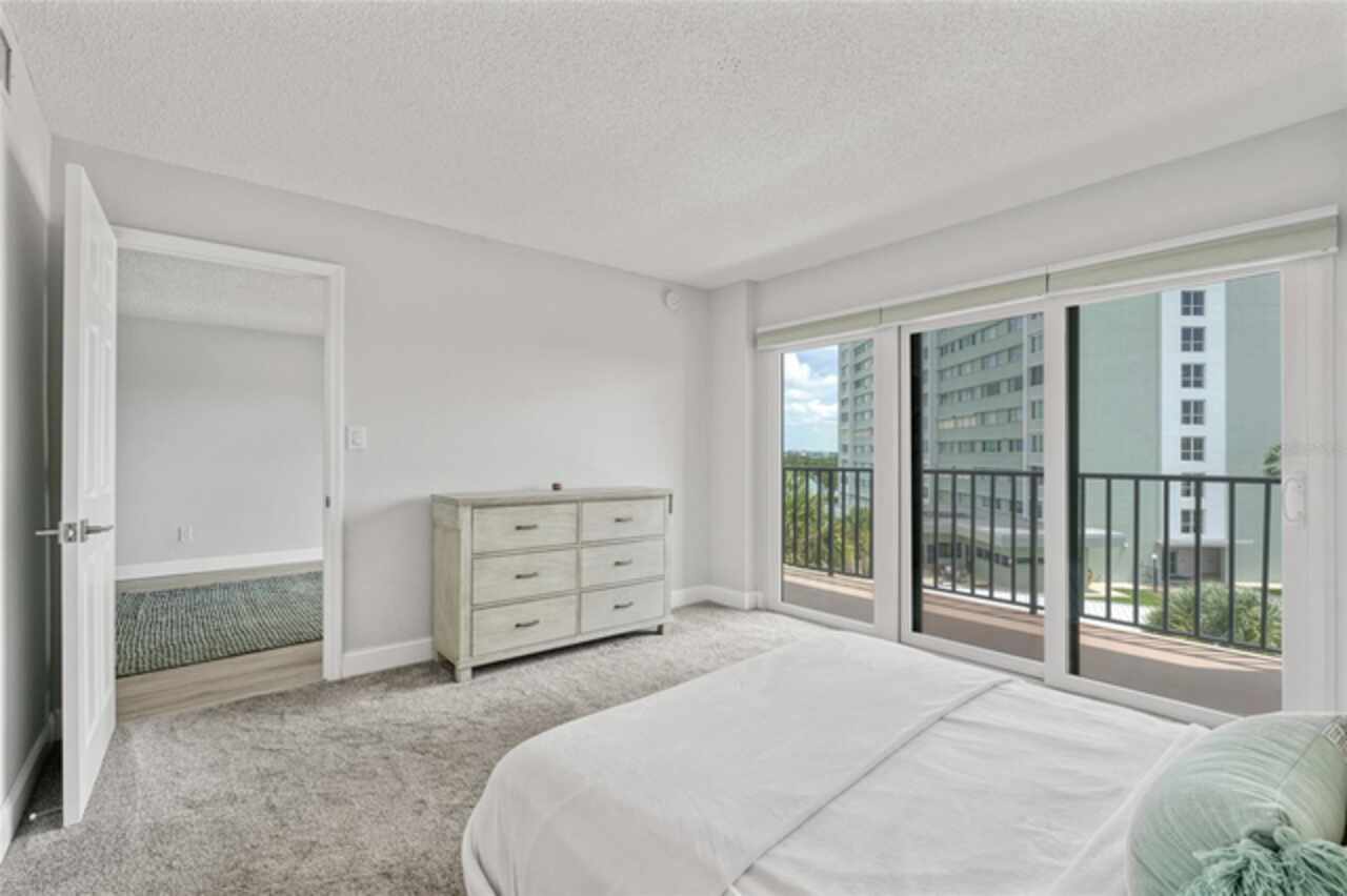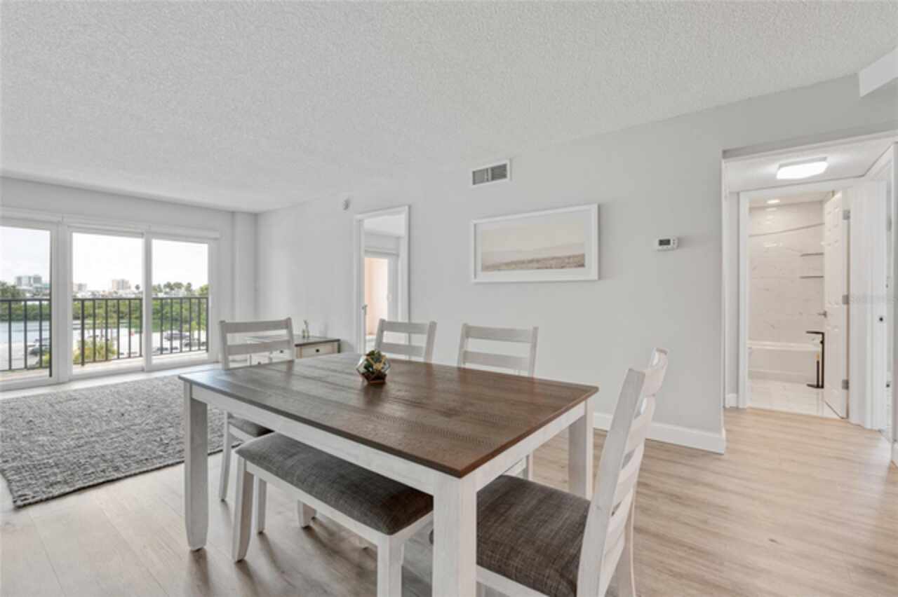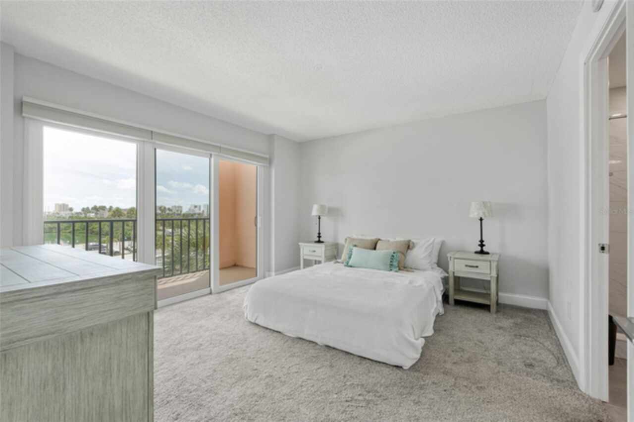 Live every day like a VACAY at 51 Island Way, Unit 411! This stunningly updated end-unit offers 2 bedrooms, 2 bathrooms, and TWO private balconies and a BEAUTIFUL water view main balcony all located in one of the most sought-after waterfront buildings on Island Estates. Situated on the coveted northeast corner, this residence delivers sweeping views of the Intracoastal, Gulf of Mexico, Clearwater Beach, and downtown skylines—right from your living room. Step inside and you’ll immediately notice the abundance of natural light pouring through the hurricane-rated sliding glass doors. The layout has been thoughtfully redesigned with a modern touch—walls removed to create an open-concept floor plan, perfect for entertaining and everyday comfort. The kitchen, bathrooms, flooring, paint, and trim have all been updated to reflect a clean and timeless aesthetic. The king-sized primary suite offers incredible water views, balcony access, a spacious walk-in closet, and a beautifully remodeled ensuite bathroom complete with a walk-in rain shower. The second bedroom also features balcony access and overlooks the water, Island Estates, and the iconic Clearwater Marine Aquarium. This residence comes with access to an extensive list of resort-style amenities including: • Oversized heated waterfront pool and spa • Tiki bar with large-screen TV—perfect for game day • Shuffleboard, tennis, and pickleball courts • Kayak launch, floating dock, and marina with boat slips ($60/month, first-come basis) • Renovated his-and-her saunas and locker rooms • Outdoor BBQ grills, waterfront seating areas, and a community library/rec room • Secured keyless lobby entry, open and optional covered parking • Storage locker on the same floor and commercial laundry rooms on every level Your HOA dues cover cable, high-speed internet, water, sewer, trash, building insurance, reserves, and on-site management—giving you truly low-maintenance living. All of this is just a short ways or Jolley Trolley ride to Clearwater Beach, Pier 60, top-rated restaurants, and nightlife. You're also steps from Island Estates’ own Publix, shops, dining, gas station, bank, and more. Whether you’re seeking a full-time residence or a beachside escape, this one-of-a-kind corner unit offers the perfect blend of luxury, location, and lifestyle. Don’t miss this opportunity—schedule your private showing today!
