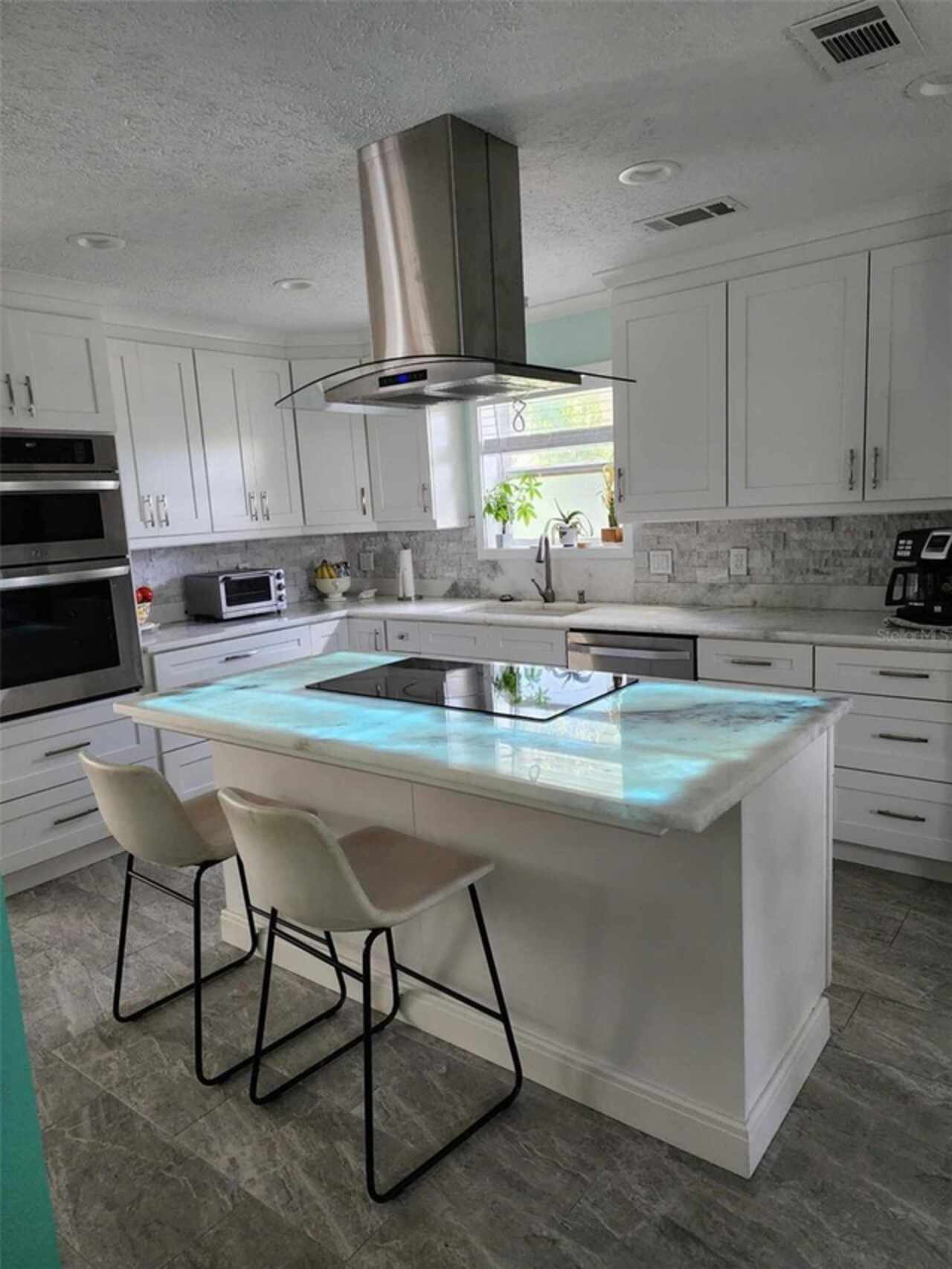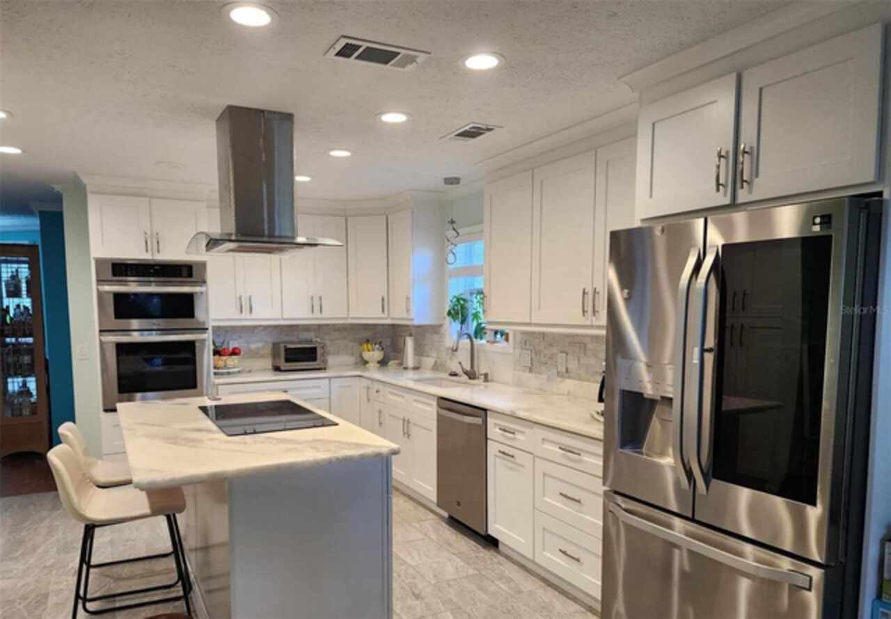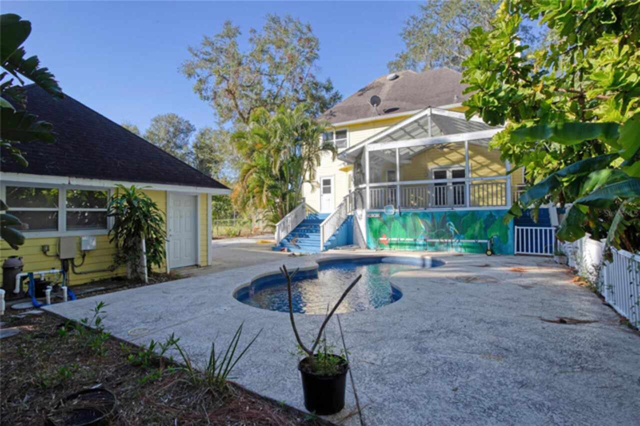 This home is built high off the ground!! One of a kind, 3-bedroom, 2-bath home located on Wideview Ave in beautiful Tarpon Springs. This home exudes happiness and tranquility! This property features an open floor plan with a spacious living area, modern kitchen, and a cozy dining space. Enjoy your own tropical backyard pool oasis and convenient access to local amenities and attractions Close to Sunset Beach and Fred Howard Park Beach. Golf carts allowed. A must-see Paradise in a great neighborhood! Former separate garage is 1/2 way converted into inlaw/teen suite, Air B&B or could be pool house for additional 400 sq foot living space!! New AC/Heat June 2024