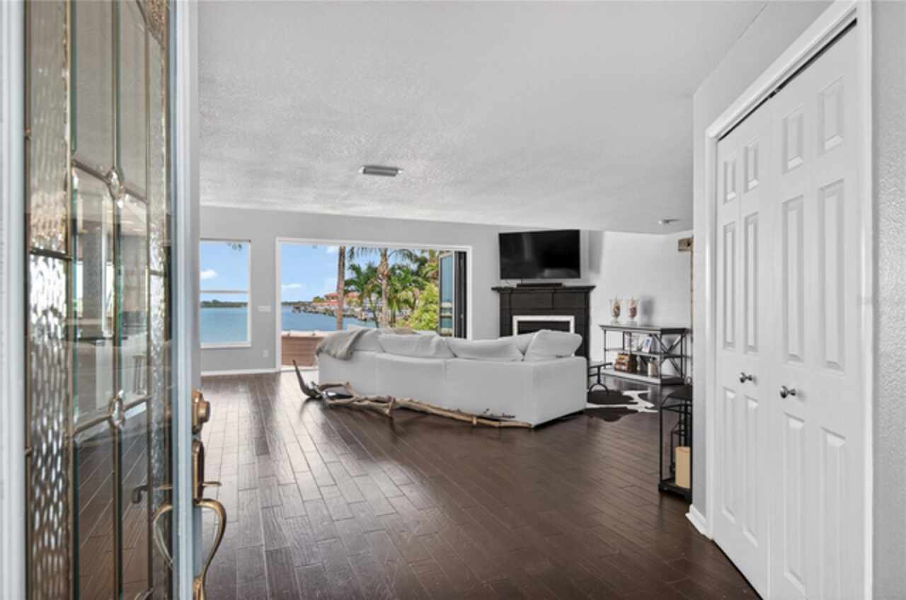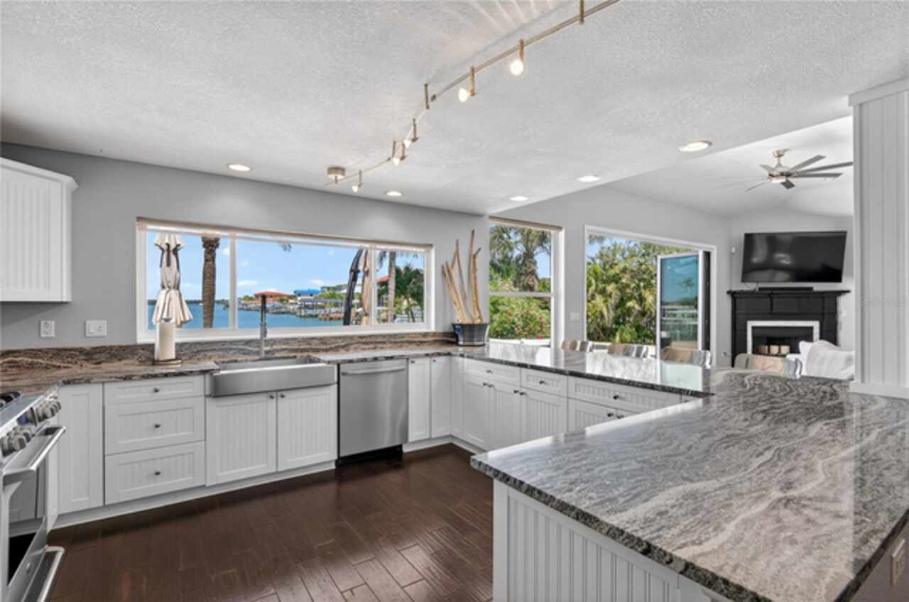GORGEOUS OPEN WATER VIEW! ONE OF THE VERY BEST ON ISLAND ESTATES! ELEVATED 9.15 FEET BASE FLOOD- NEVER FLOODED! ASSUMABLE FLOOD INSURANCE AT ONLY $3750/year. TOTALLY UPDATED 4-BEDROOM 3 BATH OASIS! MOVE IN READY! VERY DEEP WATER CANAL SO BIG BOATS ARE WELCOME! INCREDIBLE OUTDOOR LIVING SPACE TO ENJOY THE ANNUAL BOAT PARADE RIGHT BEHIND YOUR HOUSE. READY FOR AN IDEAL 2ND STORY ADDITION. The interior is designed to embrace the view with expansive luxury bi-fold slider doors that fully open, seamlessly connecting the living space to the outdoors.The beautiful dark hardwood flooring could be easily lightend. Enjoy GORGOEUS morning SUNRISES PERFECTLY LOCATED IN THE CENTER OF YOUR VIEWS. Enjoy coffee or evening sunsets by your sparkling pool, all while overlooking a generous yard and wide waterway—ideal for entertaining or simply soaking in the coastal lifestyle. Additional upgrades include: TWO AC Units 2020/2021, Water Heater 2022 (gas), Garage Door 2022, Highend Appliances including GE oven /stove 2024, Samsung Dishwasher 2022. Washer and Dryer Convey. Patio Furniture and umbrellas convey. Built high and dry, this home has never taken on water, offering peace of mind and long-term value. All of this lifestyle and just minutes from Clearwater Beach, top restaurants, shopping, and the Clearwater Marine Aquarium, this home is your front-row seat to the very best of Florida’s Gulf Coast.
