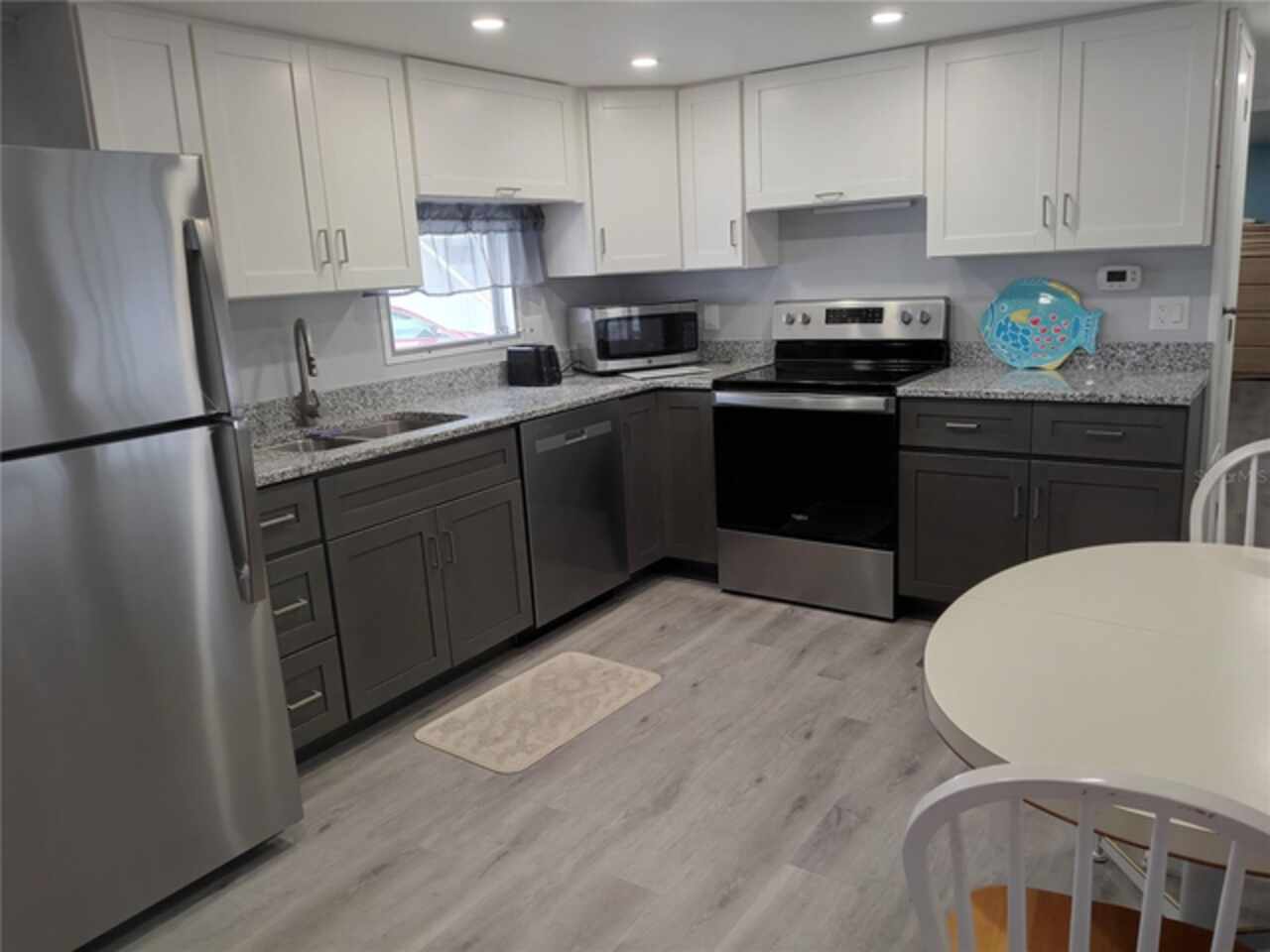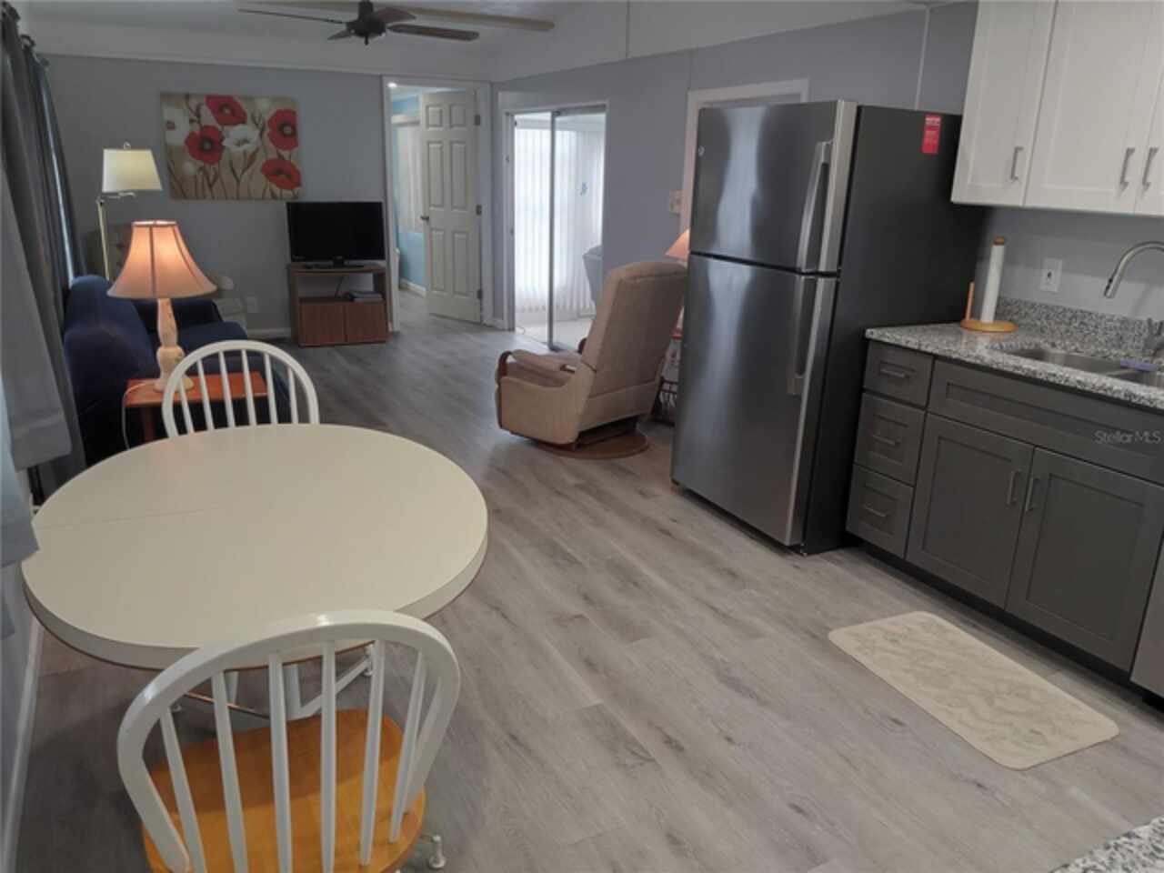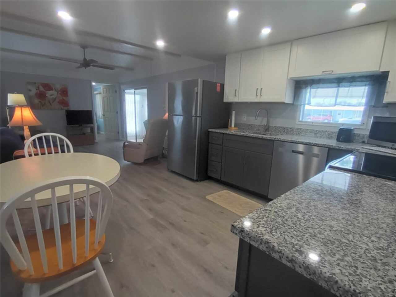 Furnished and remodeled 2 + 2 home with convenient Florida split floor plan layout. The kitchen features an eat-in station, new stainless steel appliances and beautiful granite counter tops. The floors throughout the main home have been updated with modern luxury vinyl. The large Florida room provides an extra 175 sq ft. of air conditioned living space. The shed provides extra storage room and also houses the laundry facility. A new TPO/membrane roof was installed may 2023. Enjoy those warm winter days in the large screened-in lanai providing an outdoor living space. Tri-par Estates in an active, vibrant 55+ community where each property is individually owned with a deed and titles to the home, NO LOT RENT! We have many amenities here such as a large pool, spa, palapa tiki hut, pickleball courts, fitness center, shuffleboard, miniature golf, horseshoes, game rooms for ping-pong, billiards and more. The clubhouse is host to events such as dinners, dances, meetings. Great location to downtown Sarasota, marinas, shopping, dining, Sarasota airport, museums and of course our world-famous beaches! You own your own land in this special parks and recreation district, and pay not HOA fee directly to the association. The annual amount of $1, 584 is included in your property taxes. Golf cart-friendly community with optional storage for your R/V or boat.