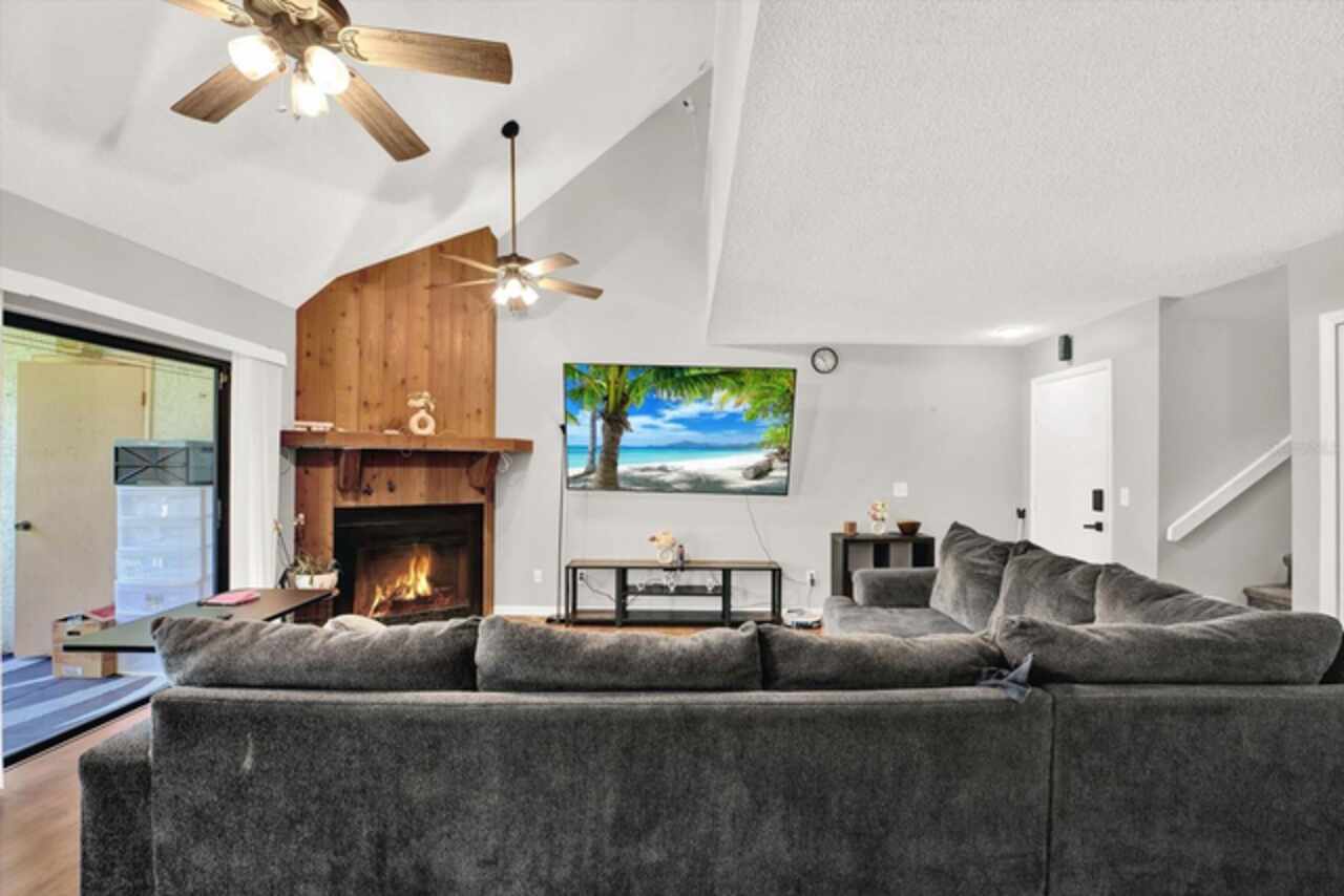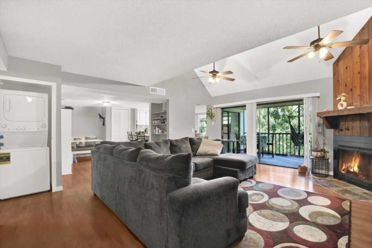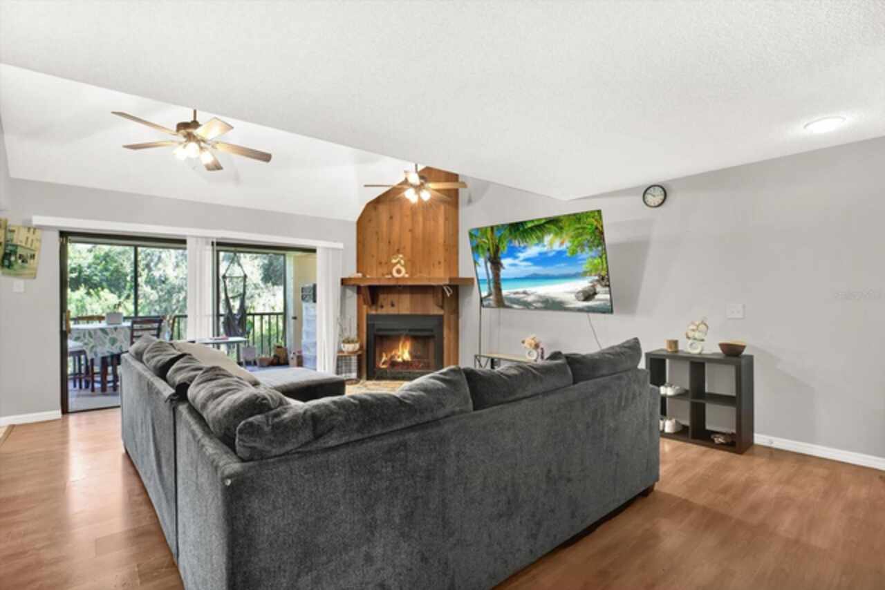 This beautifully updated two-story condo offers 1, 757 sq. ft. of open and comfortable living space, featuring sleek laminate flooring throughout. The living room is bright and airy with soaring ceilings, dual ceiling fans, and a cozy fireplace perfect for relaxing or entertaining guests. The spacious eat-in kitchen has plenty of cabinet space plus a newly added pantry for extra storage. Step out onto the oversized screened-in balcony where you’ll enjoy peaceful conservation views and a peek at the water plus there’s even an exterior storage closet for added convenience. Upstairs, a large loft overlooks the living area and leads to the private primary suite with an ensuite bath. There’s also a generously sized second bedroom and a fully upgraded bathroom. Located in the sought-after gated, riverfront community of River Oaks Condominiums, residents enjoy two pools, covered parking, and even a kayak rack for those river adventures! You're just minutes from I-275 and I-75, making commutes easy and quick. Plus, you’ll be close to all the fun Busch Gardens, Hard Rock Casino, the Florida State Fairgrounds, and just a short drive from Downtown Tampa and Tampa International Airport.