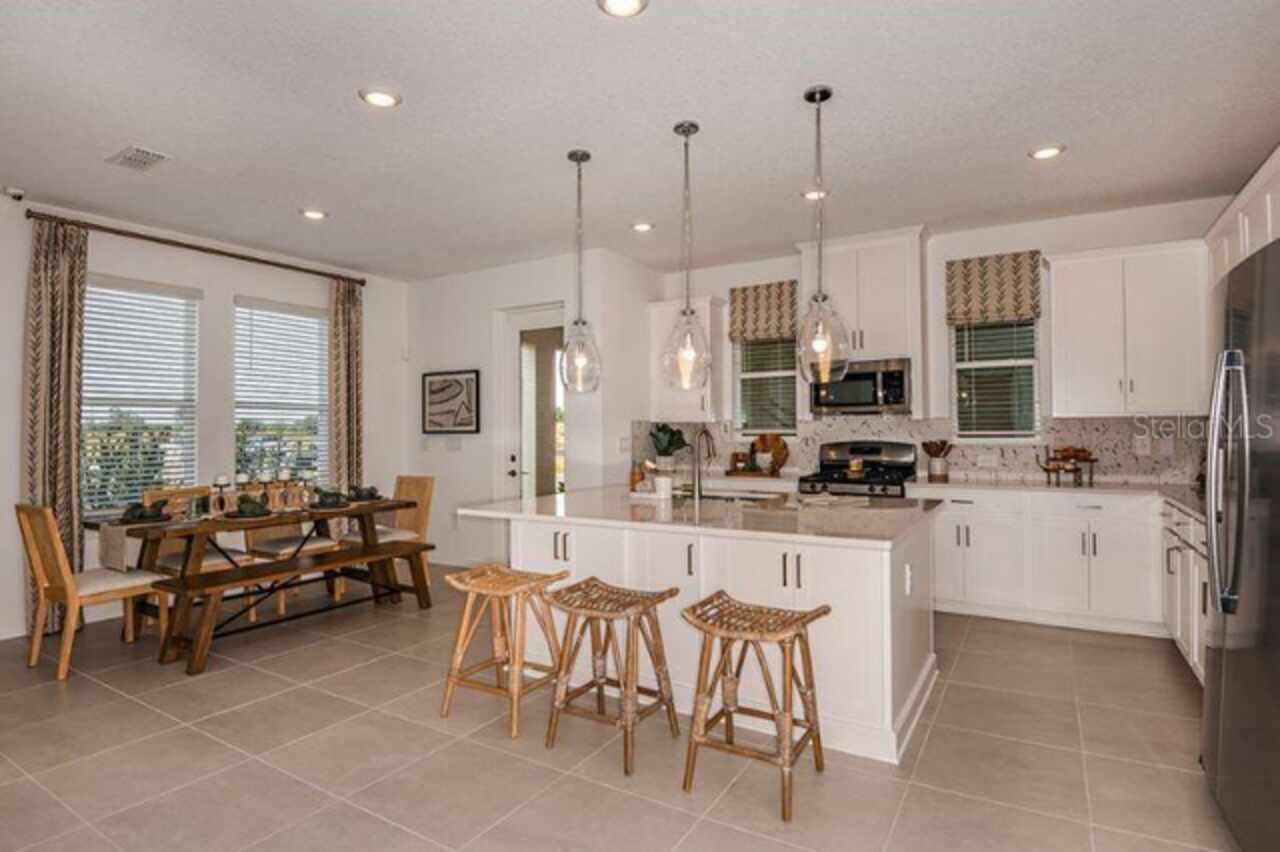 New Construction – Ready Now! Built by Taylor Morrison, America’s Most Trusted Homebuilder. Welcome to the Baldwin at 5154 Goldfinch Drive in The Waters at Center Lake Ranch. This inviting new home offers a thoughtful layout with space to relax and entertain. A formal dining room leads into a spacious great room and designer kitchen, complete with a casual dining area and sunny lanai for enjoying the Florida outdoors. A secondary bedroom suite sits near the foyer, while upstairs features a luxurious primary suite with dual sinks and a large shower, plus two additional bedrooms, a full bath, laundry room, and a private balcony. The Waters at Center Lake Ranch is nestled in a master-planned community just south of Lake Nona. Residents enjoy natural gas homes, scenic conservation wetlands, multi-use trails, and walkable neighborhoods. With easy access to Medical City, major highways, and recreational destinations, this community offers an enriched lifestyle in a rapidly growing area. Additional Highlights Include: Downstairs bedroom and full bathroom in place of flex, shower in place of tub at downstairs bathroom, double doors at casual dining room to lanai, double balcony, 8' interior doors, extended covered lanai, and all appliances included. Photos are for representative purposes only. MLS#O6333580